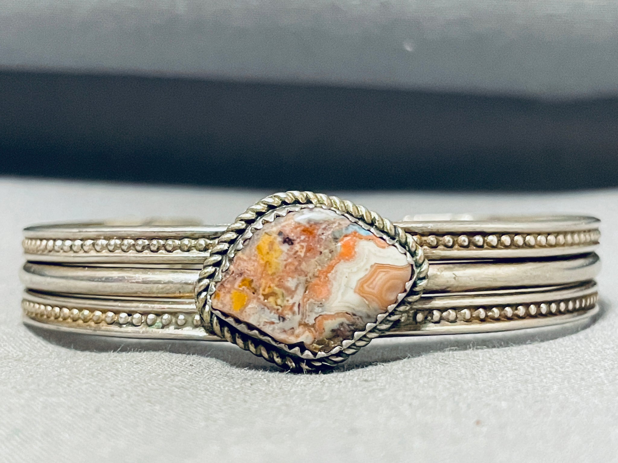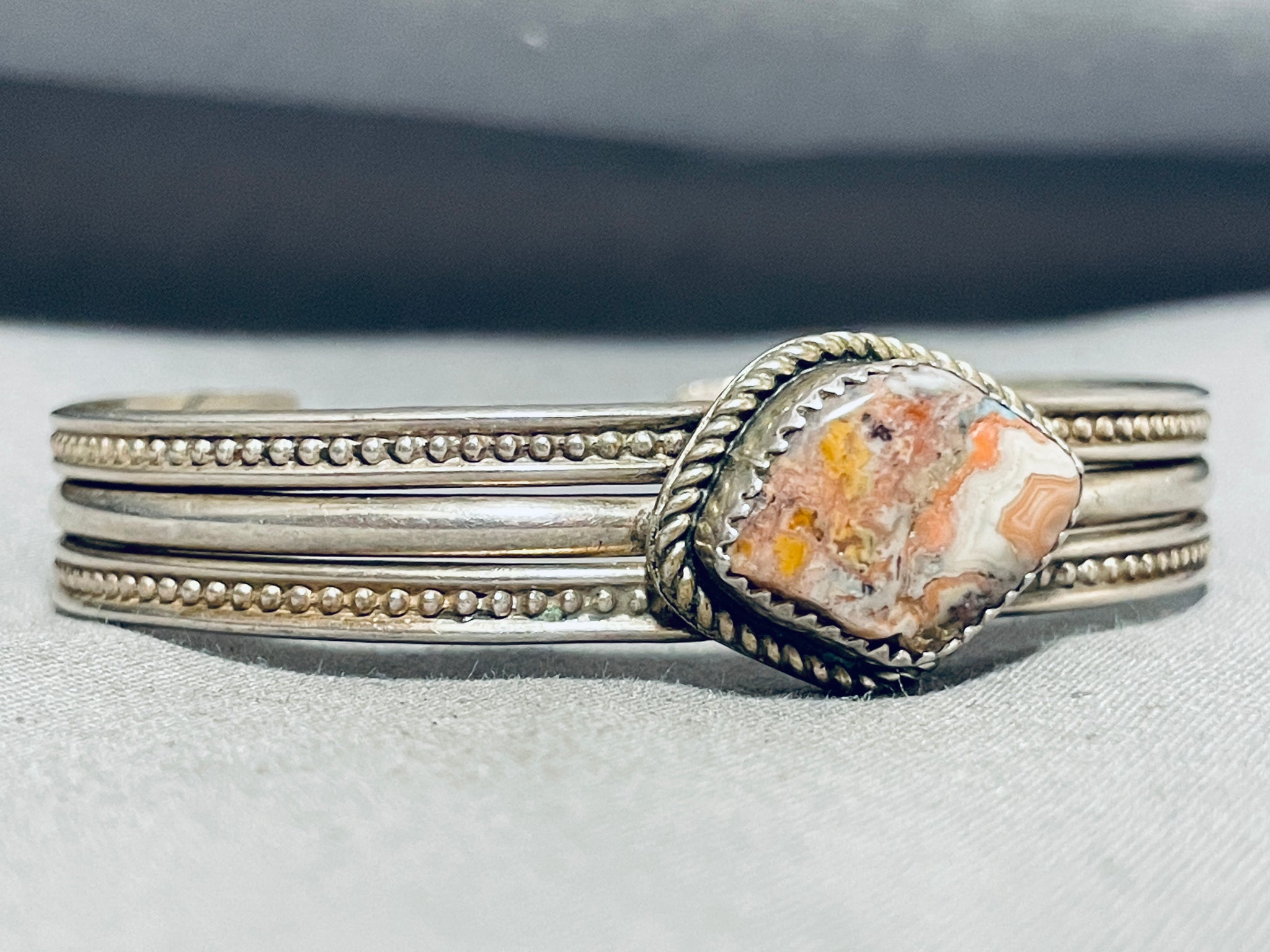 Stunning Vintage Native American Navajo Jasper Sterling Silver Bracelet