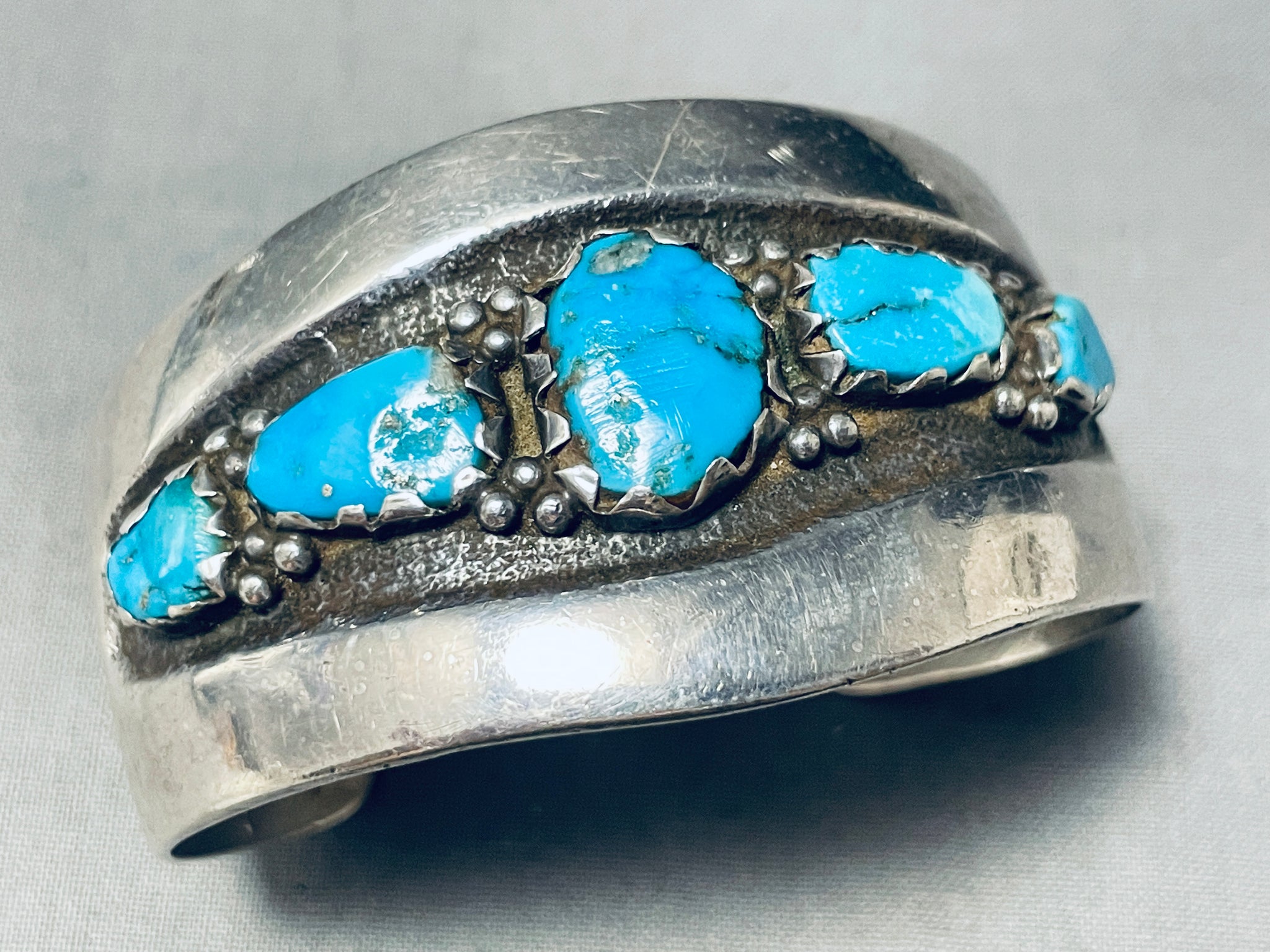 Sturdy Heavy Vintage Native American Navajo Turquoise Sterling Silver Bracelet Cuff