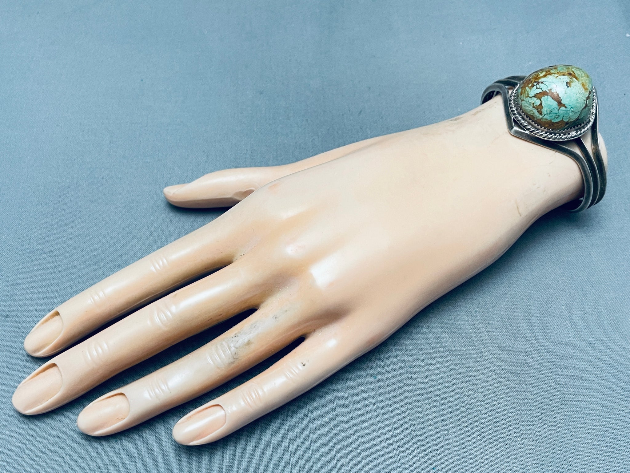 Super Protruding Dome Vintage Native American Navajo Green Turquoise Sterling Silver Bracelet