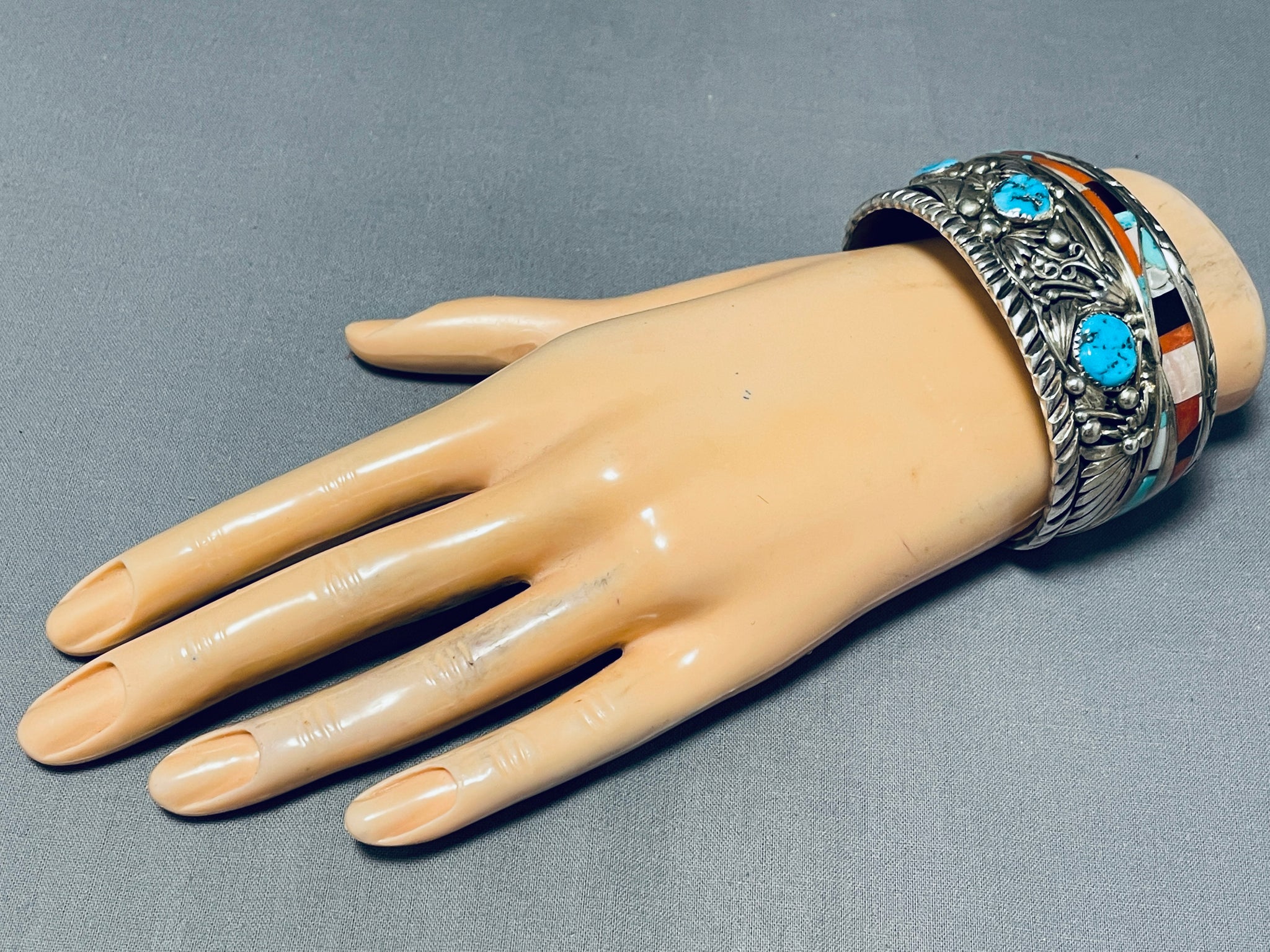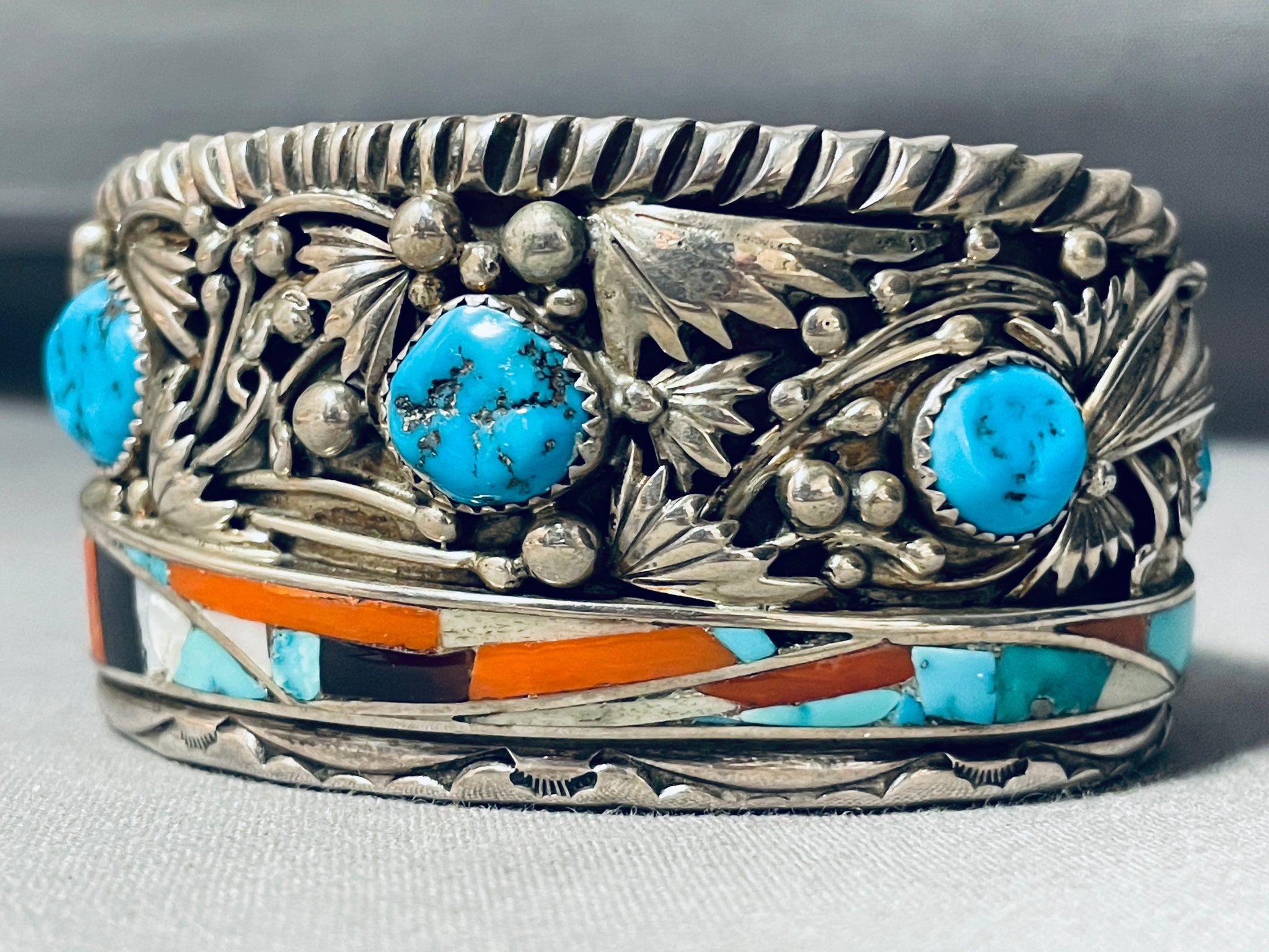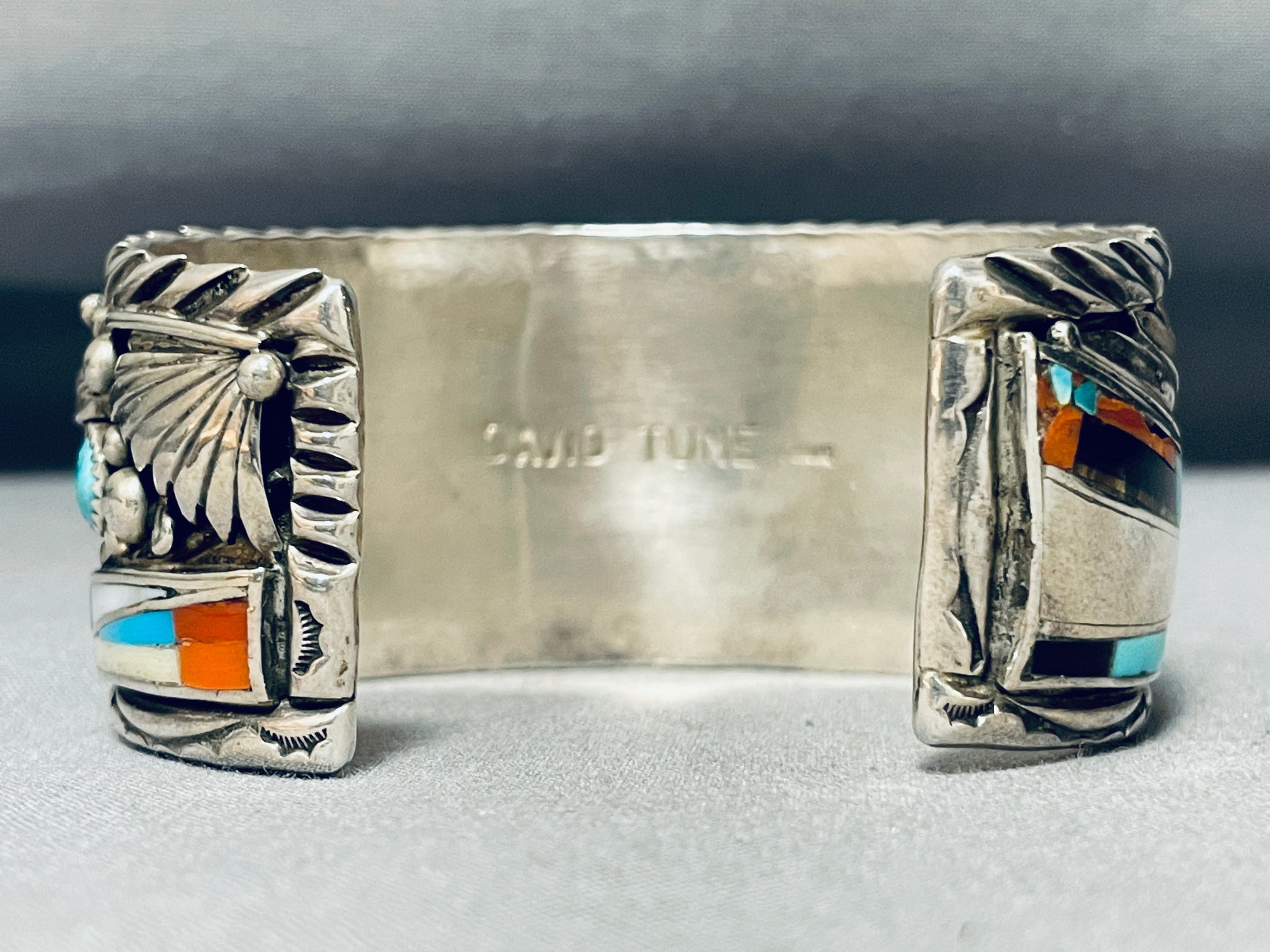 The Best Vintage Native American Navajo David Tune Turquoise Inlay Sterling Silver Bracelet