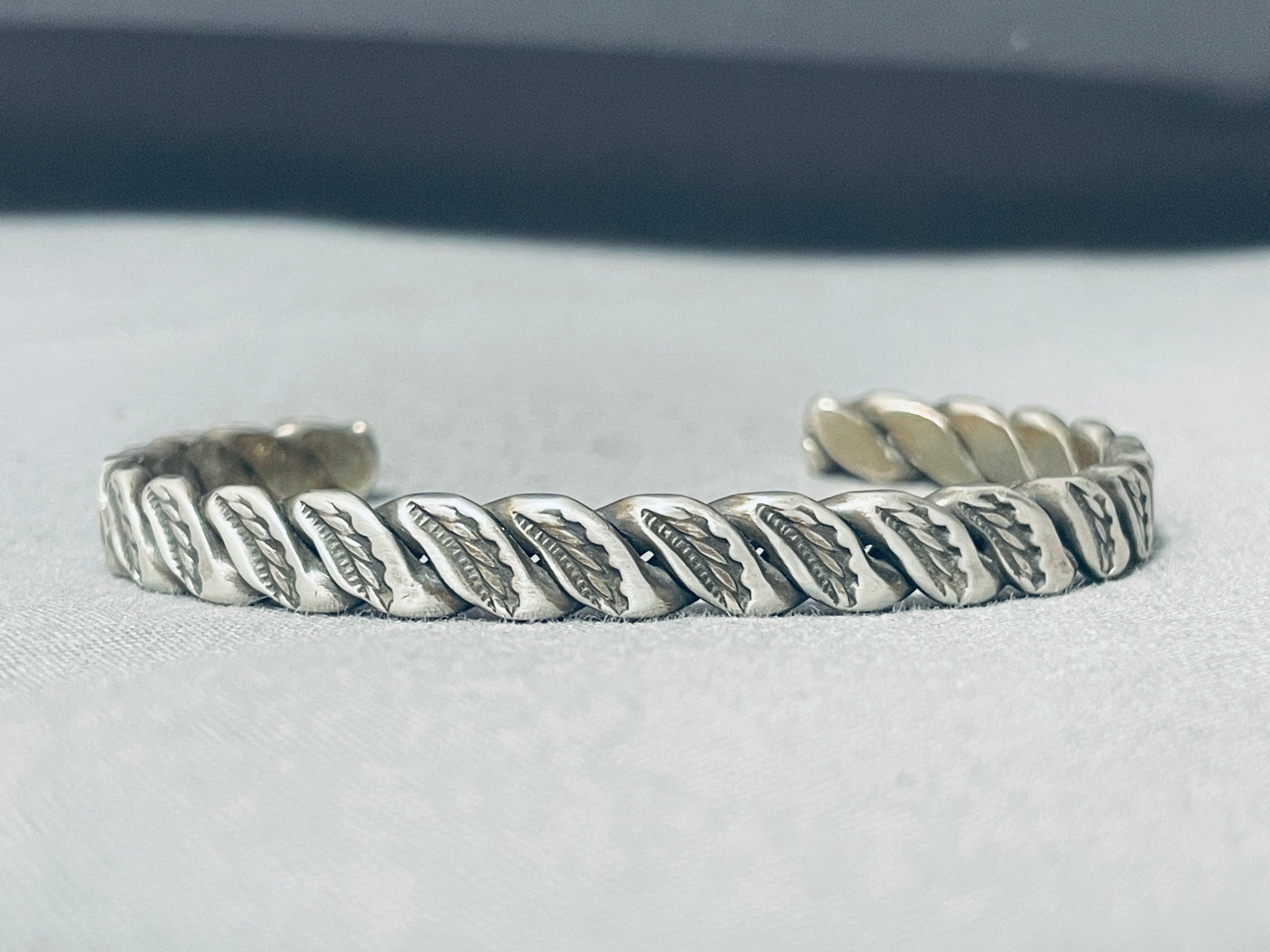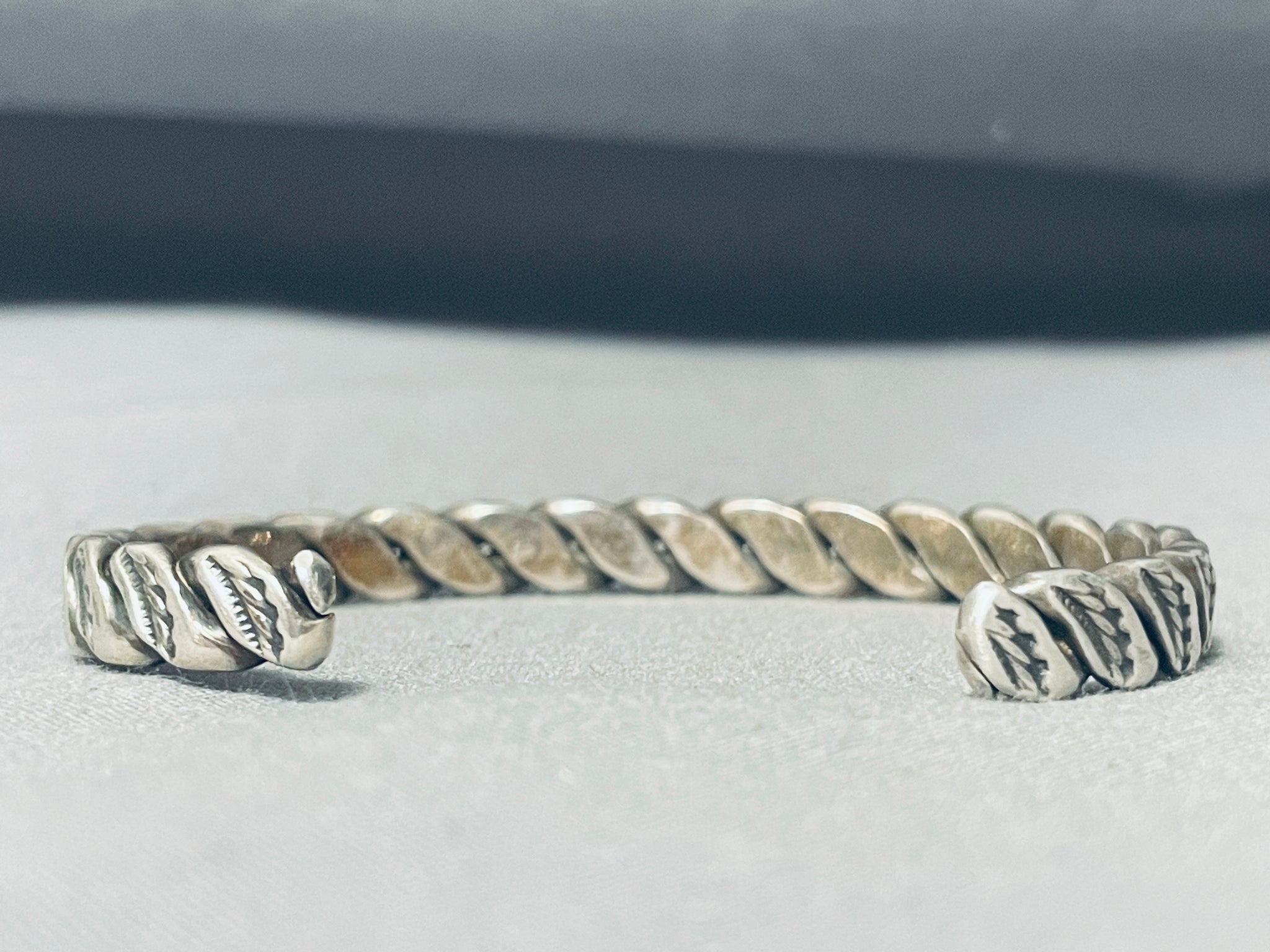 Thicker Vintage Native American Navajo Authentic Sterling Silver Rope Bracelet