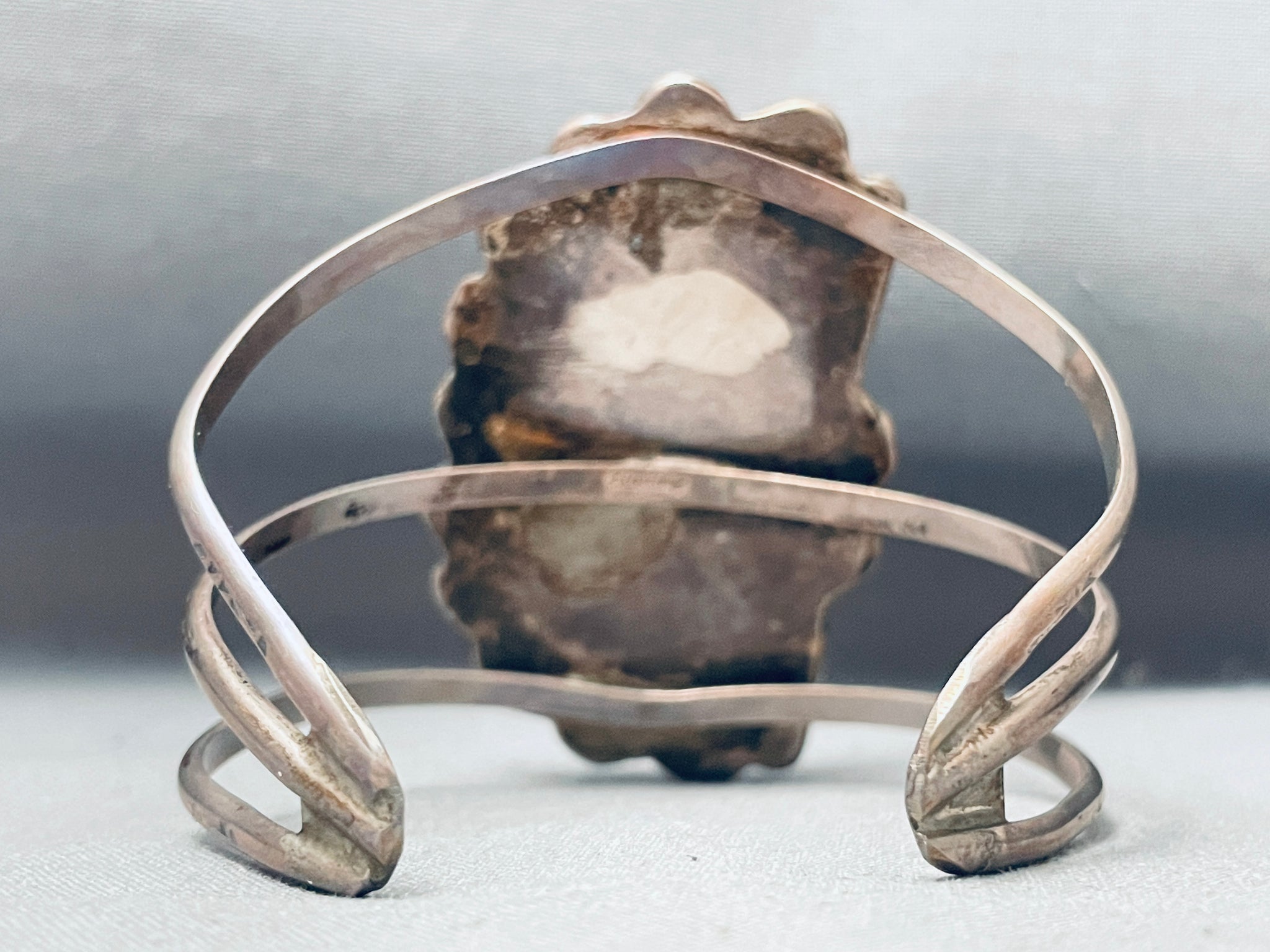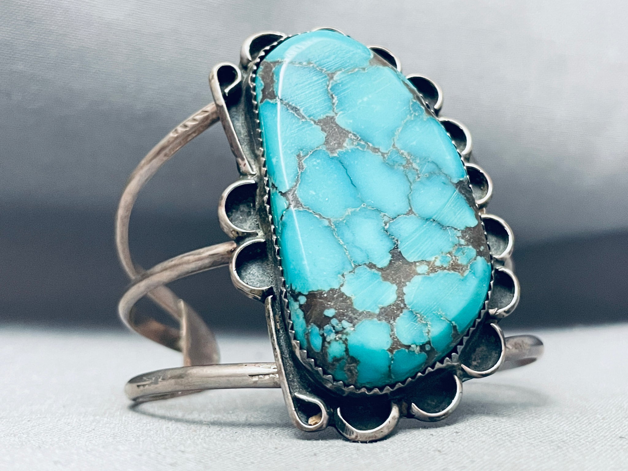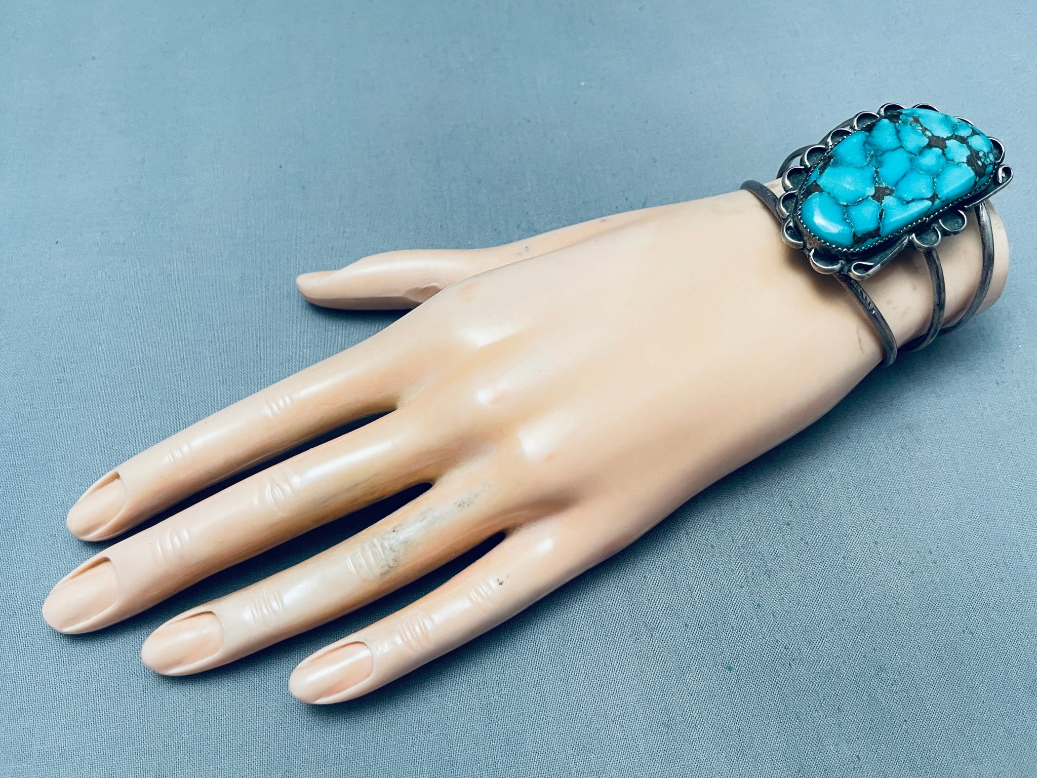 Towering Vintage Native American Navajo Spiderweb Turquoise Sterling Silver Bracelet