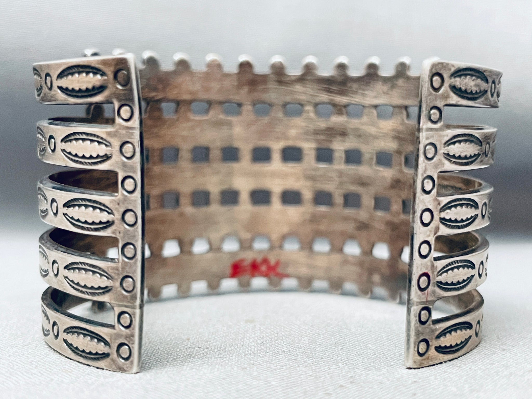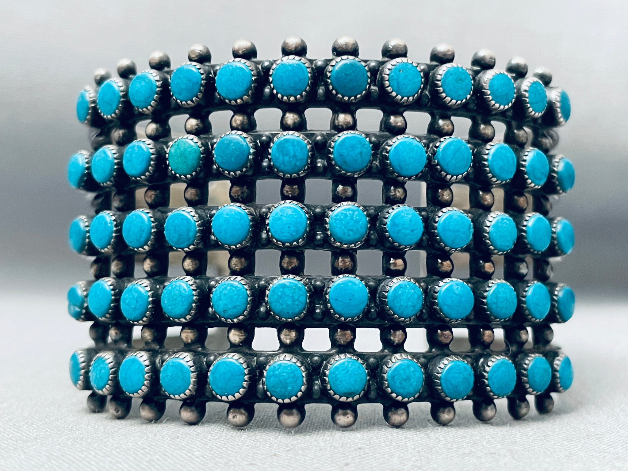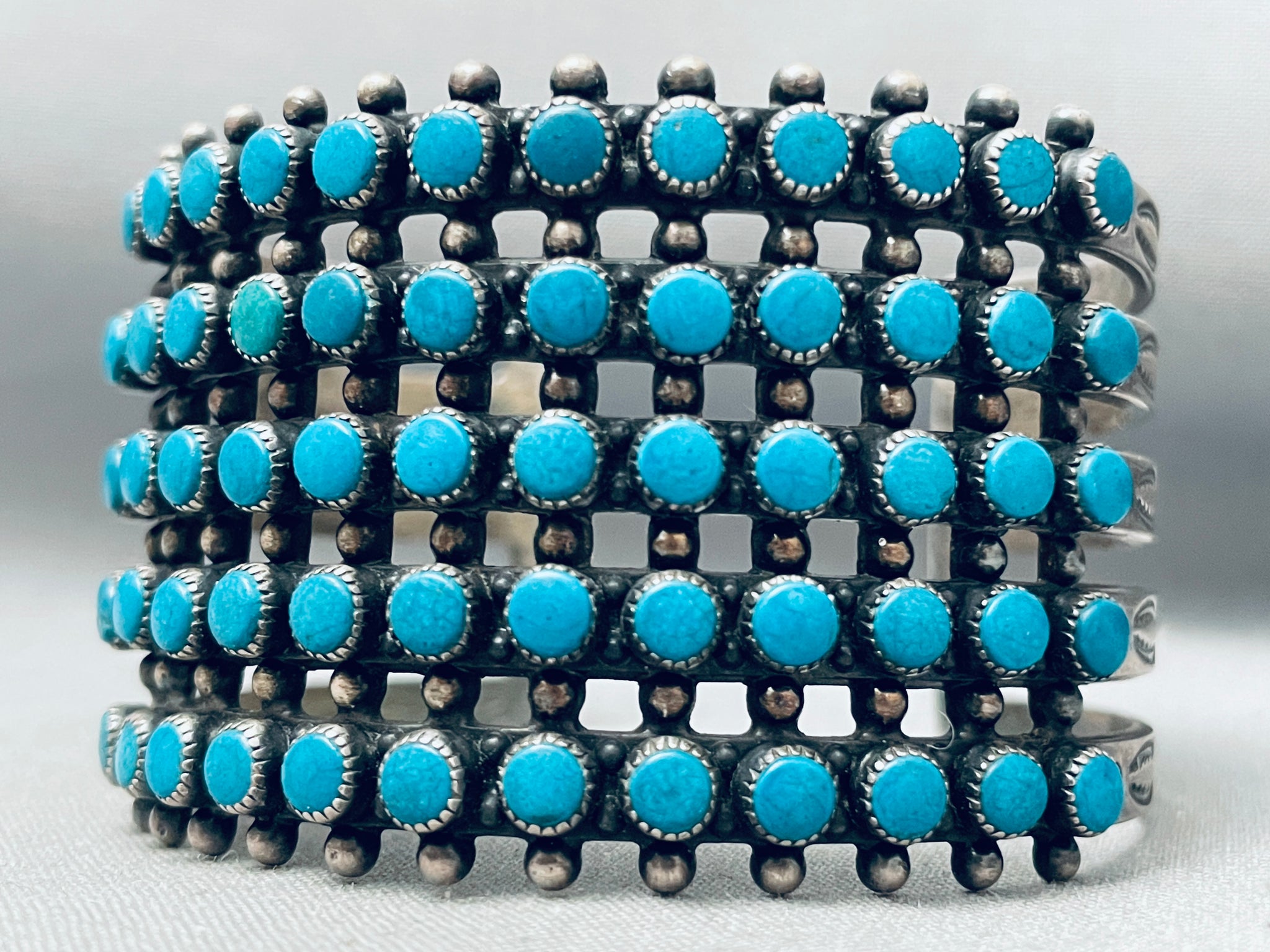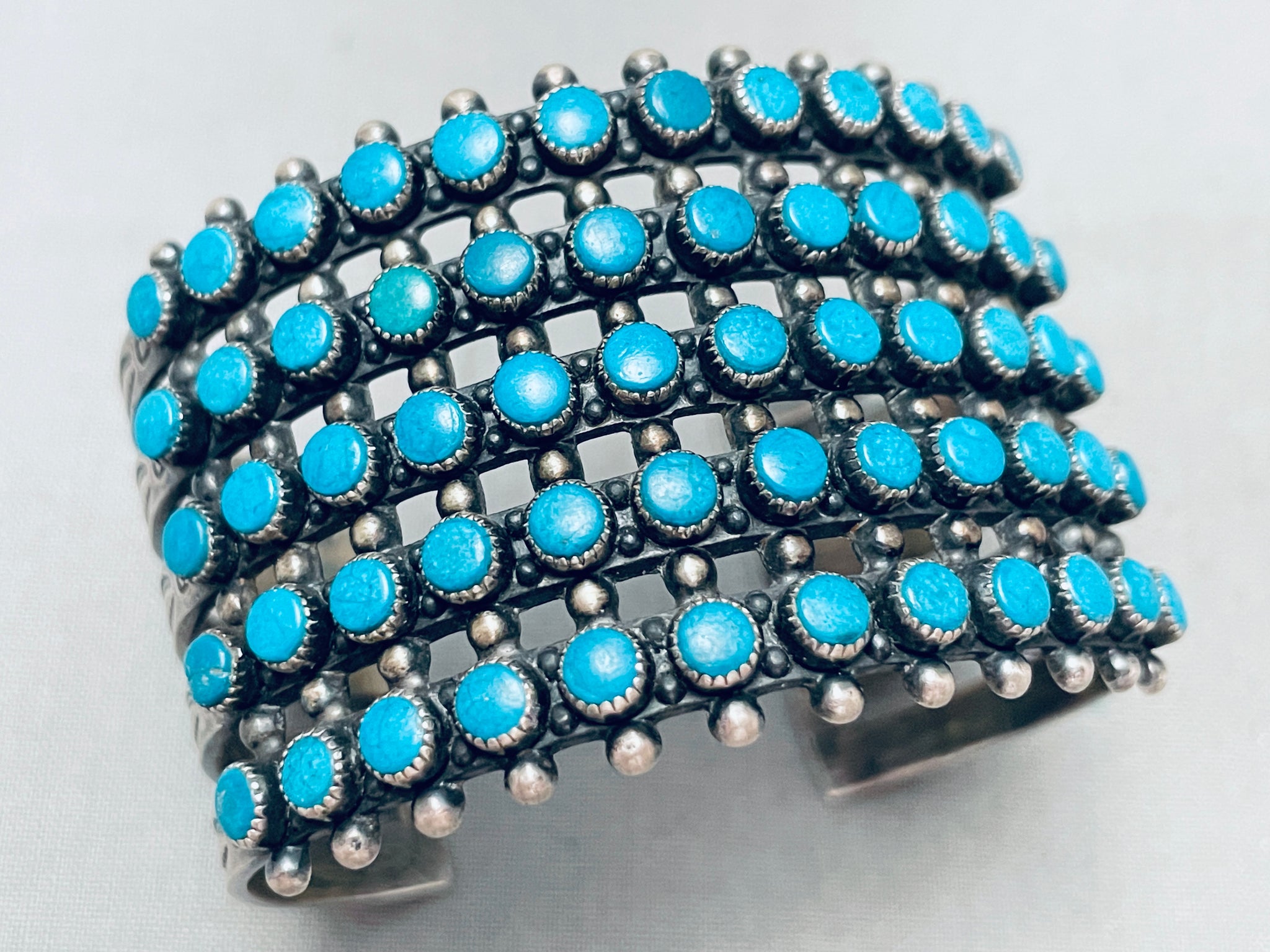 Towering Vintage Native American Navajo Teardrop Turquoise Sterling Silver Bracelet