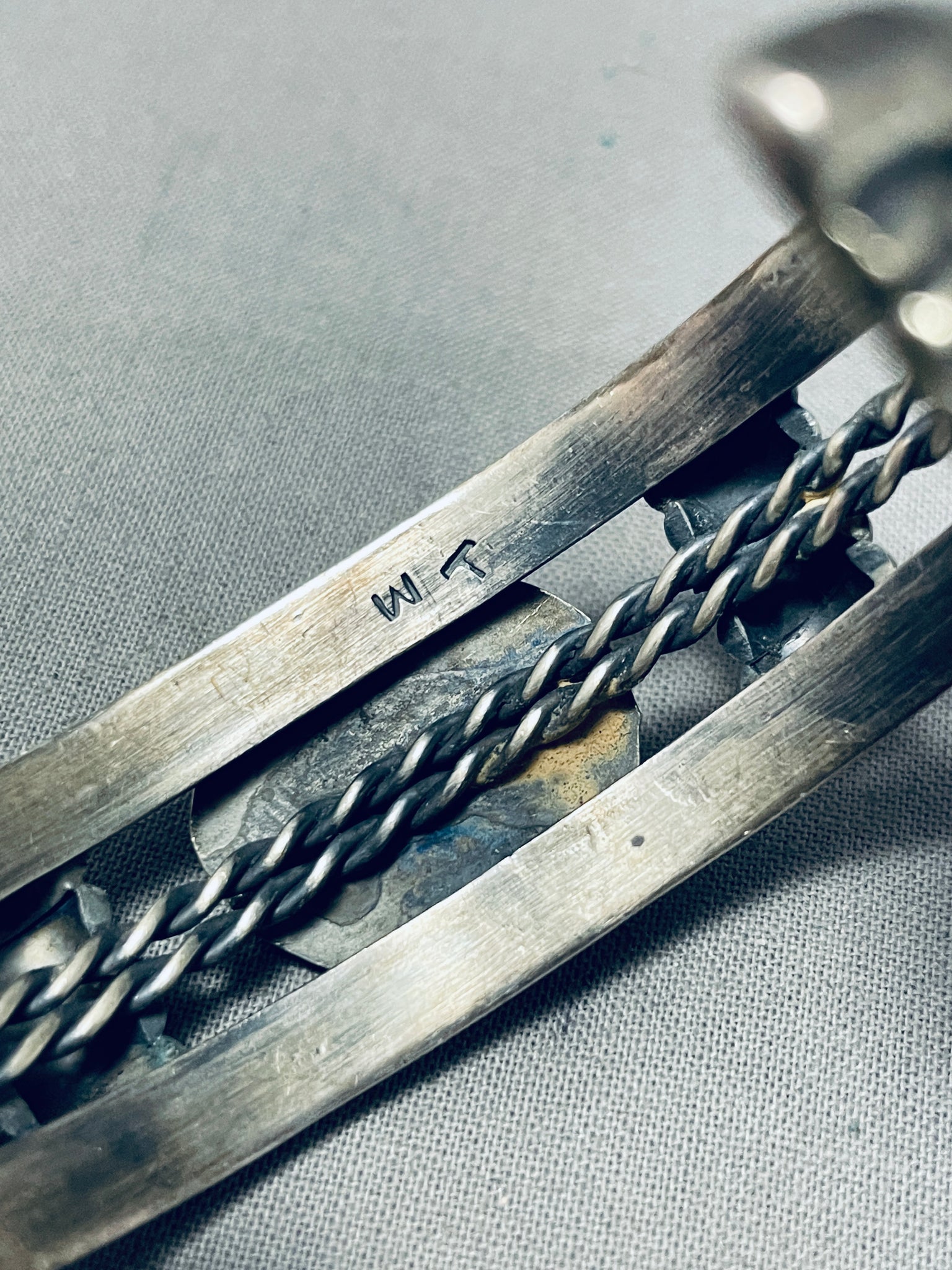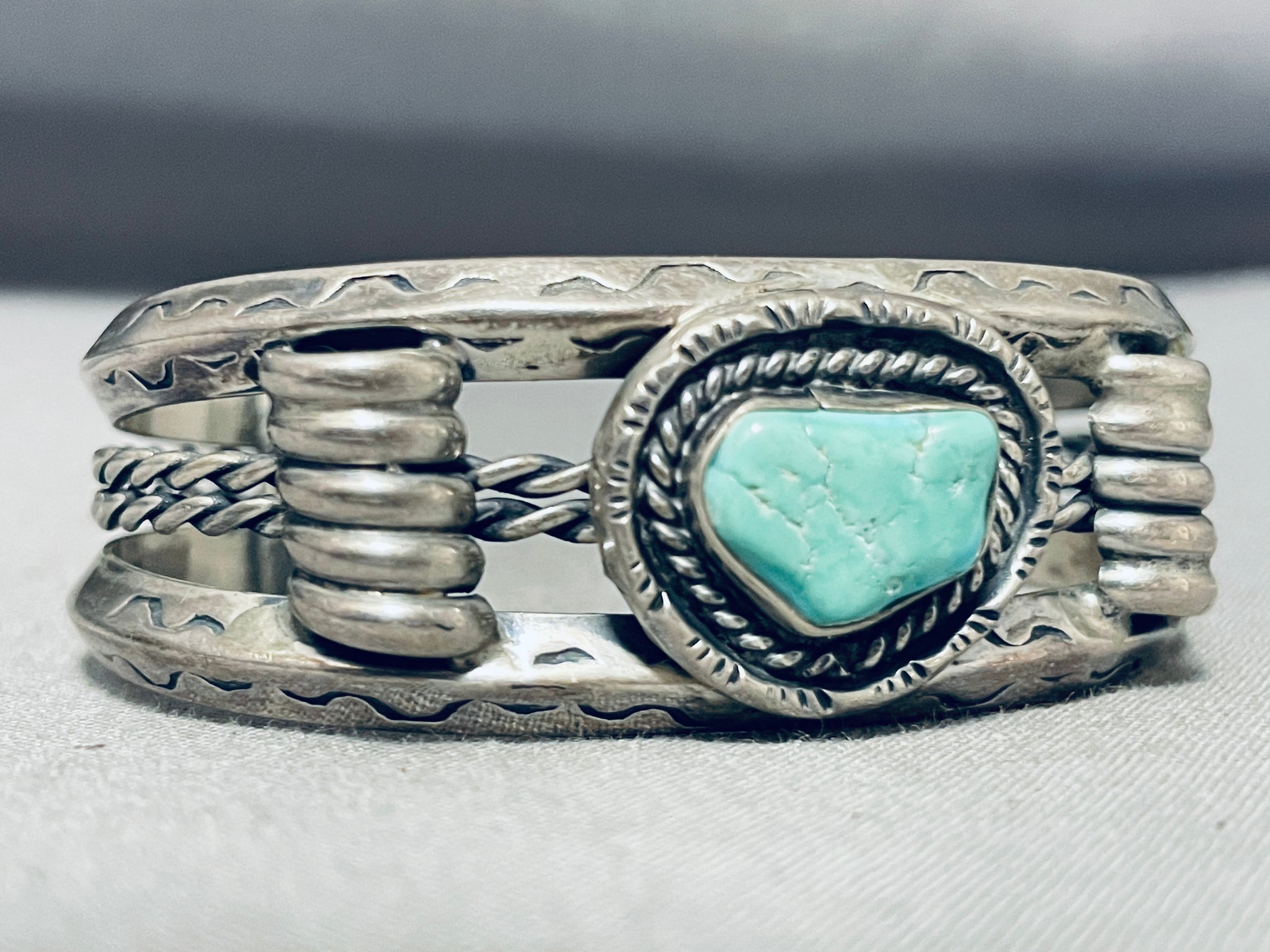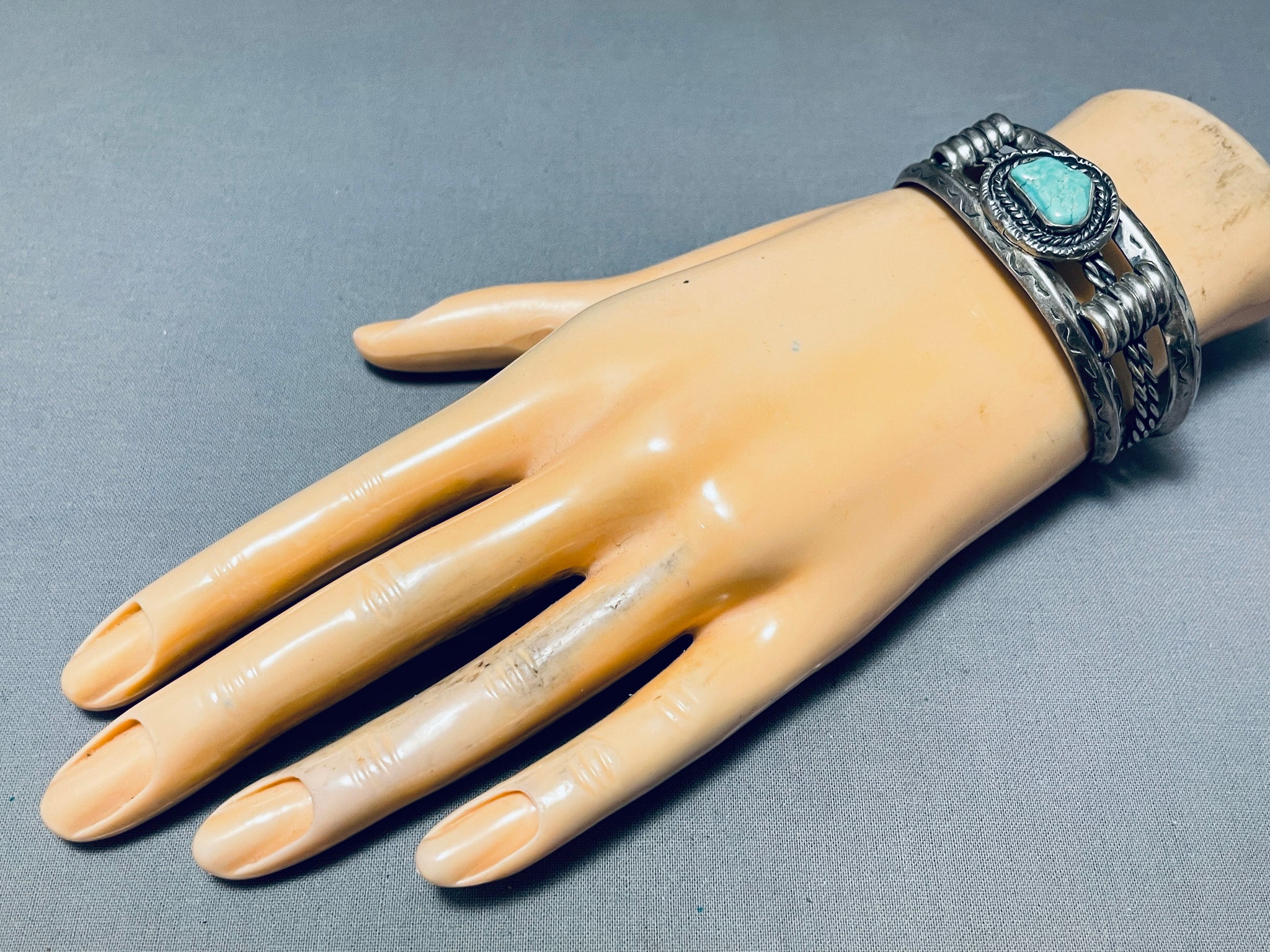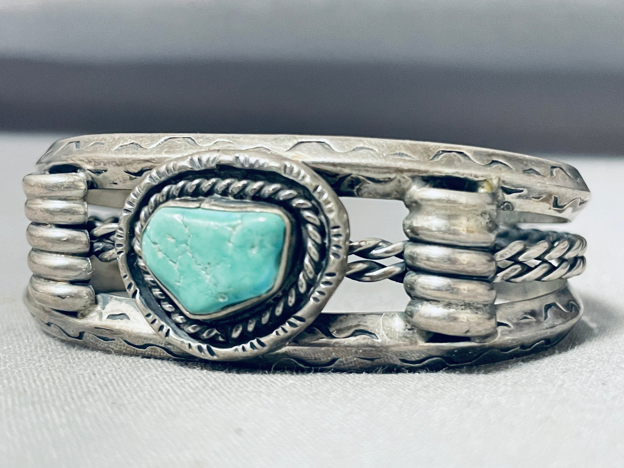 Tremendous Vintage Native American Navajo Green Turquoise Sterling Silver Bracelet