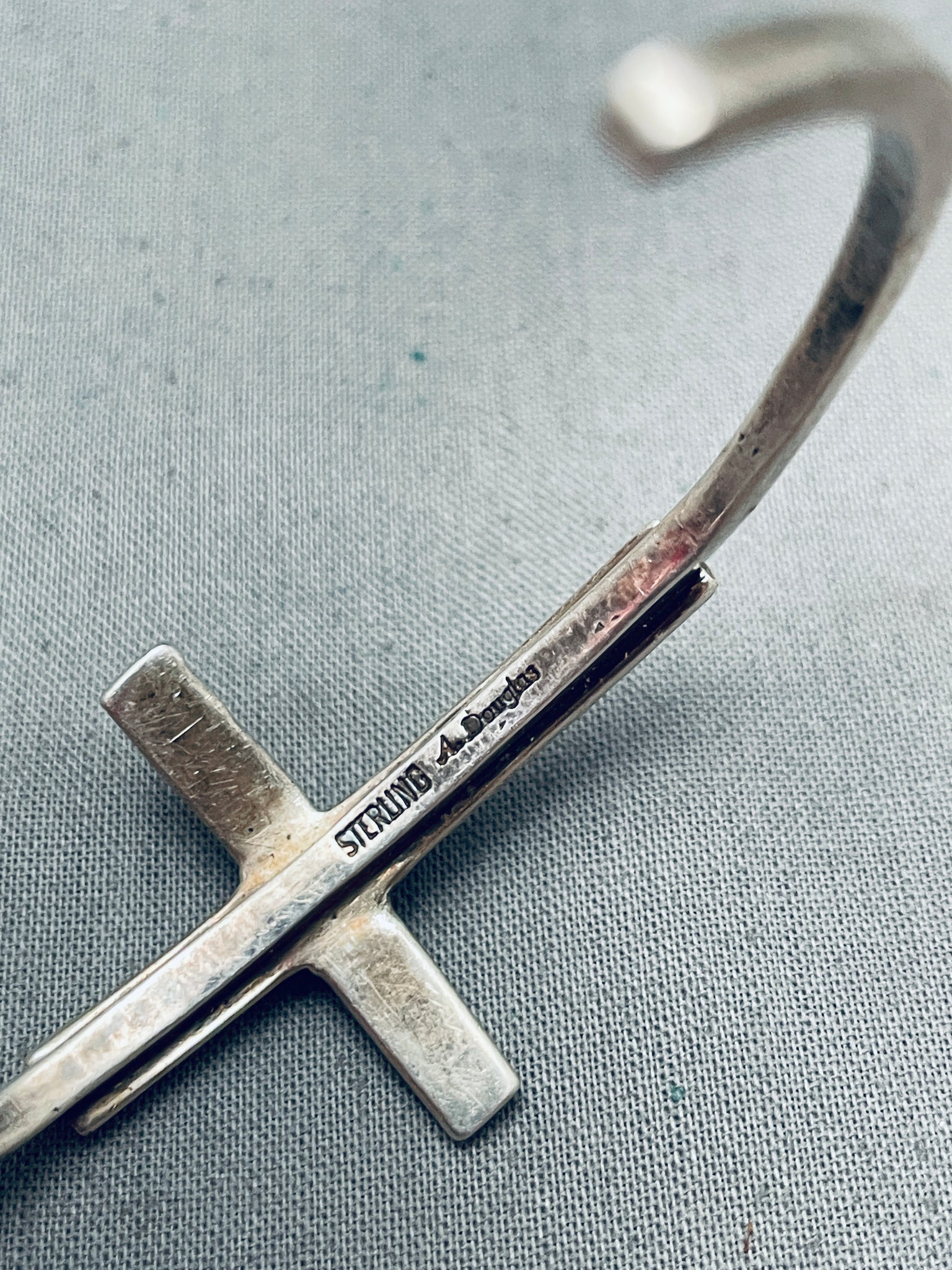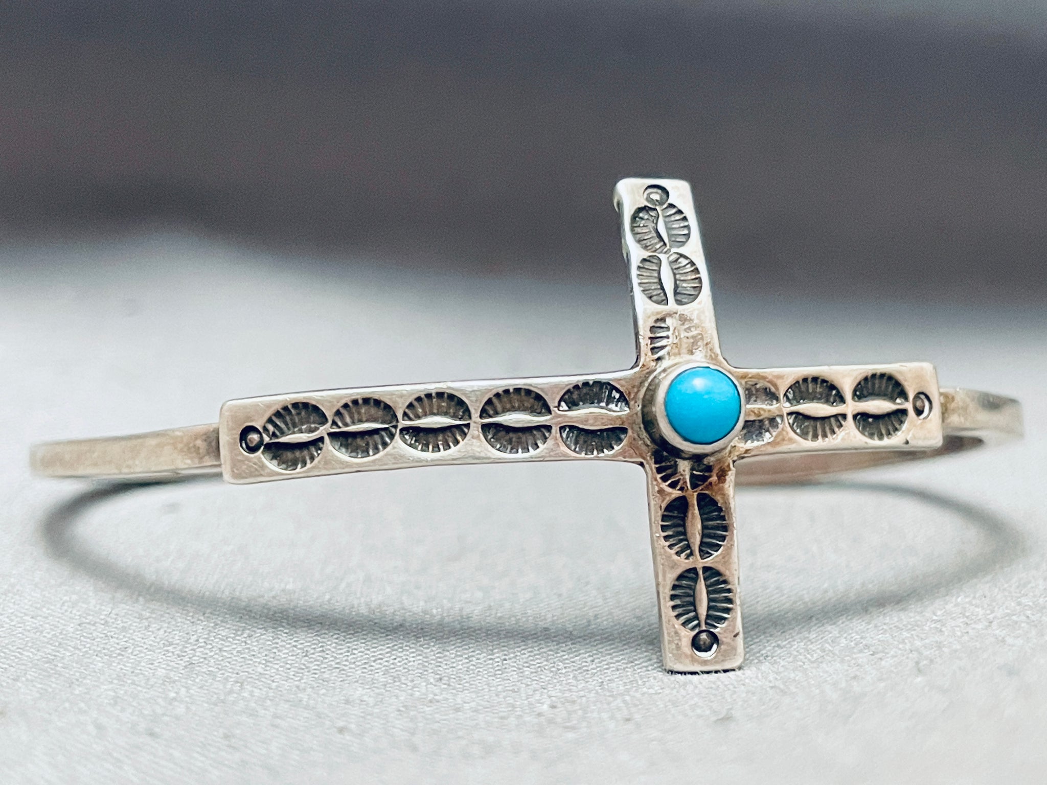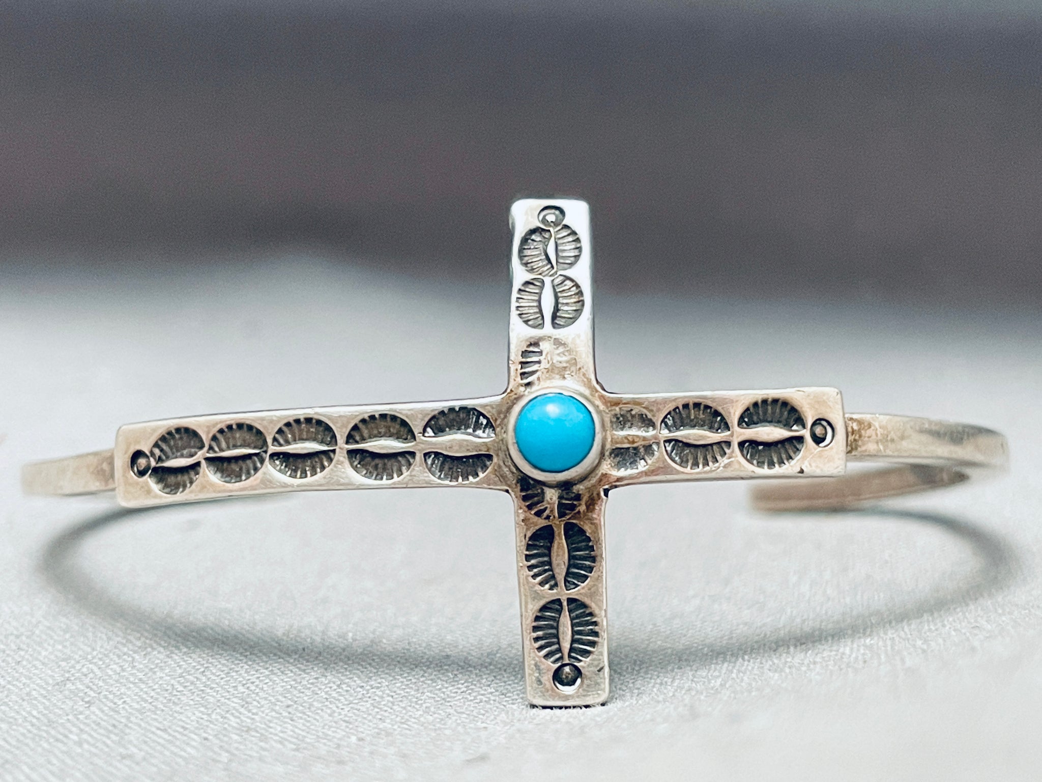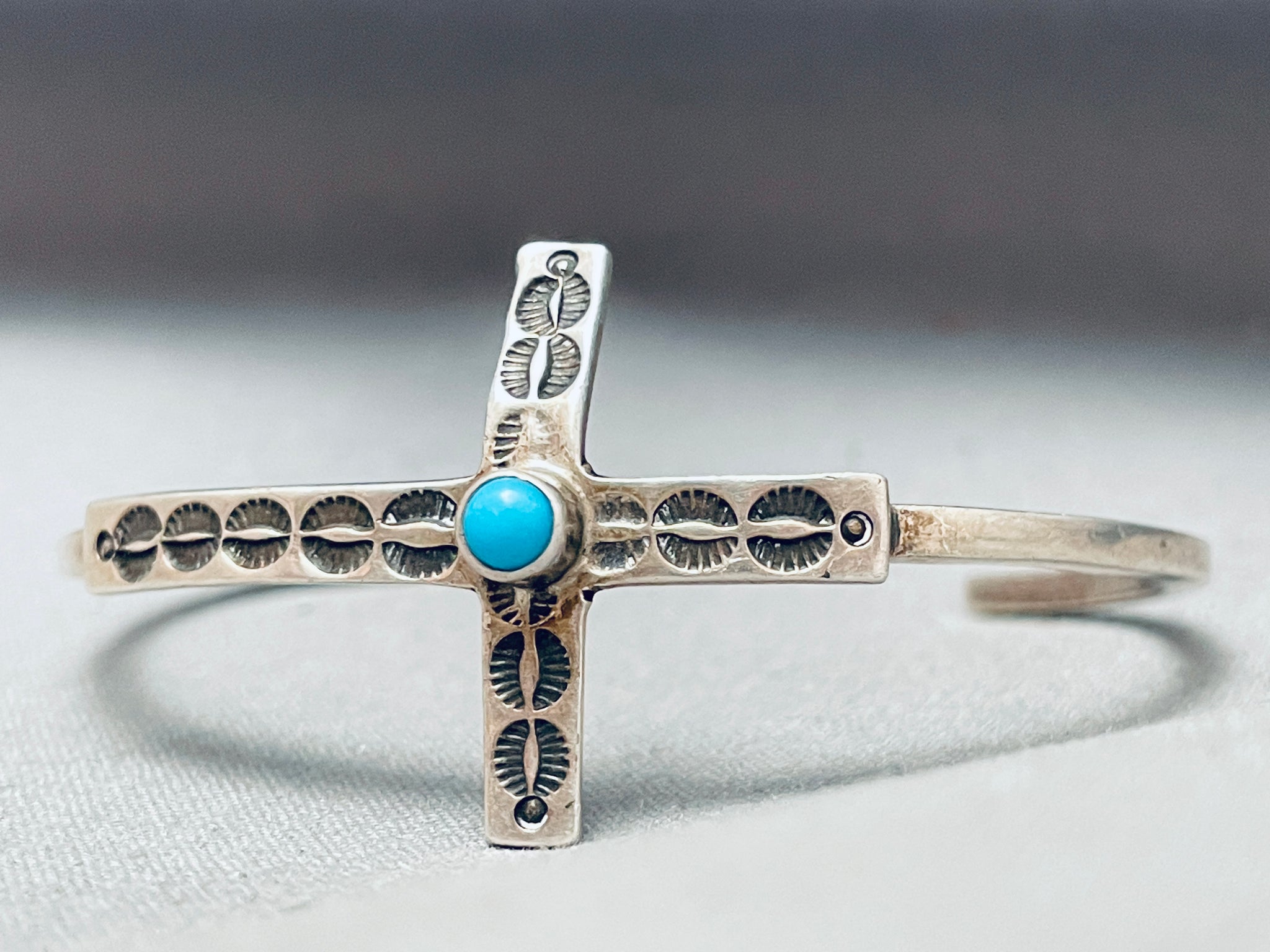 Turquoise Cross Vintage Native American Navajo Sterling Silver Bracelet Cuff