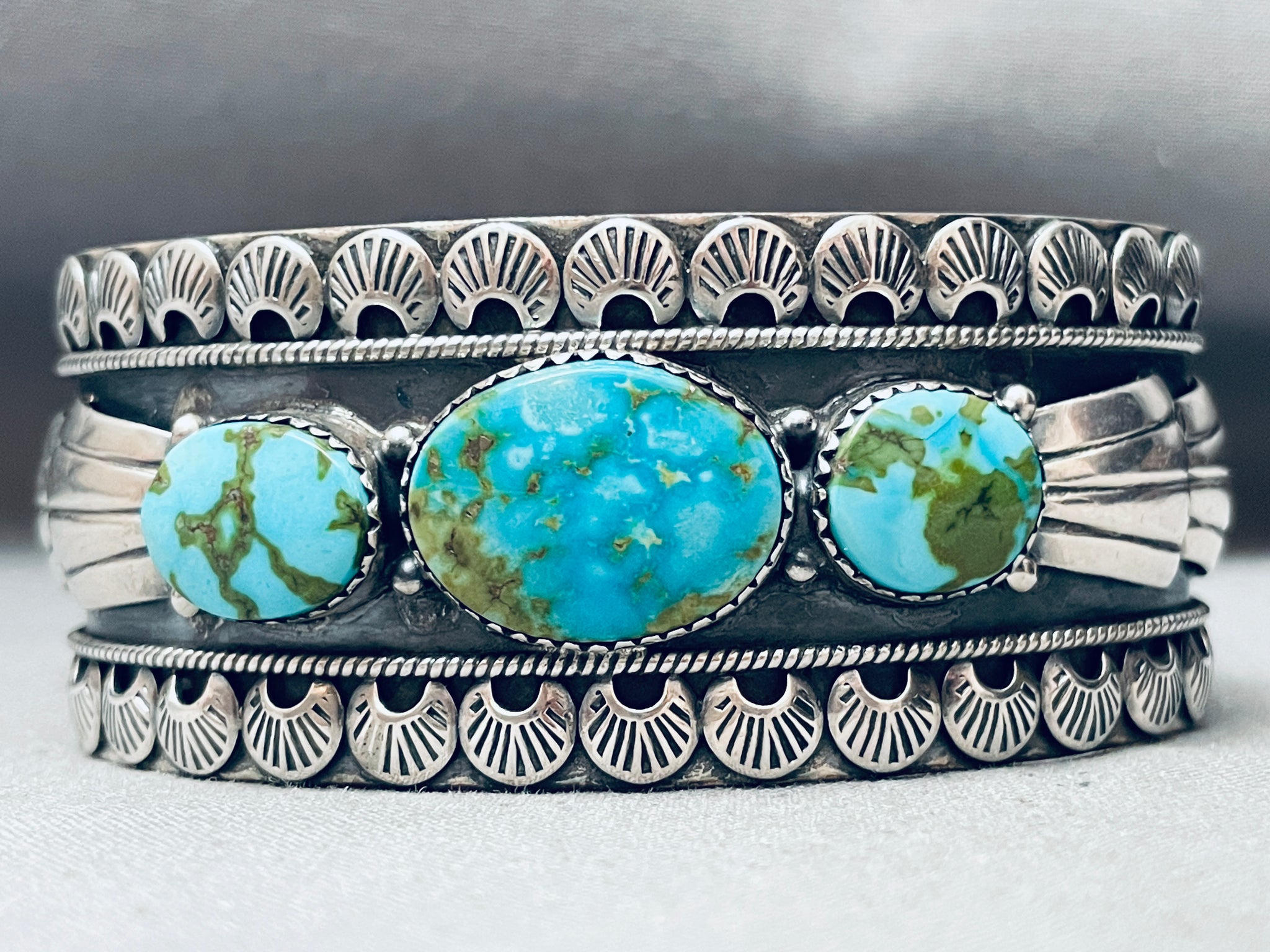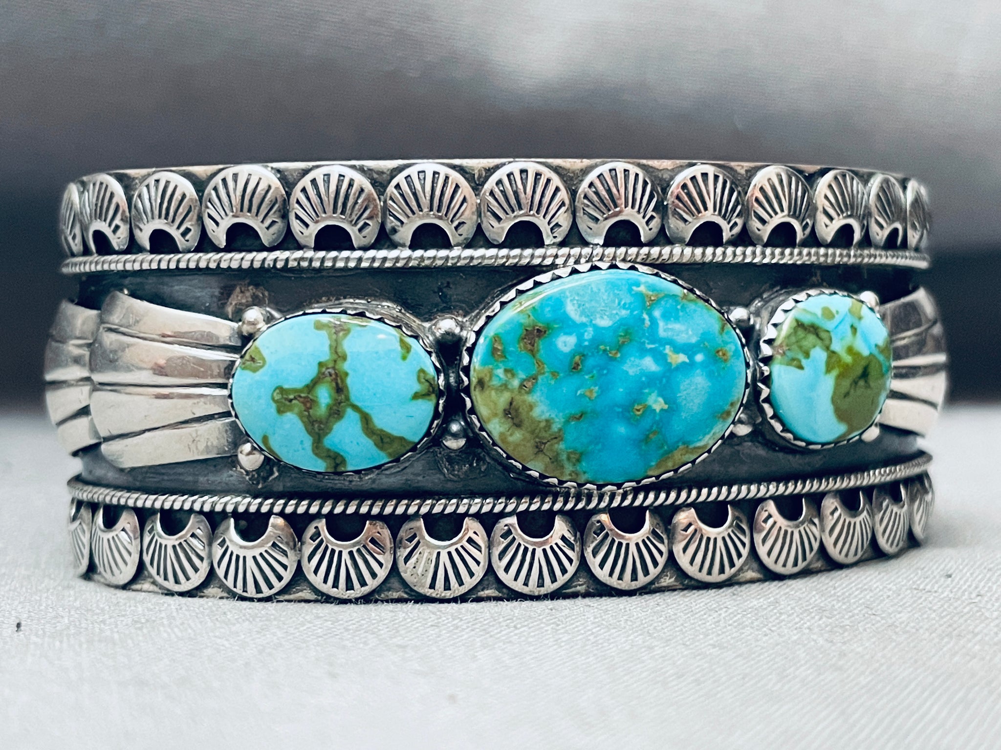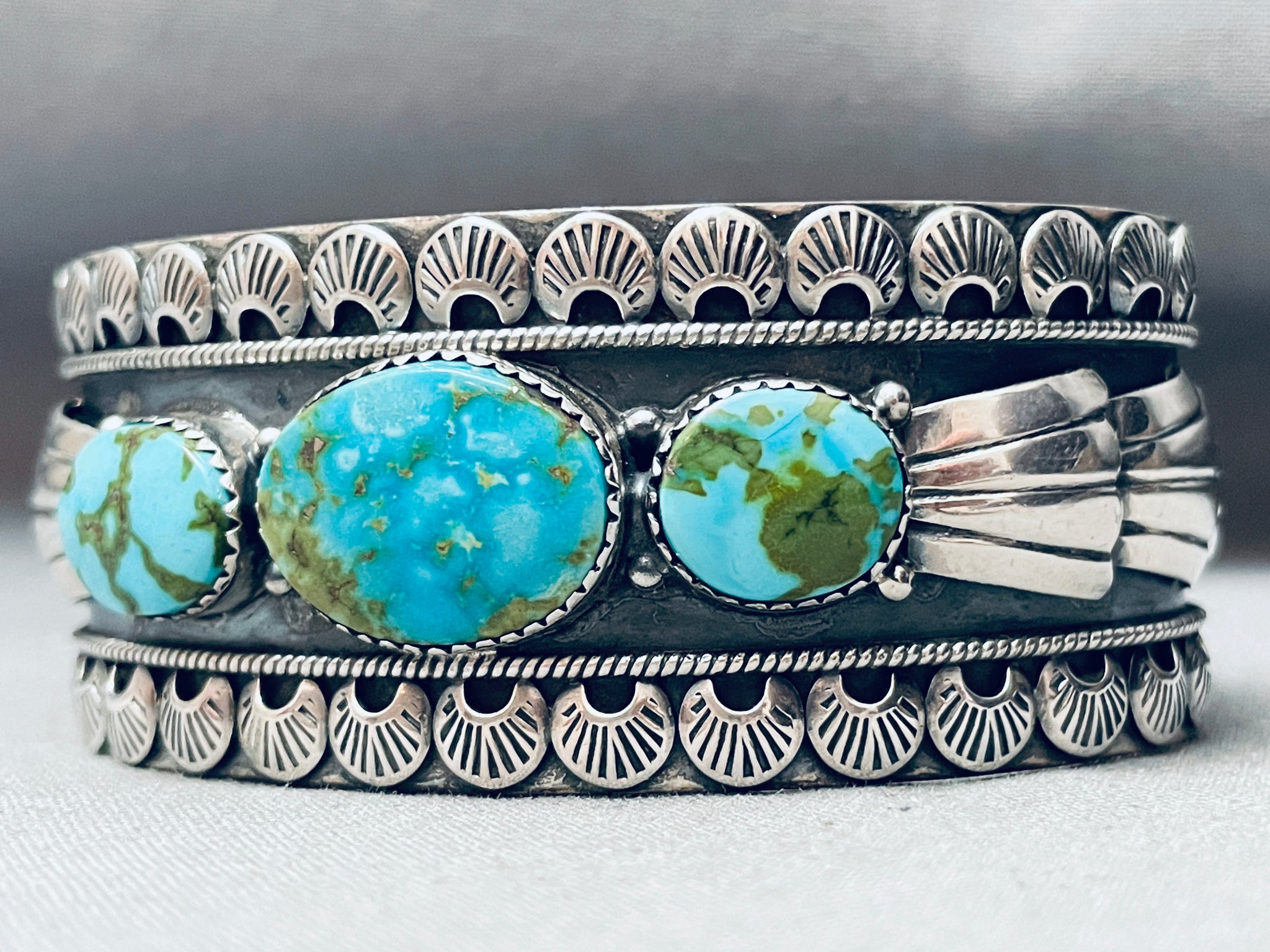 Unique Shells Vintage Native American Navajo Blue Gem Turquoise Sterling Silver Bracelet