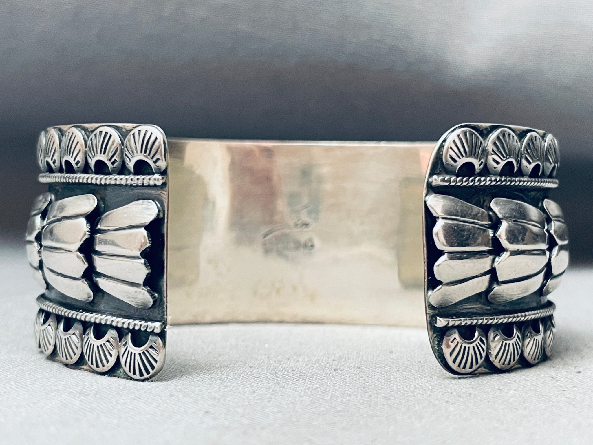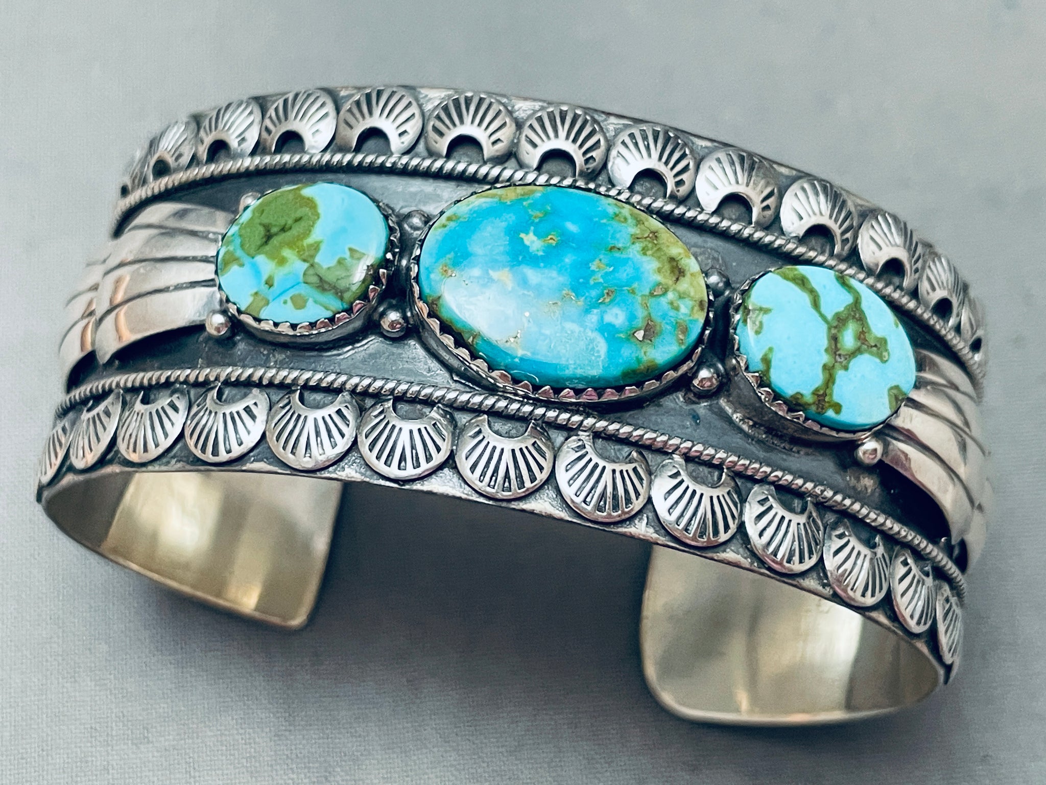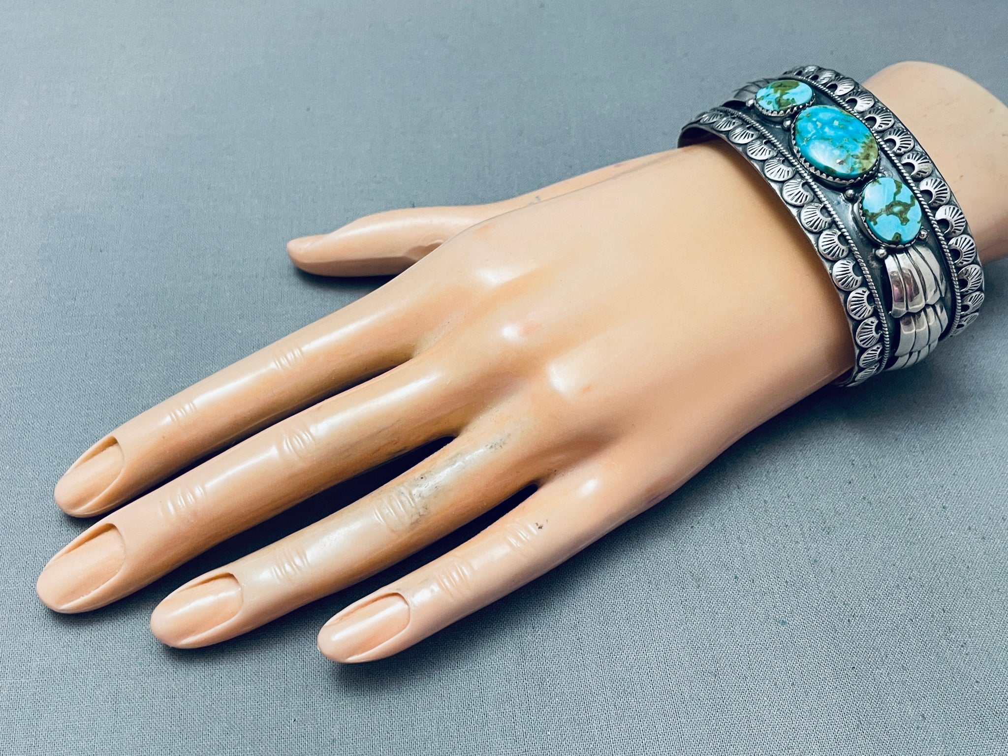 Unique Shells Vintage Native American Navajo Blue Gem Turquoise Sterling Silver Bracelet