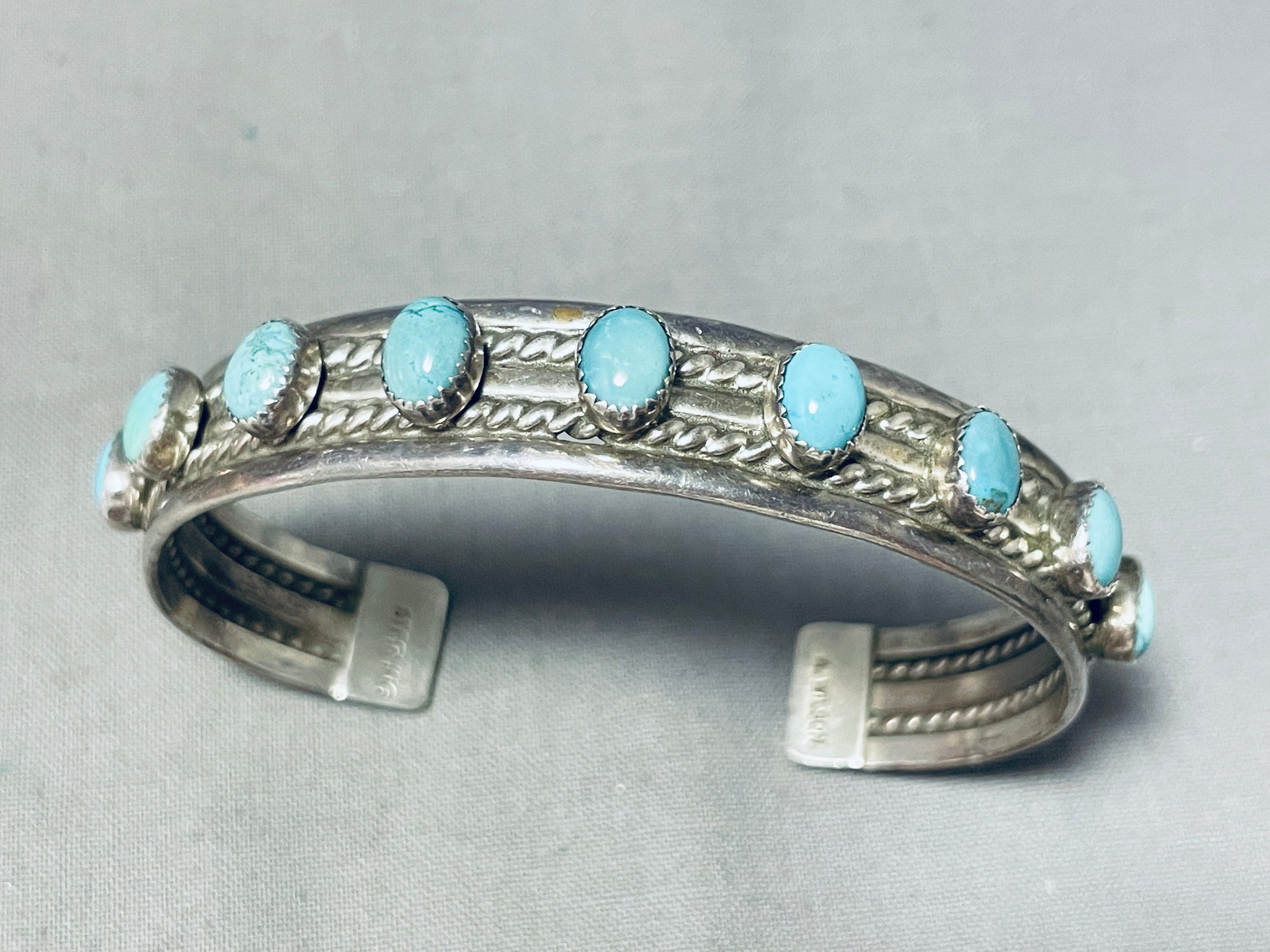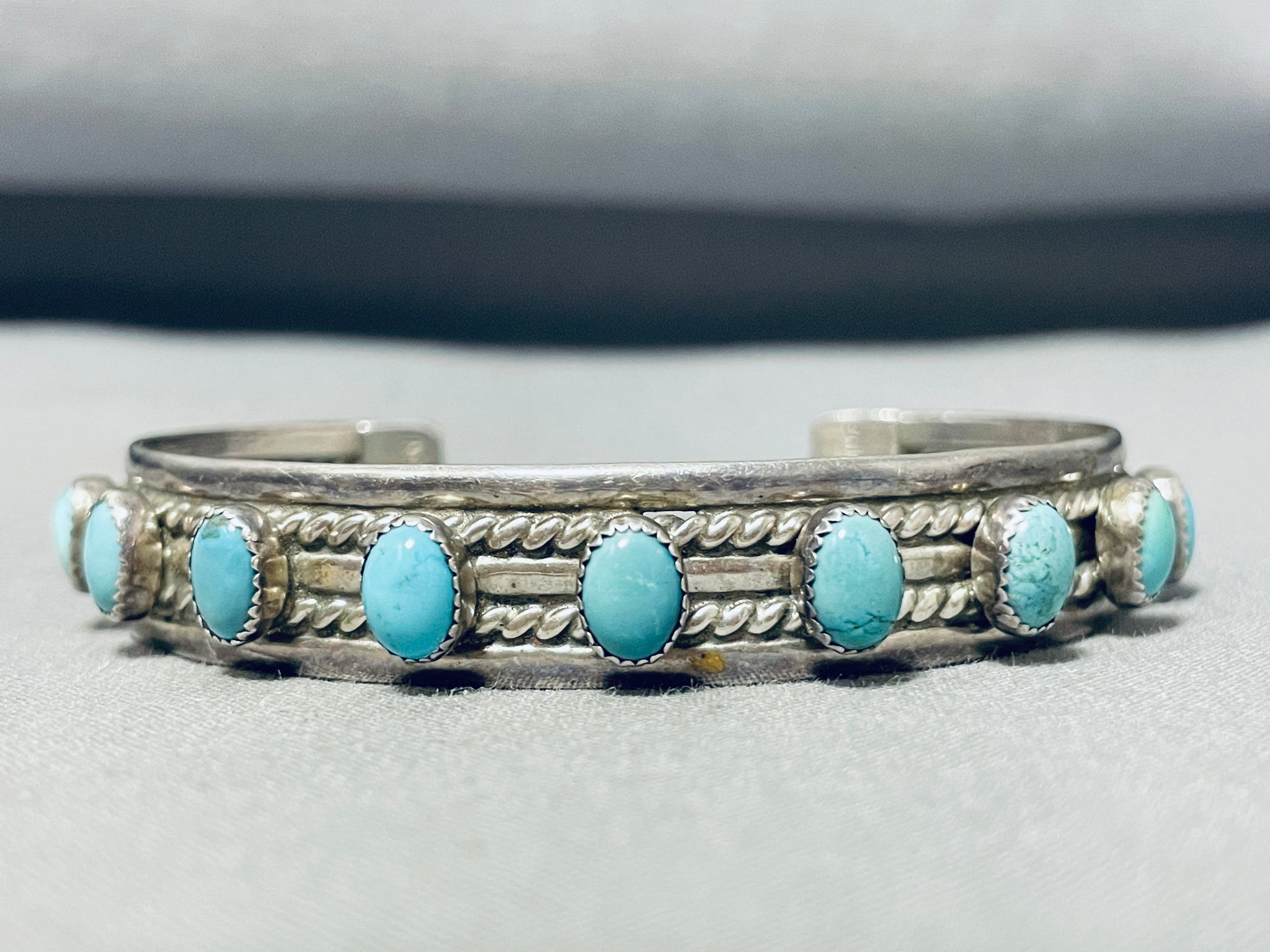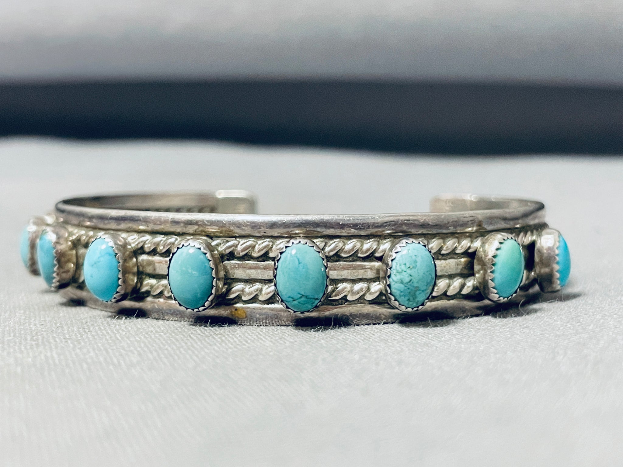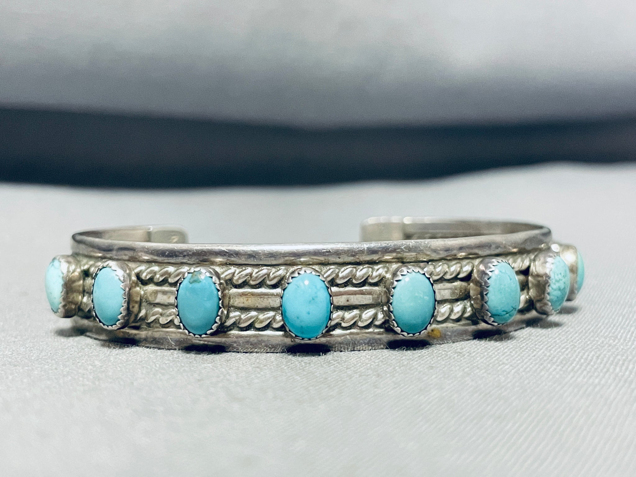 Unique Vintage Native American Navajo Turquoise Sterling Silver Bracelet