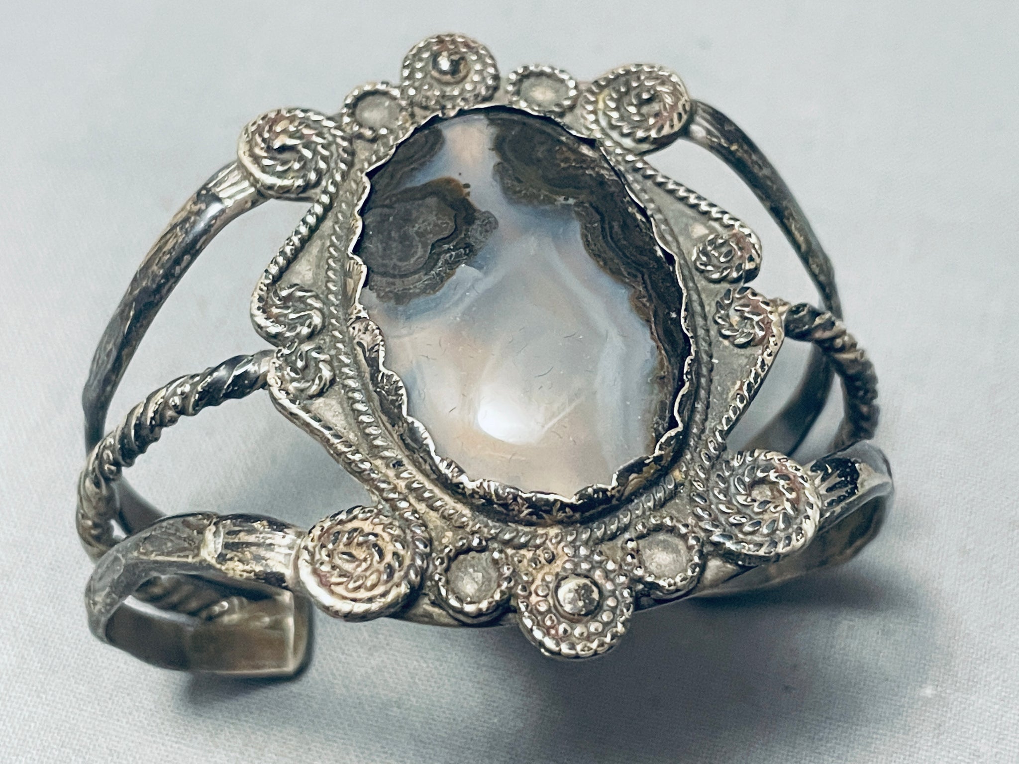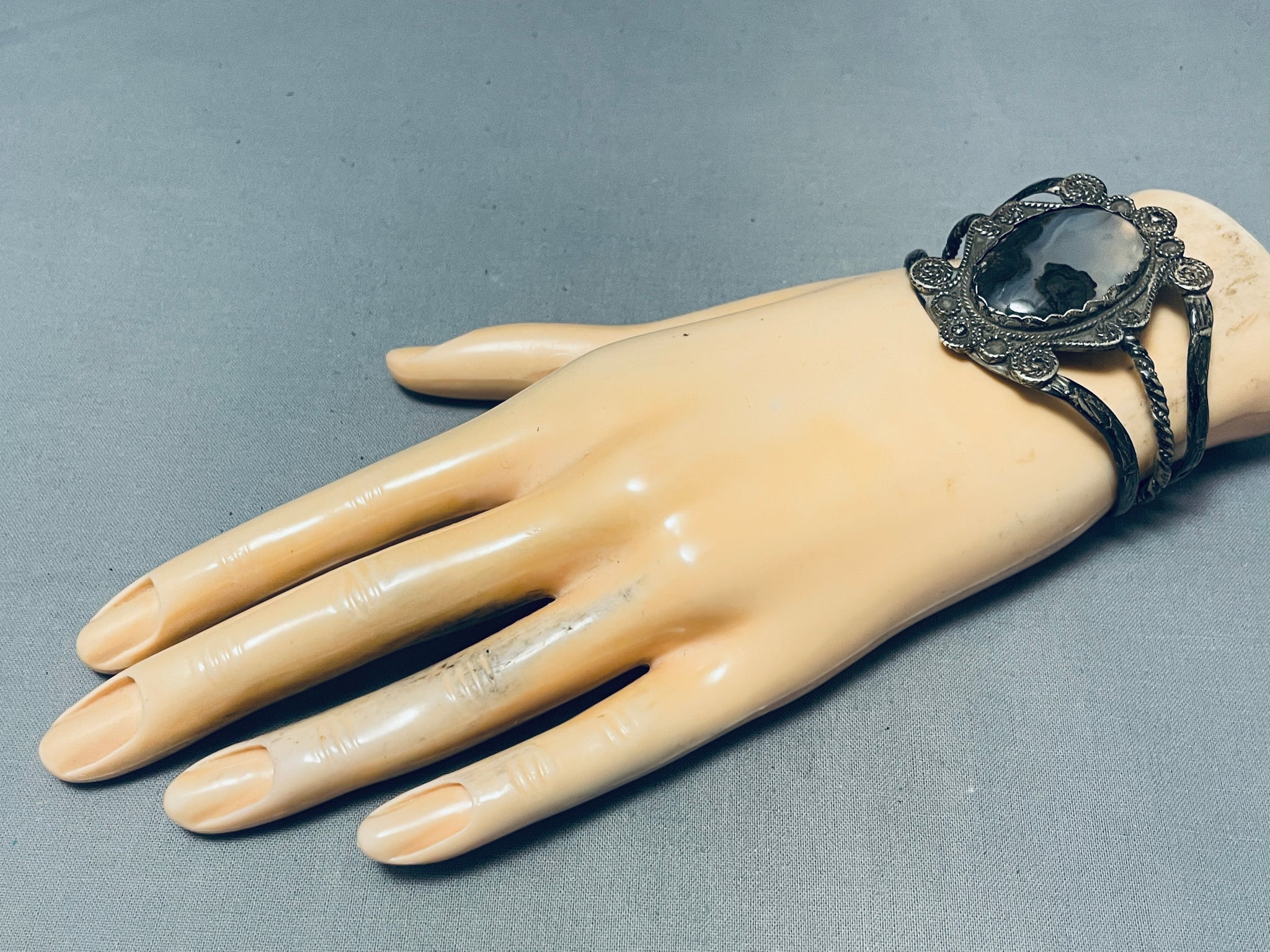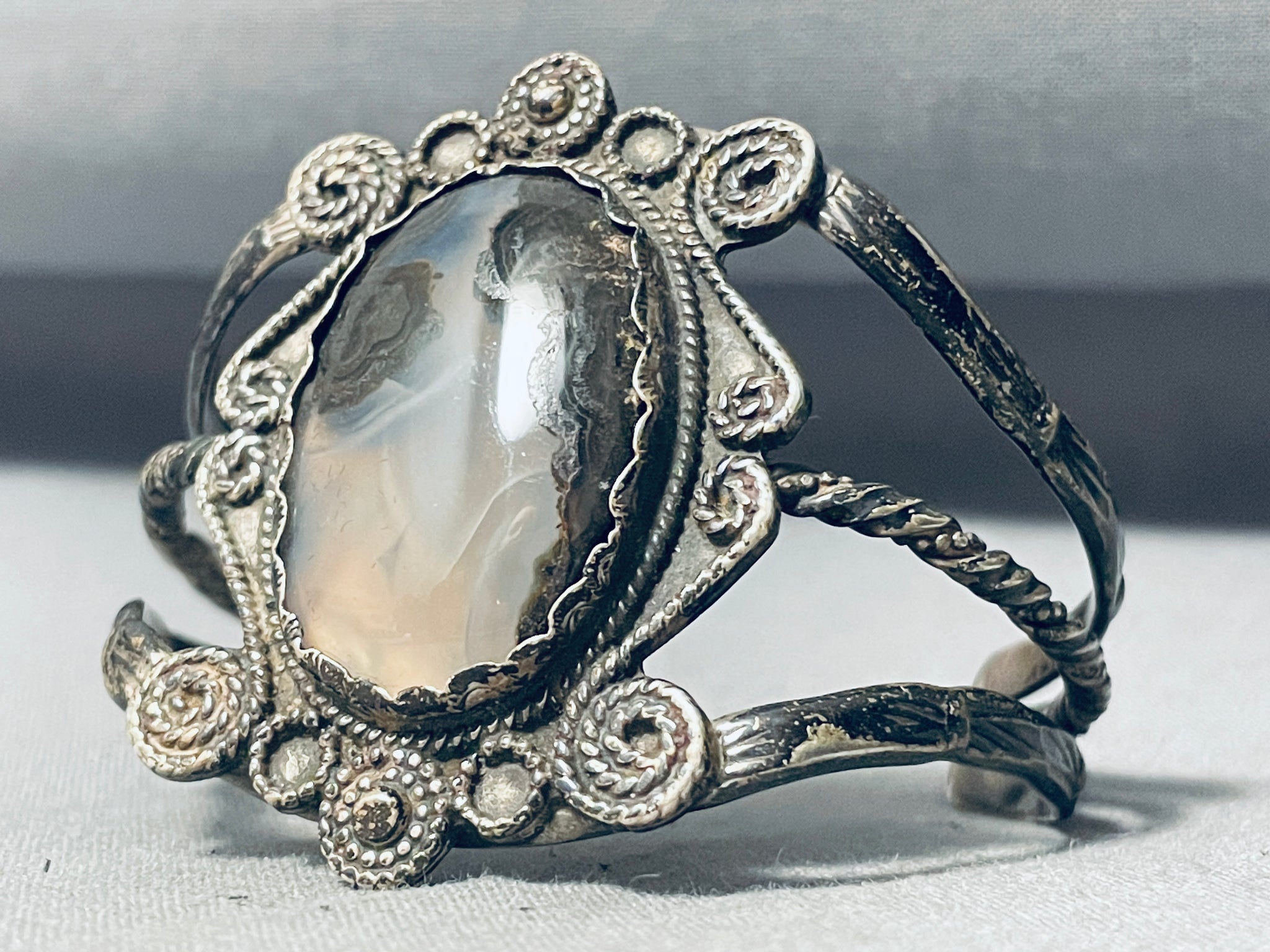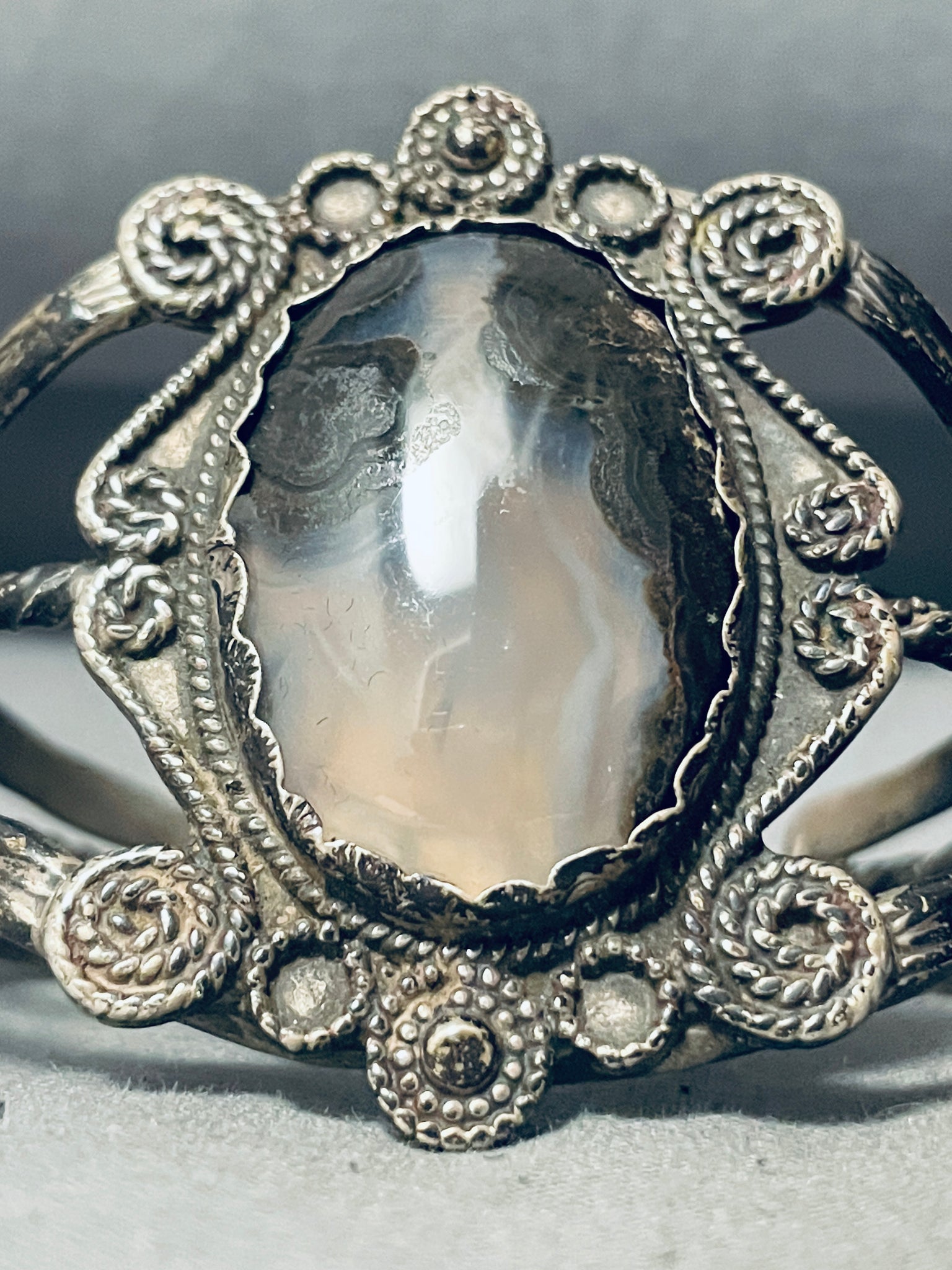 Very Early Vintage Native American Navajo Petrified Wood Sterling Silver Bracelet