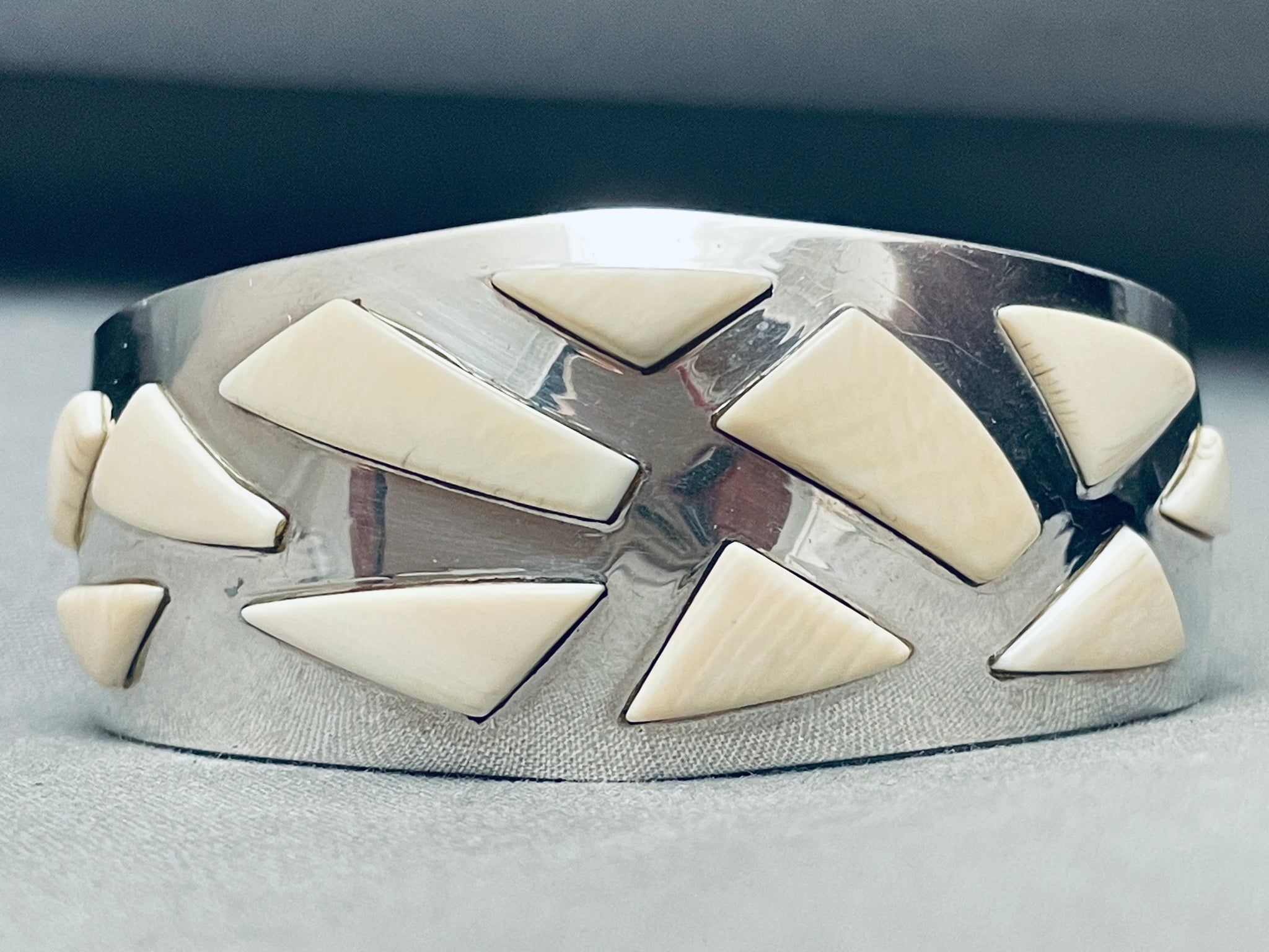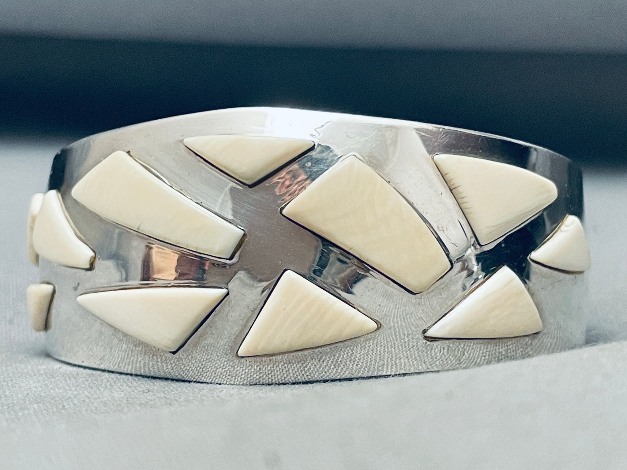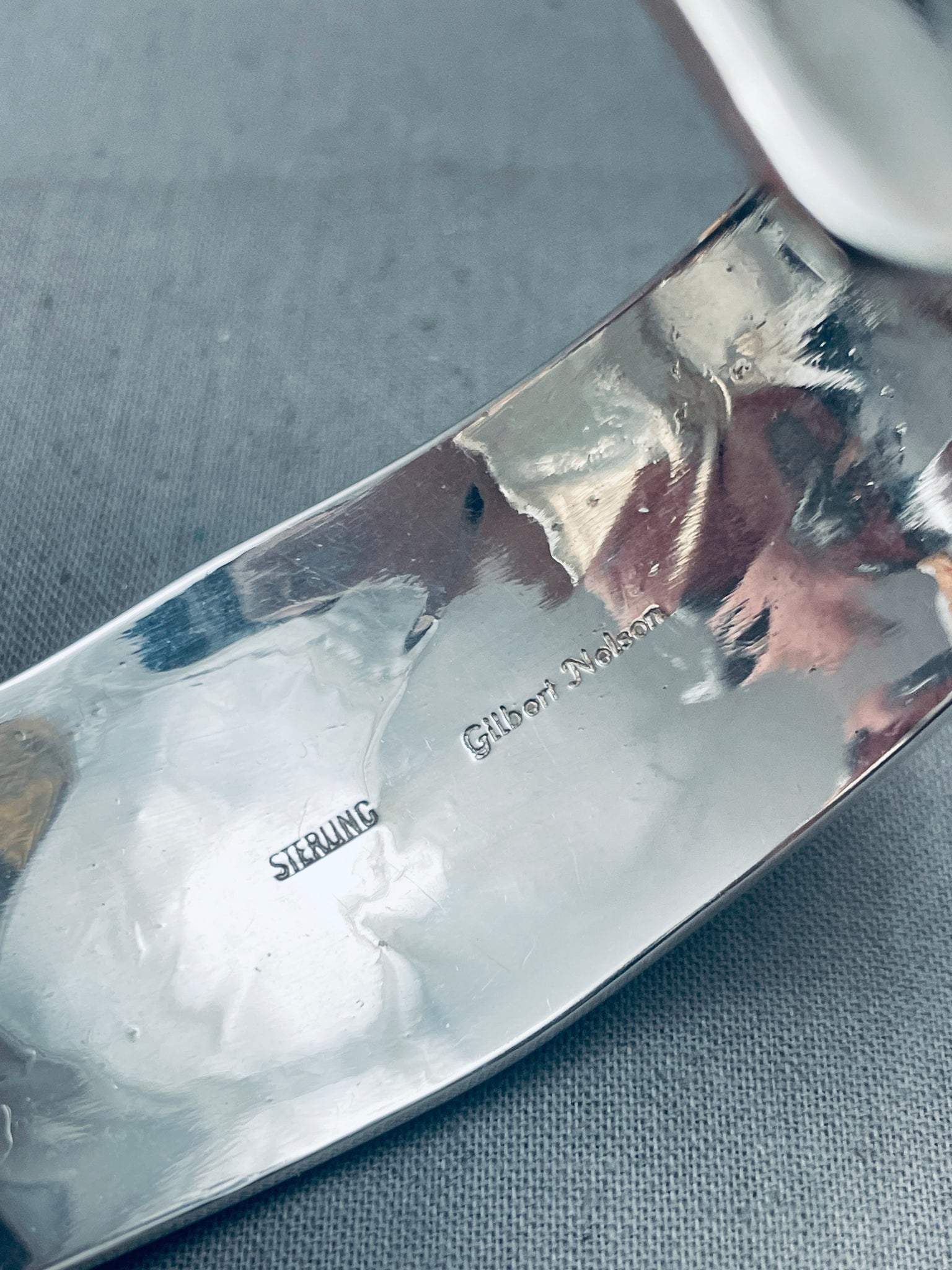 Very Rare Gil Nelson Special White Stone Vintage Native American Navajo Sterling Silver Bracelet