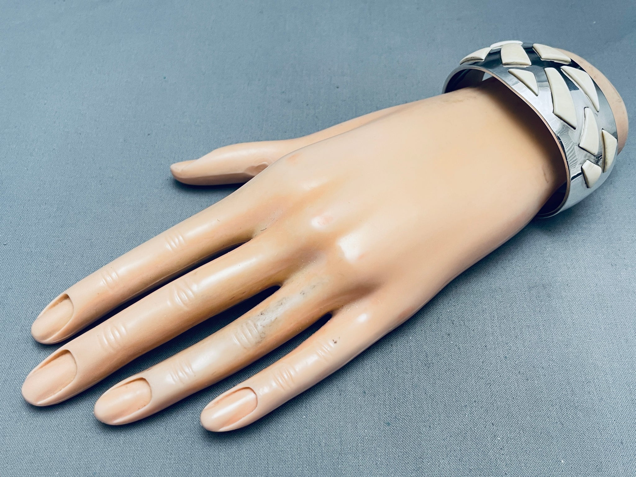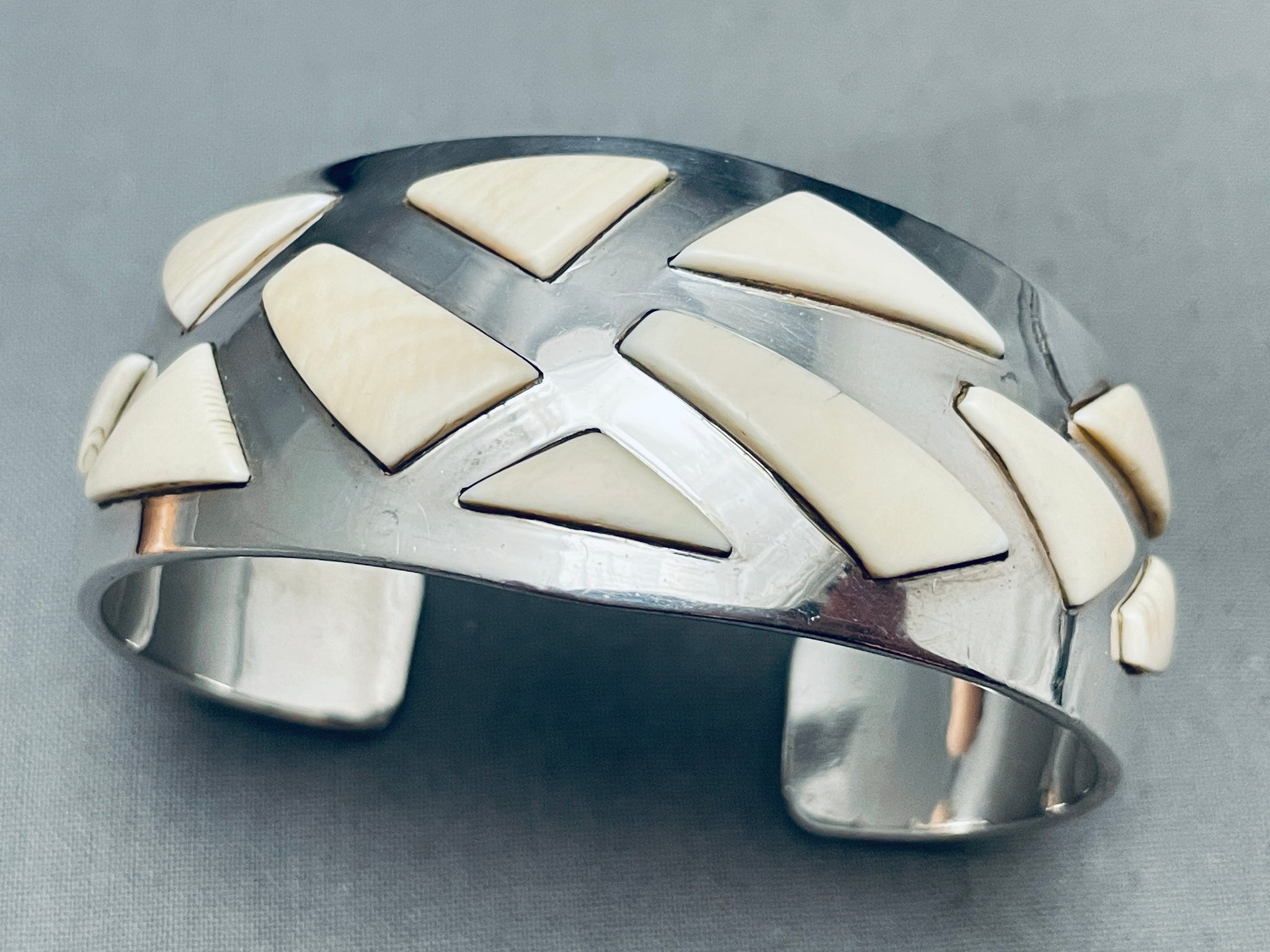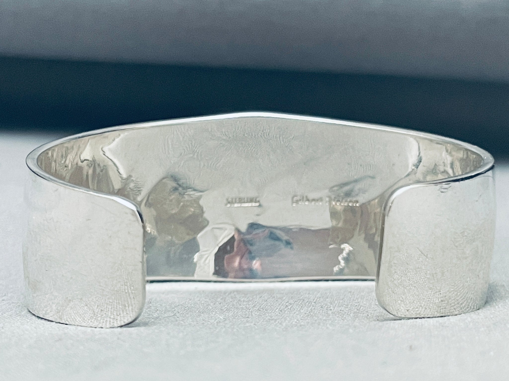 Very Rare Gil Nelson Special White Stone Vintage Native American Navajo Sterling Silver Bracelet