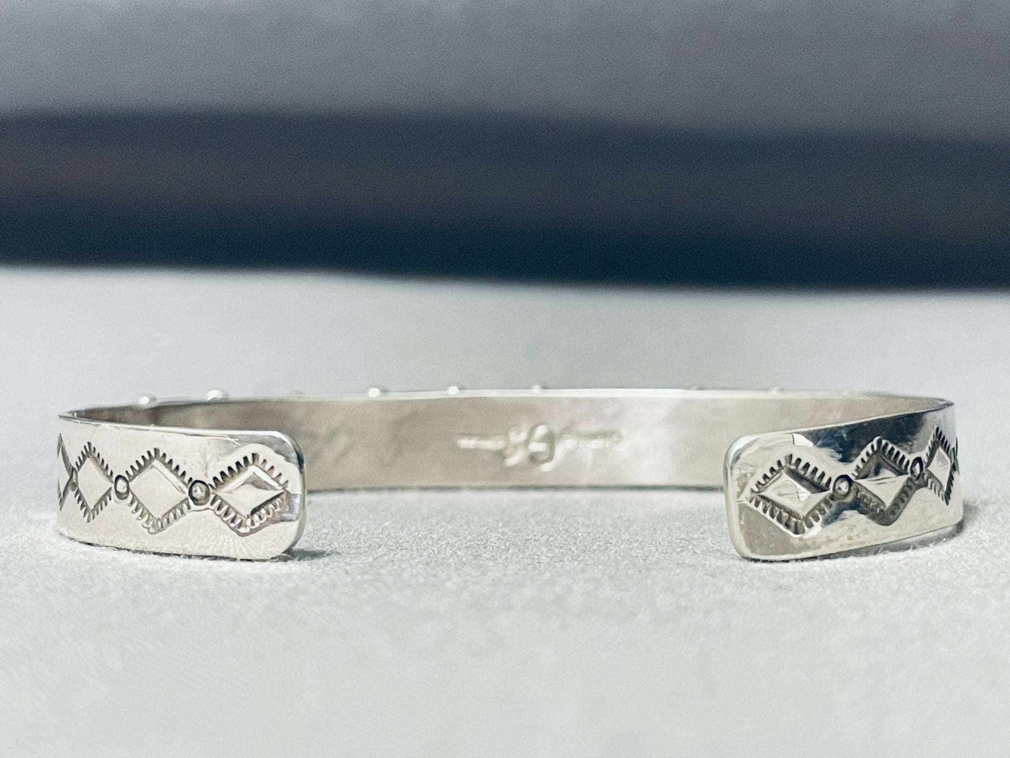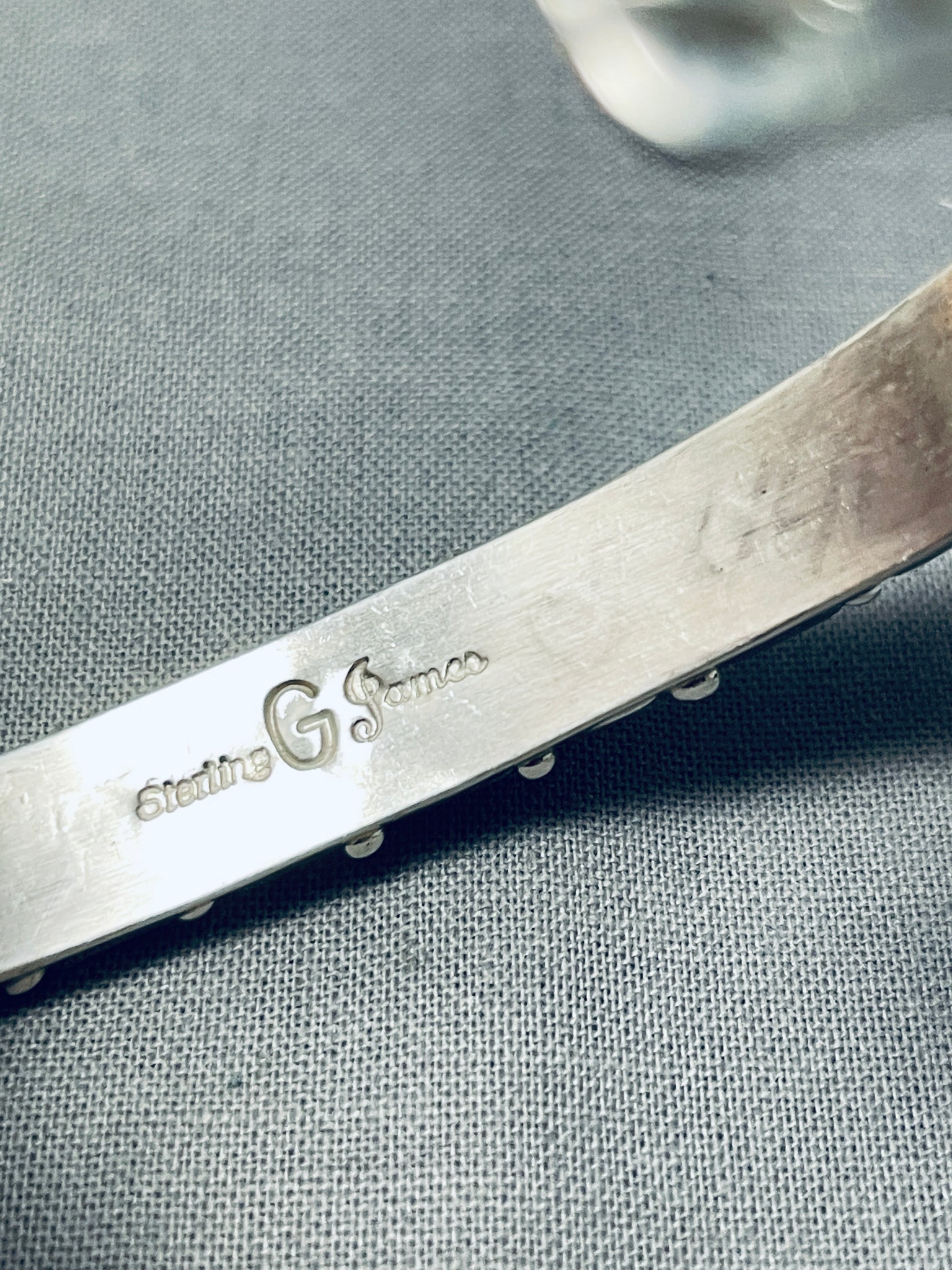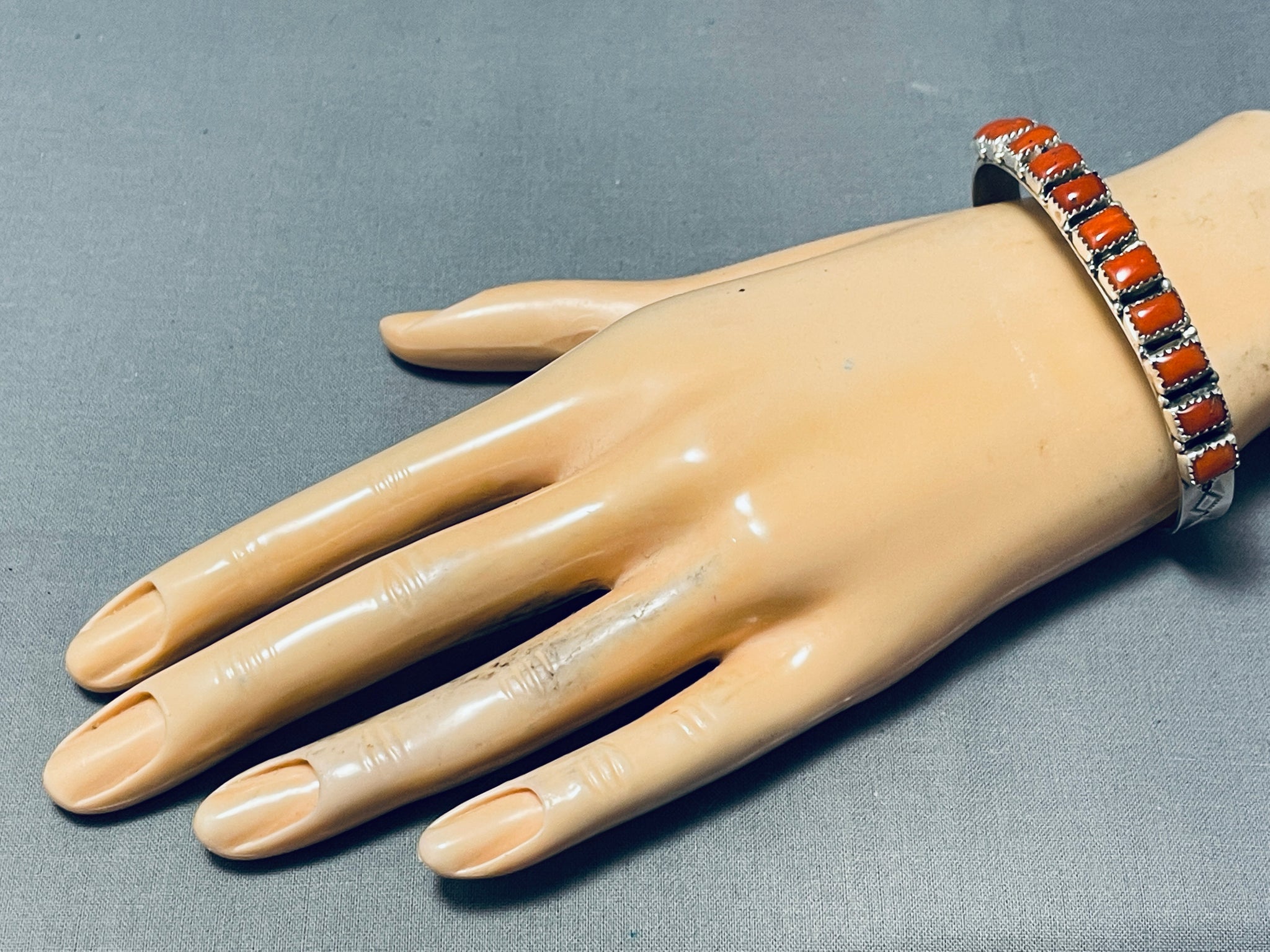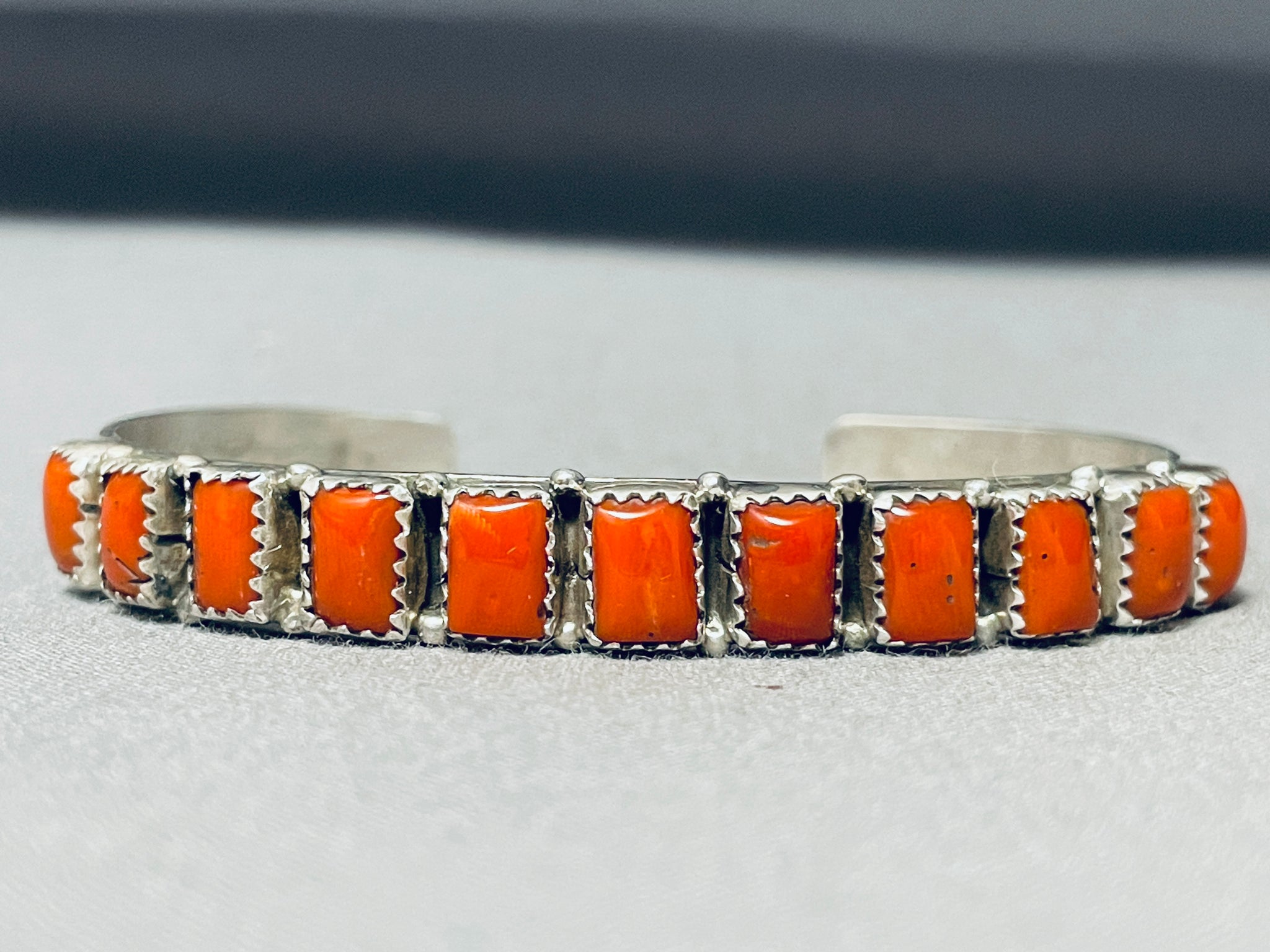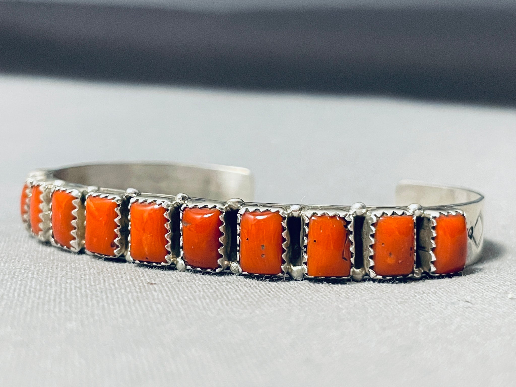 Very Rare Squared Coral Native American Navajo Sterling Silver Bracelet Cuff