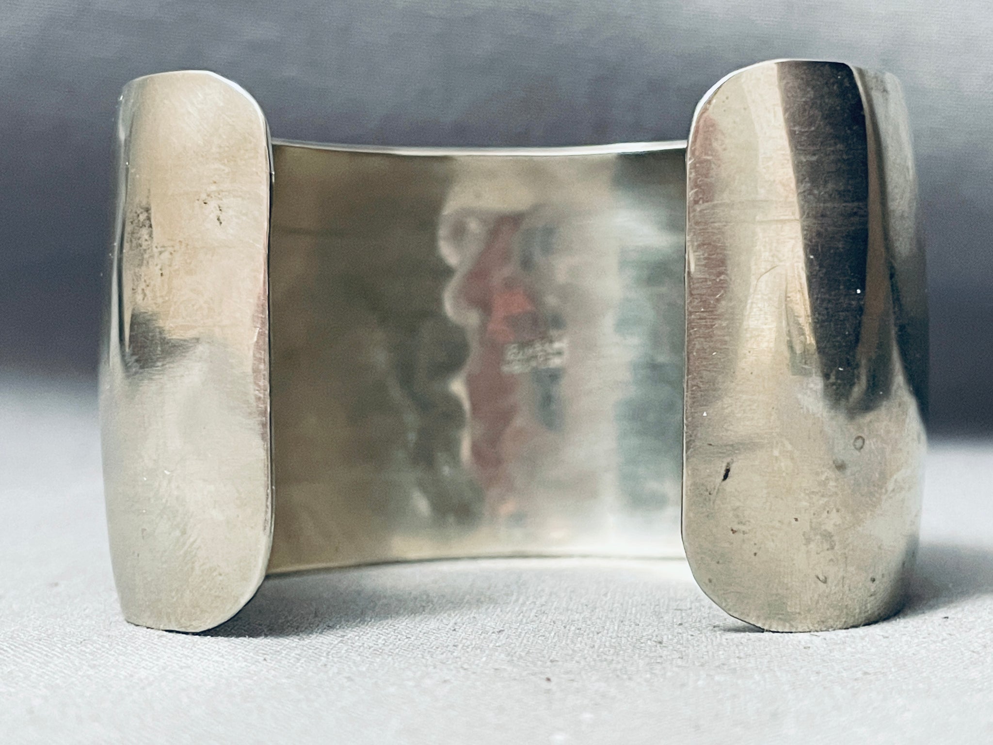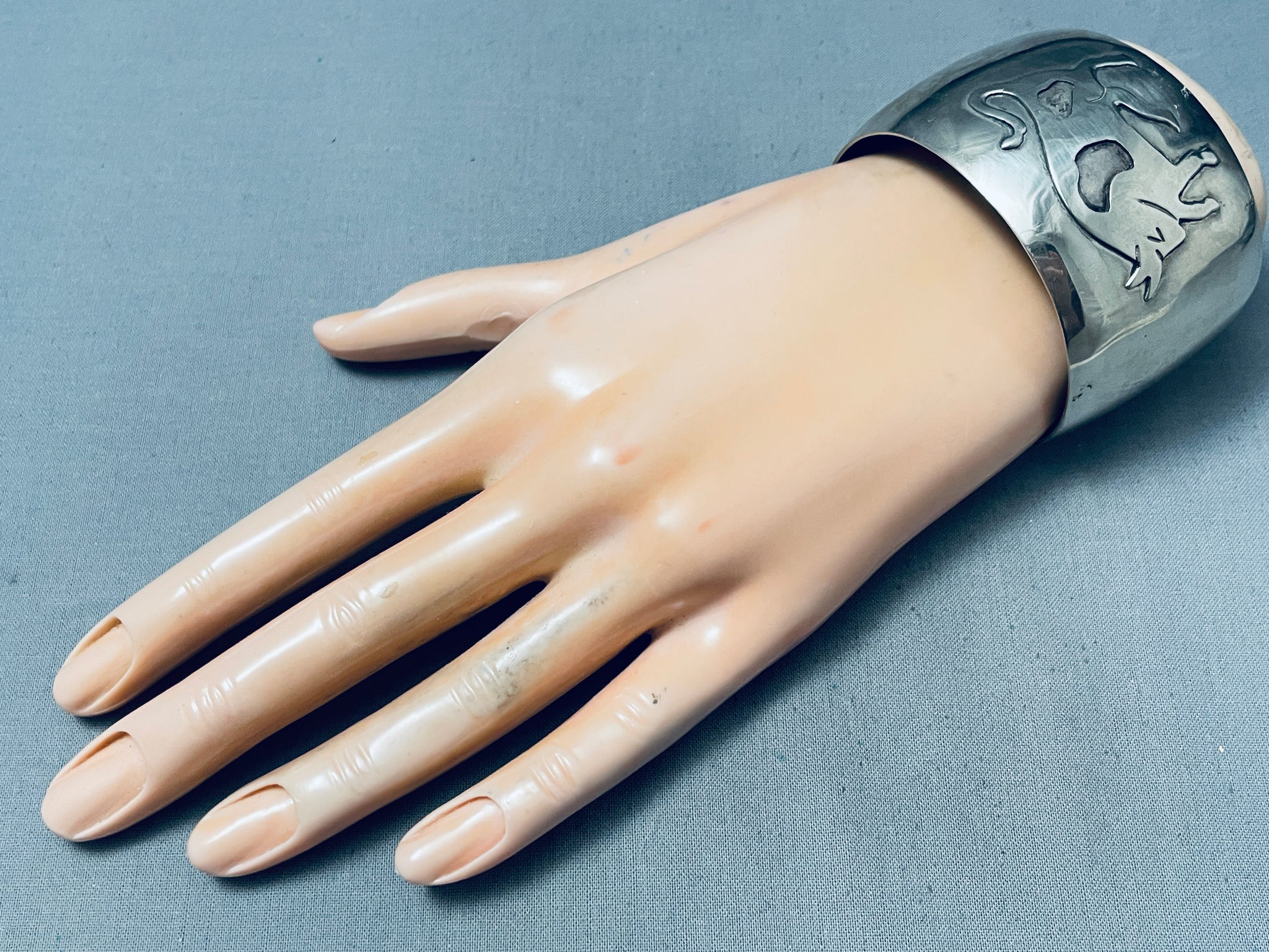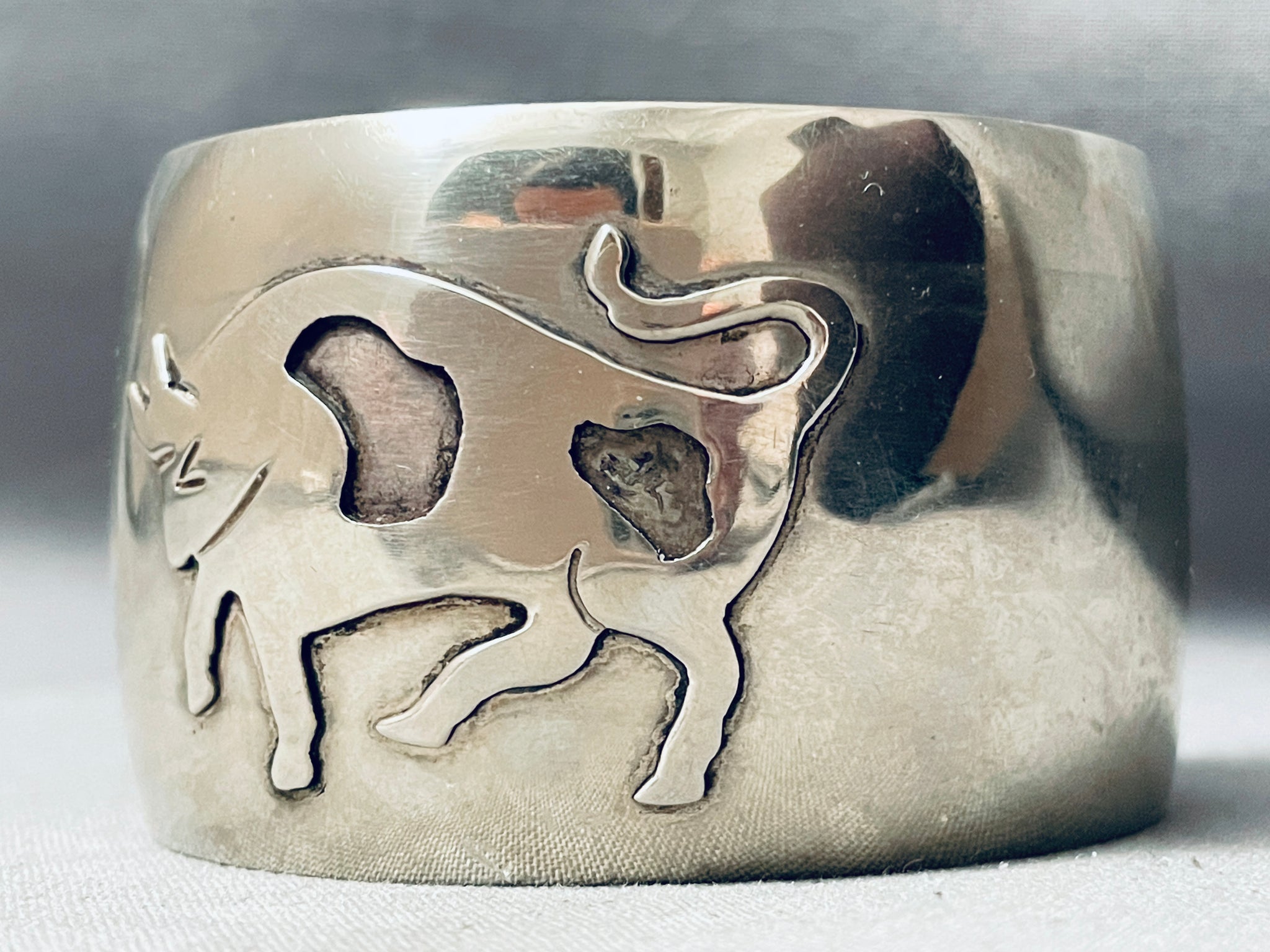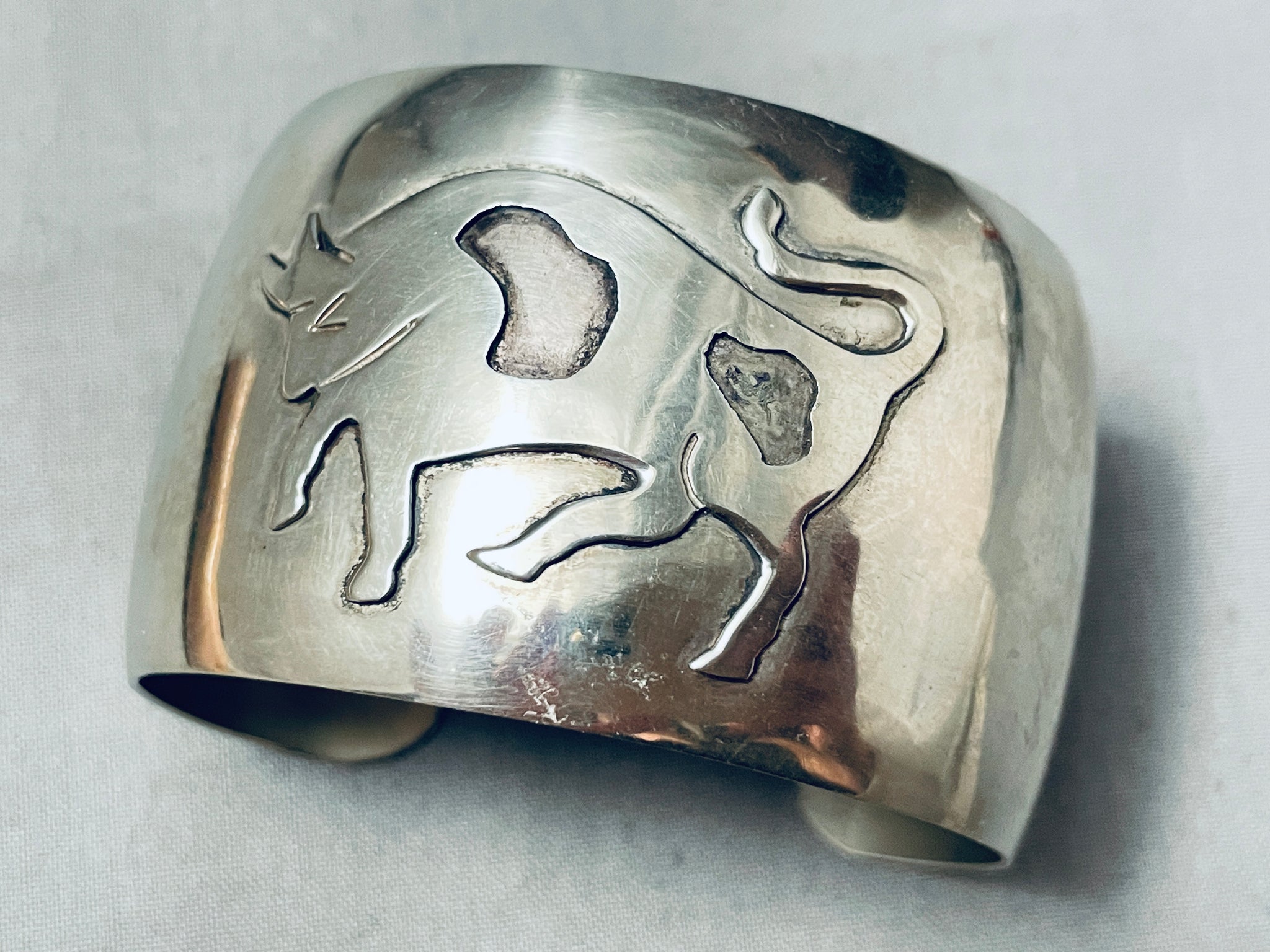 Wide Vintage Navajo Hand Tooled Bull Sterling Silver Bracelet Cuff