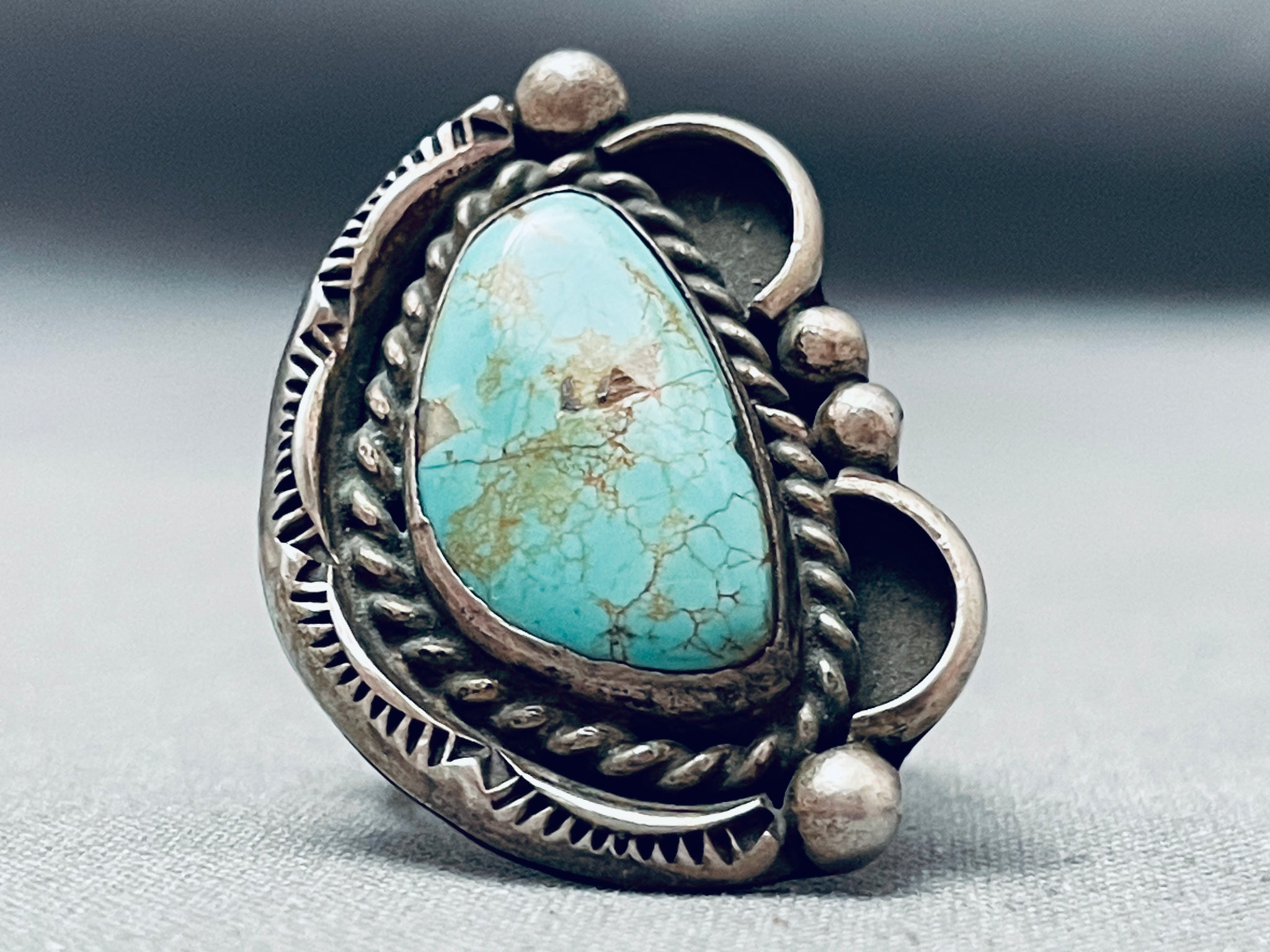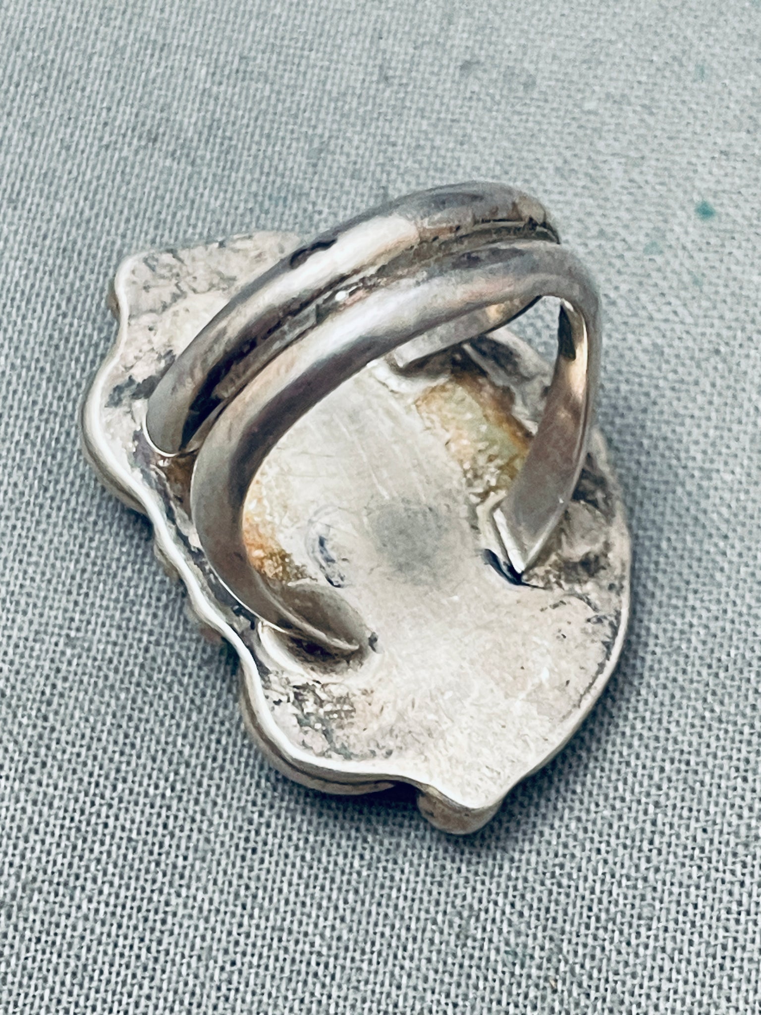 Incredible Vintage Native American Navajo Spiderweb #8 Turquoise Sterling Silver Ring
