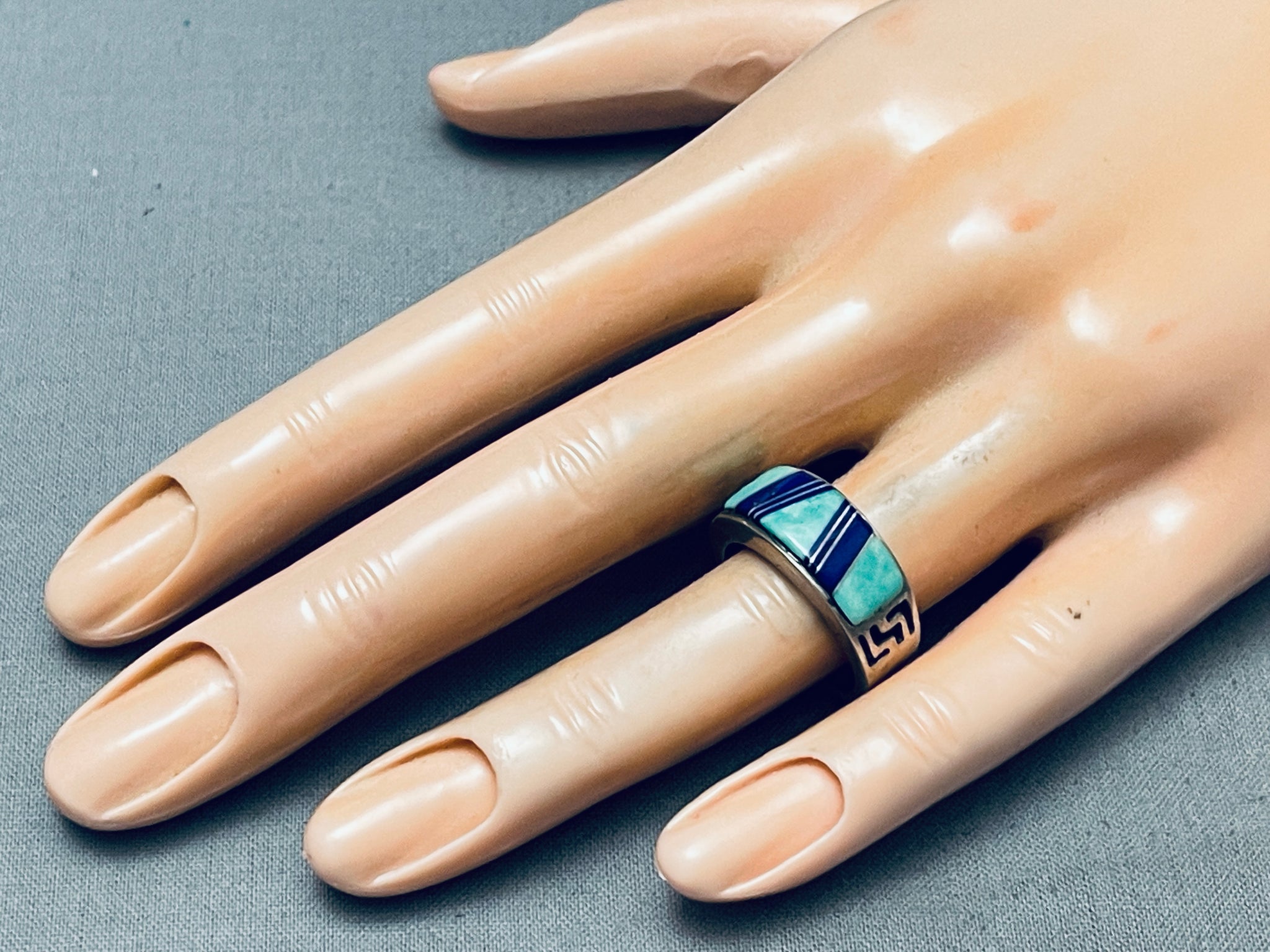 Intricate Vintage Native American Navajo Inlay Sterling Silver Ring