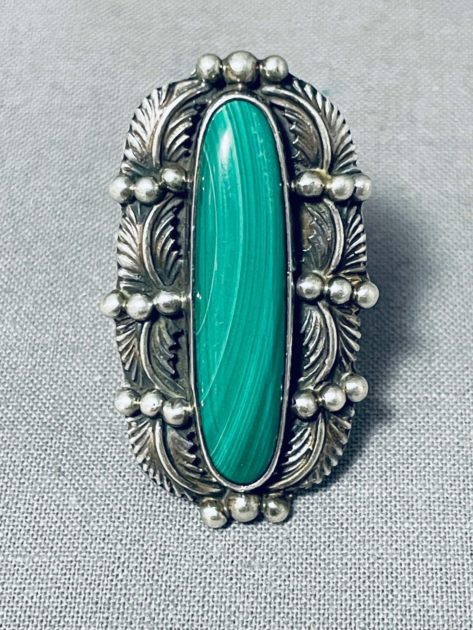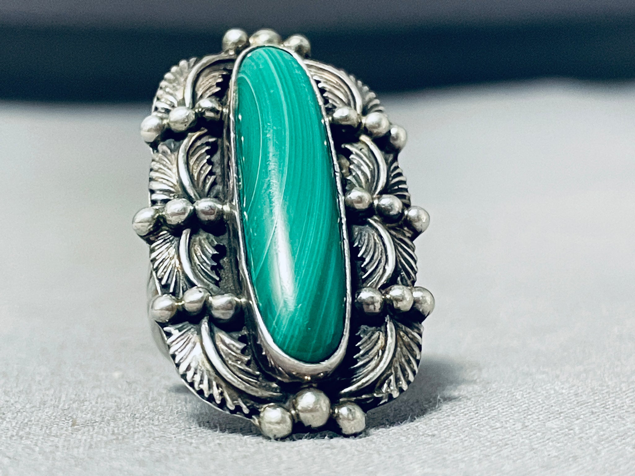 Spectacular Vintage Native American Navajo Malachite Sterling Silver Ring
