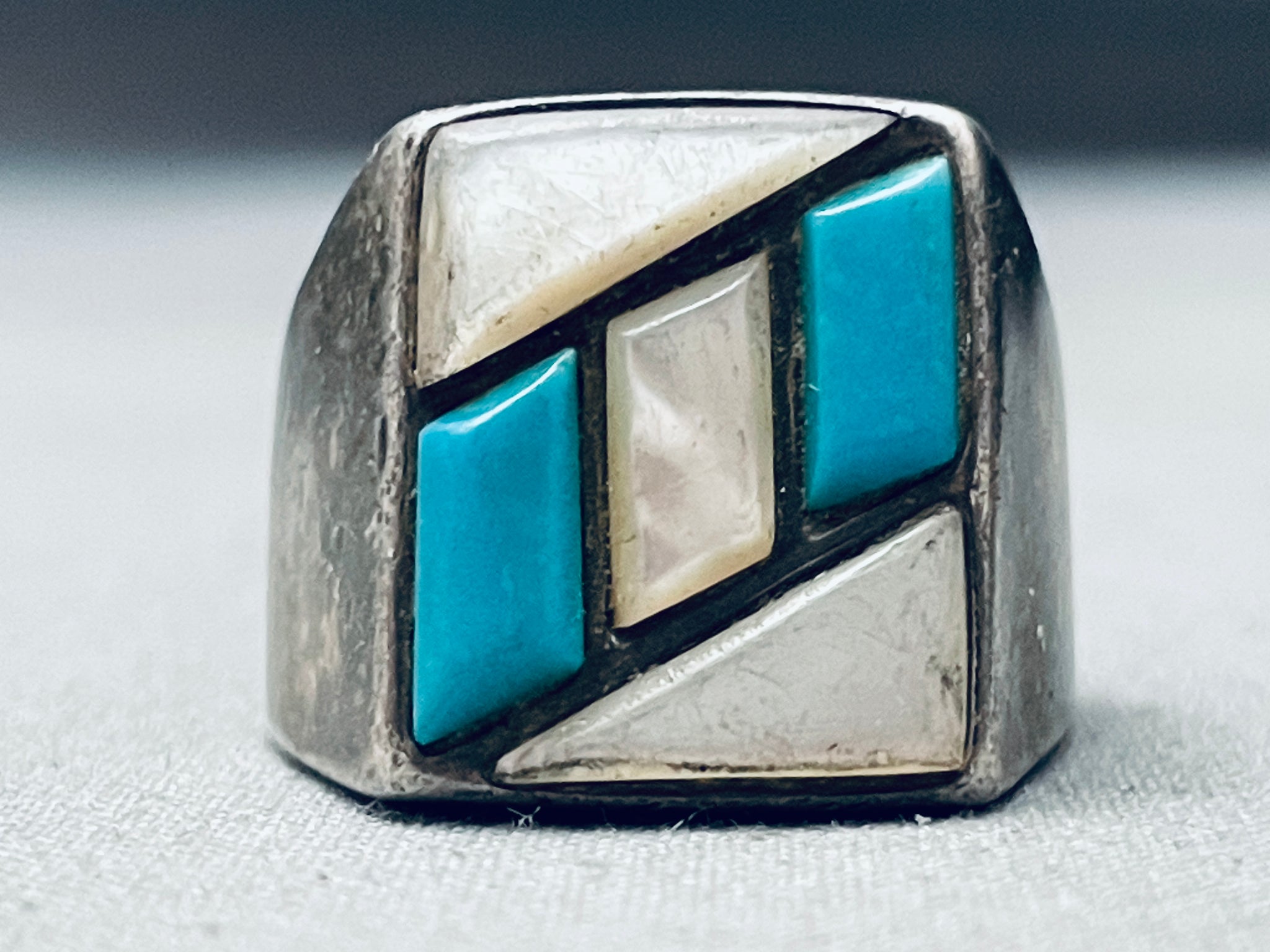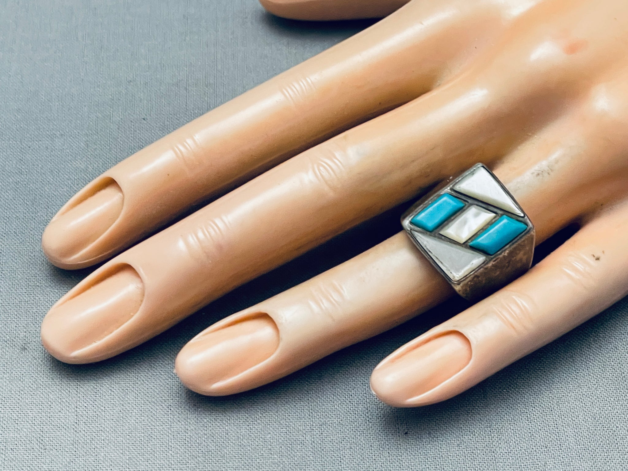 Thicker Vintage Navajo Turquoise Pearl Inlay Sterling Silver Ring