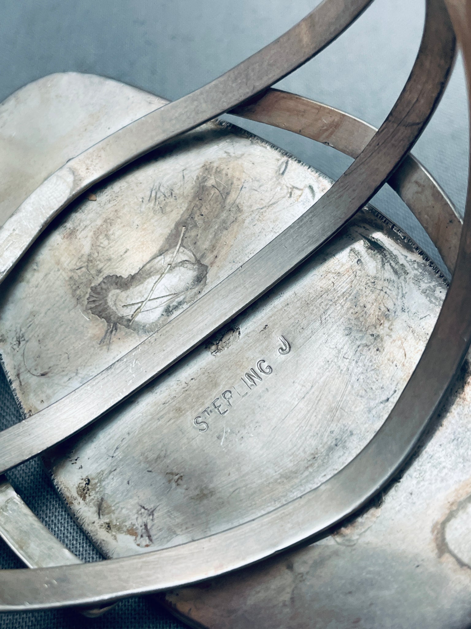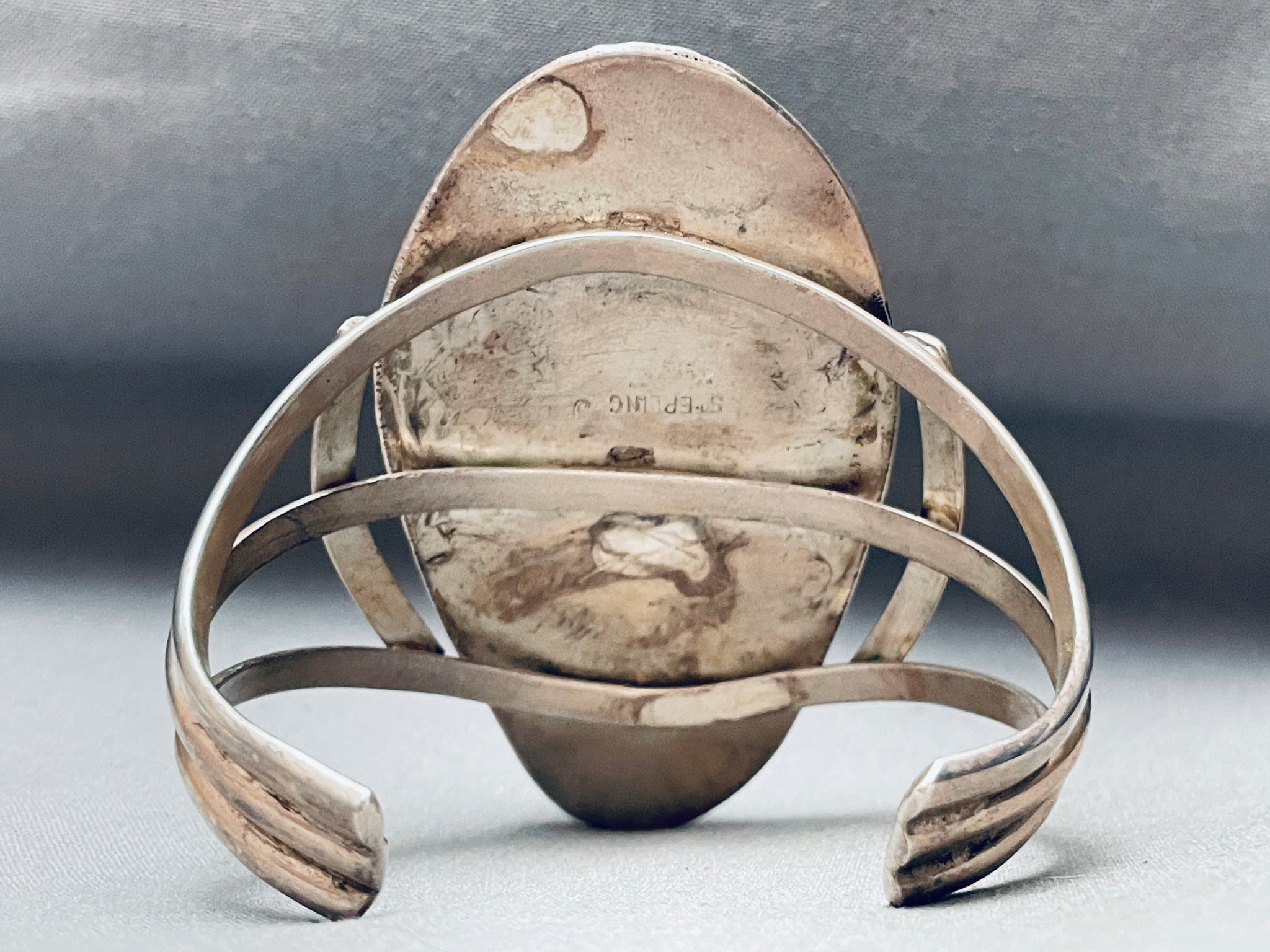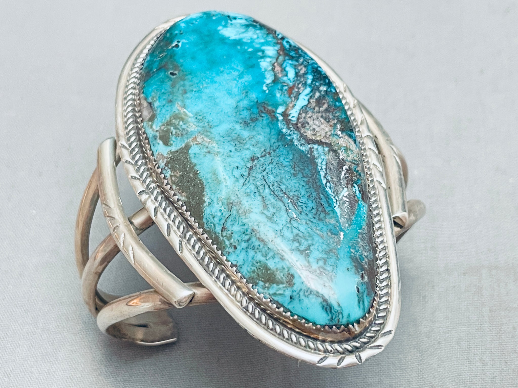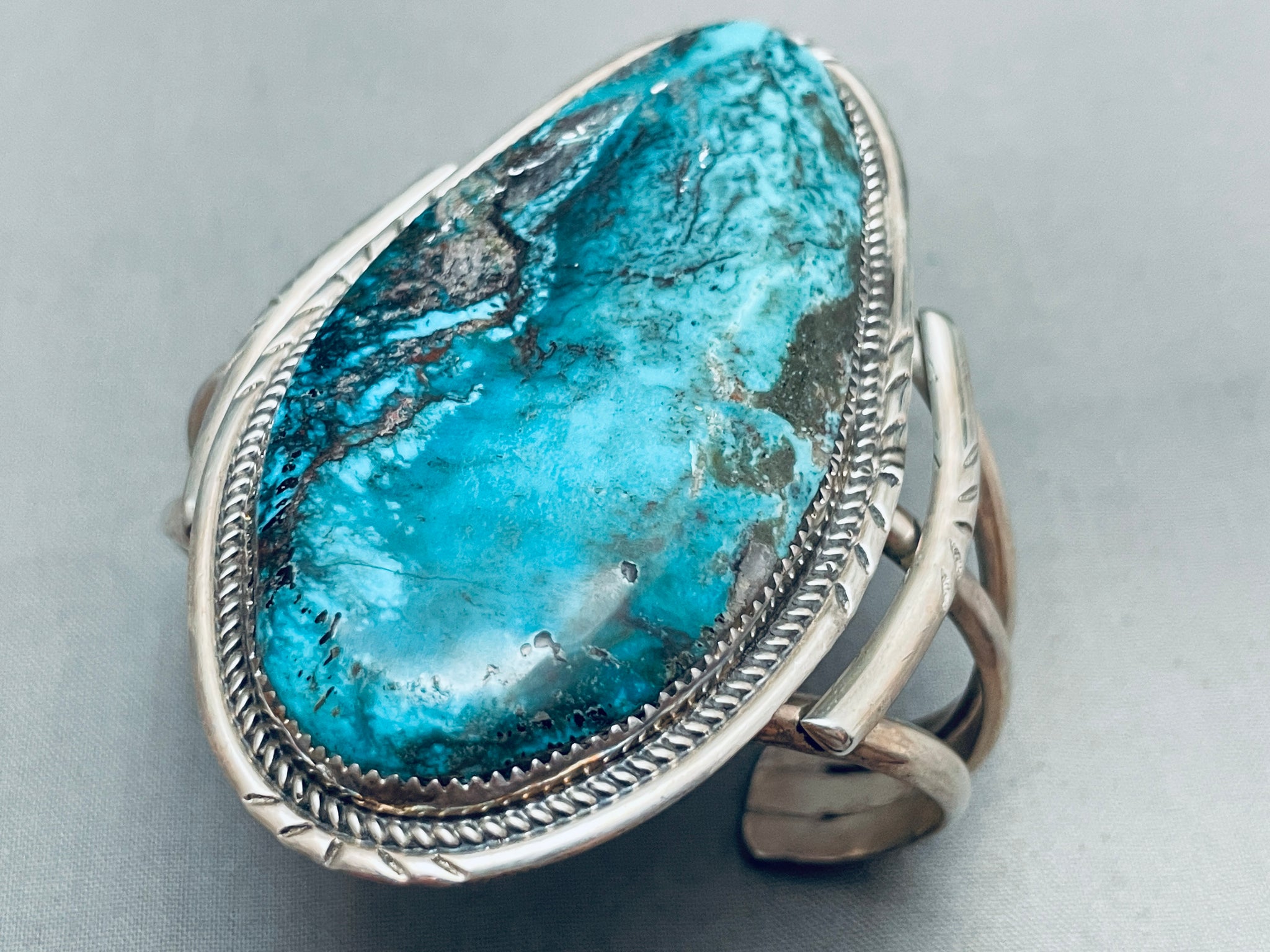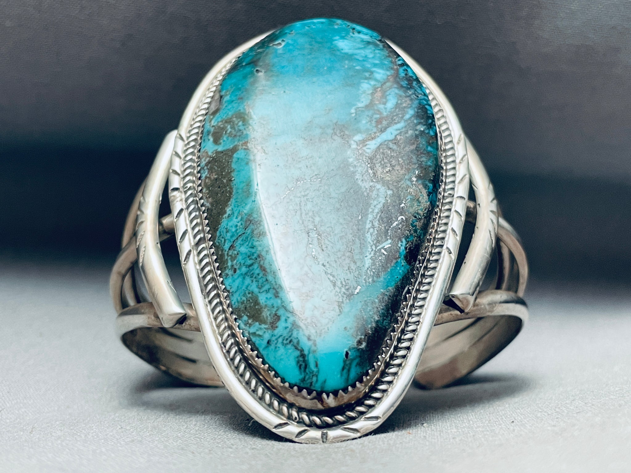 Towering Vintage Native American Navajo Blue Diamond Turquoise Sterling Silver Bracelet