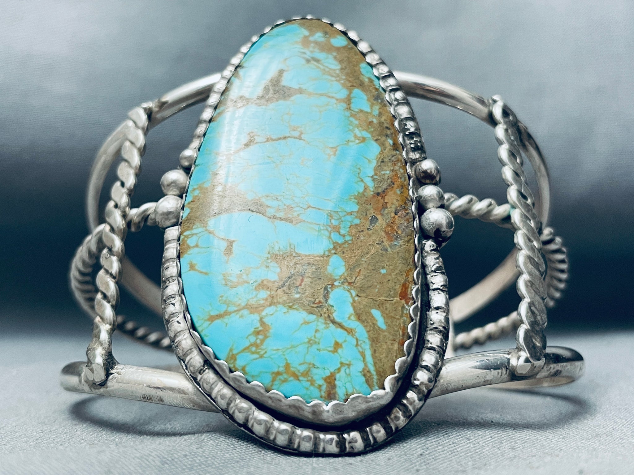 Towering Vintage Native American Navajo Easter Blue Turquoise Sterling Silver Bracelet