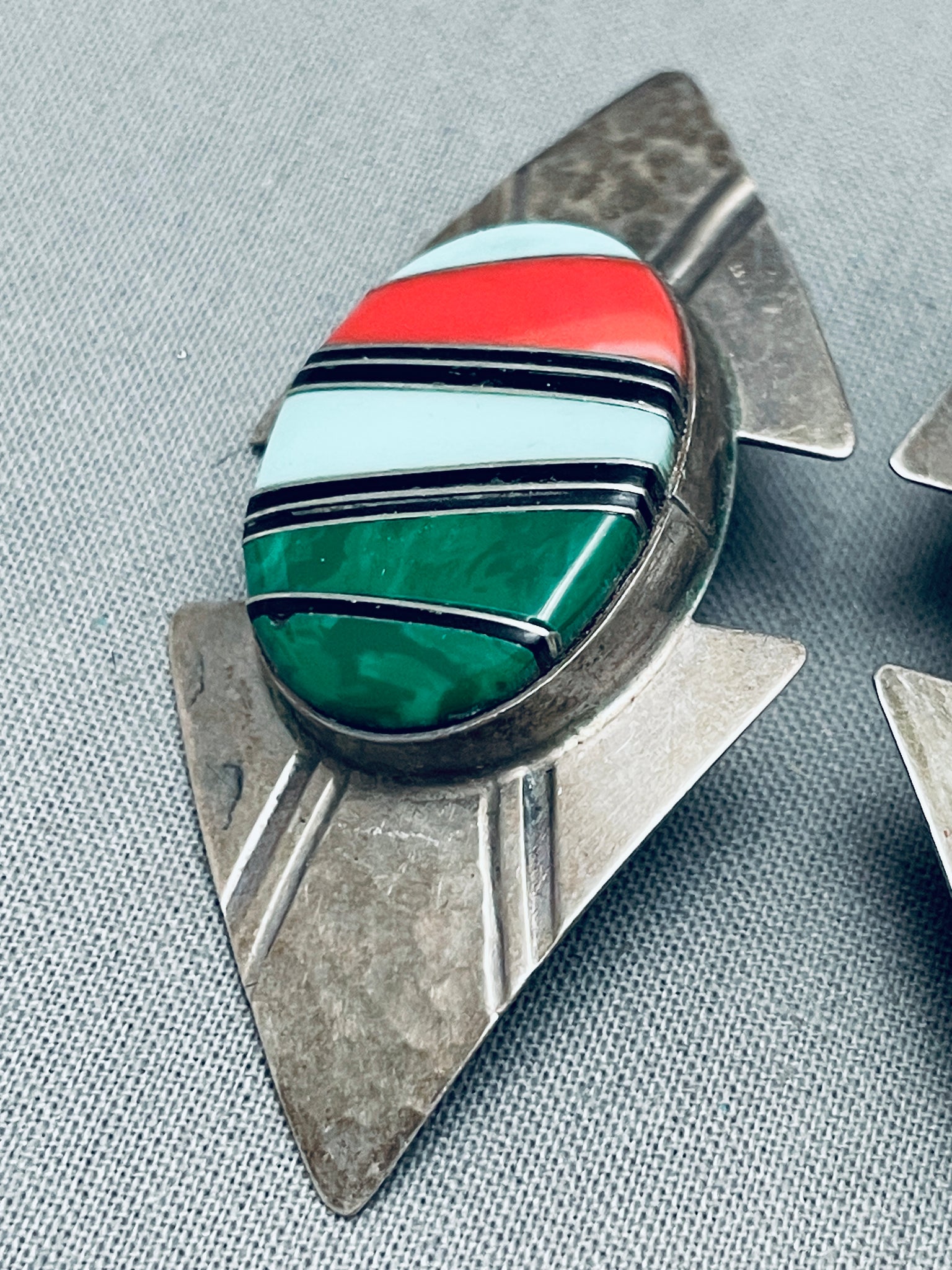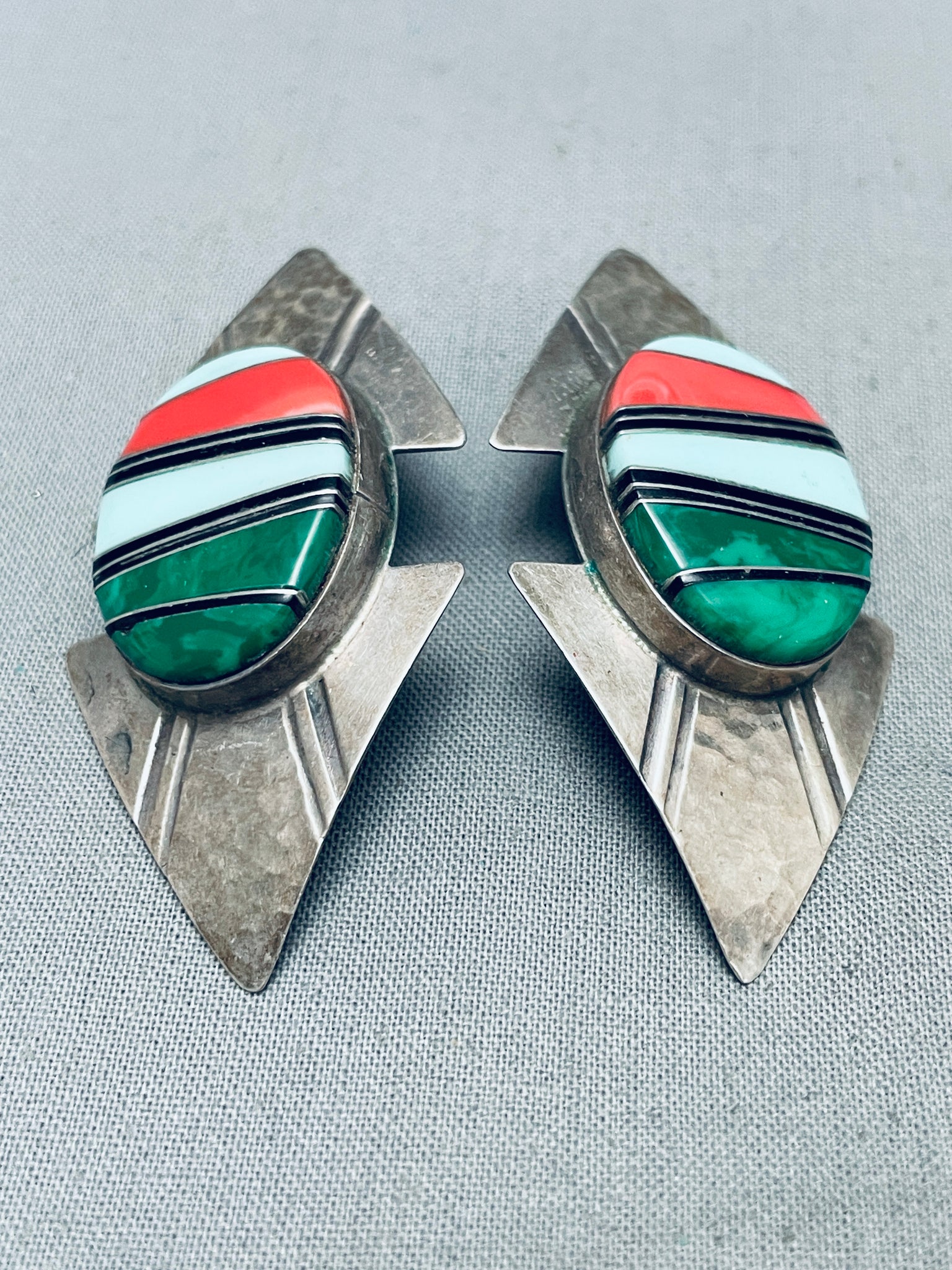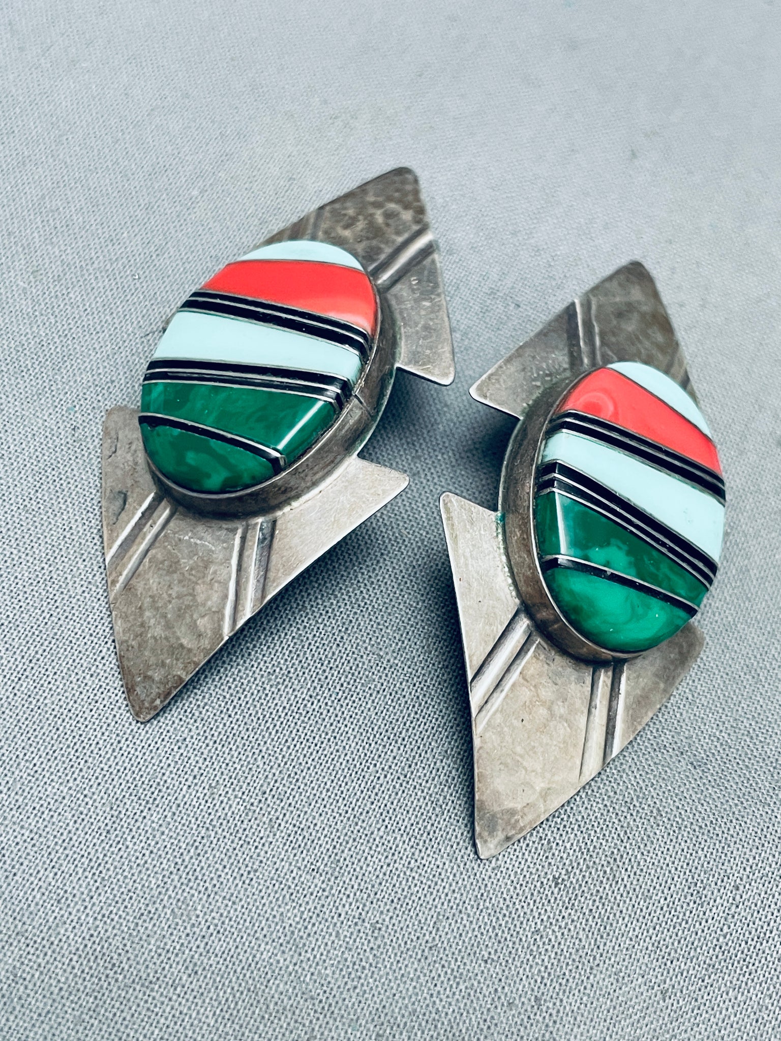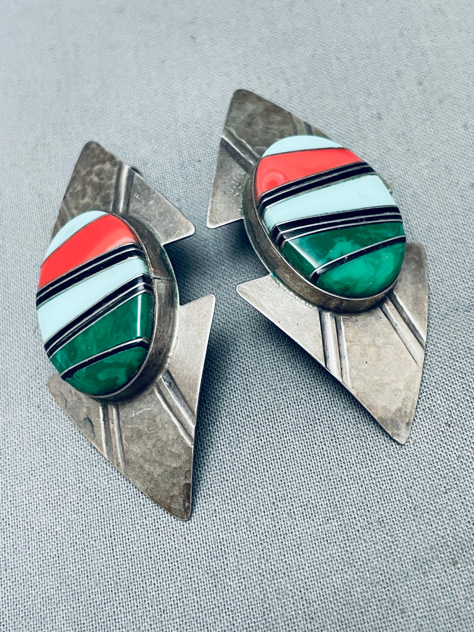 The Best Vintage Native American Navajo Malachite Inlay Sterling Silver Earrings