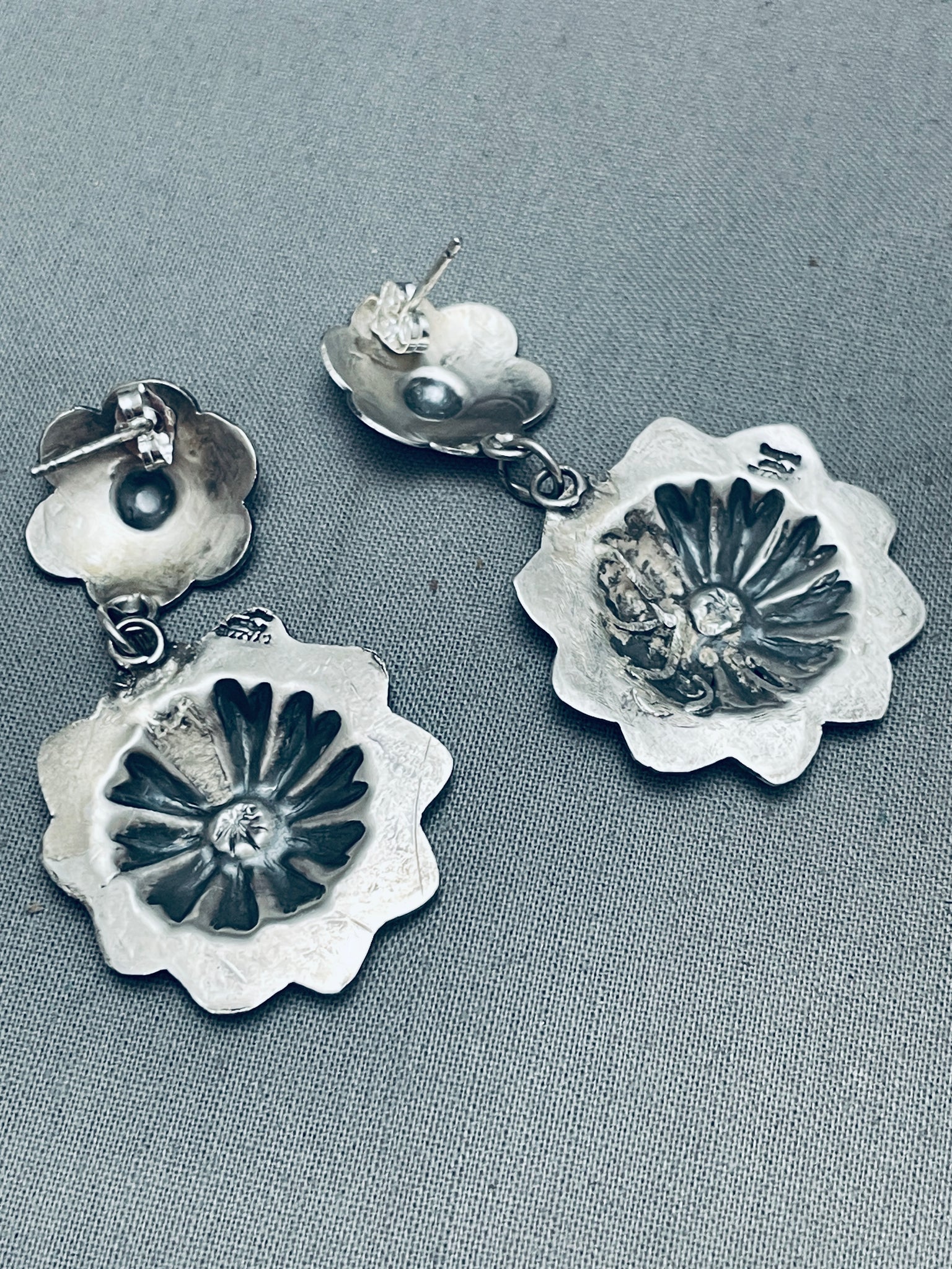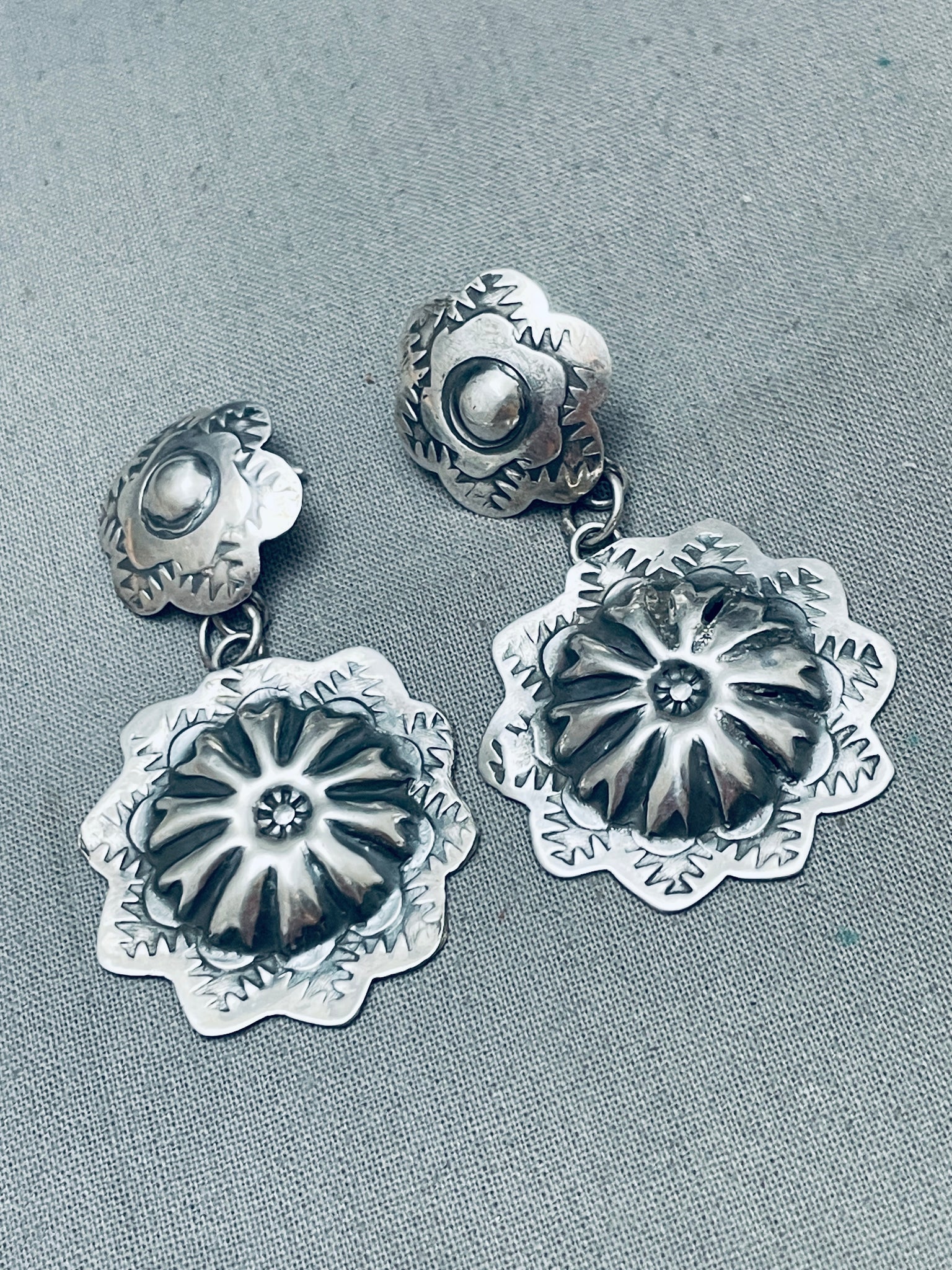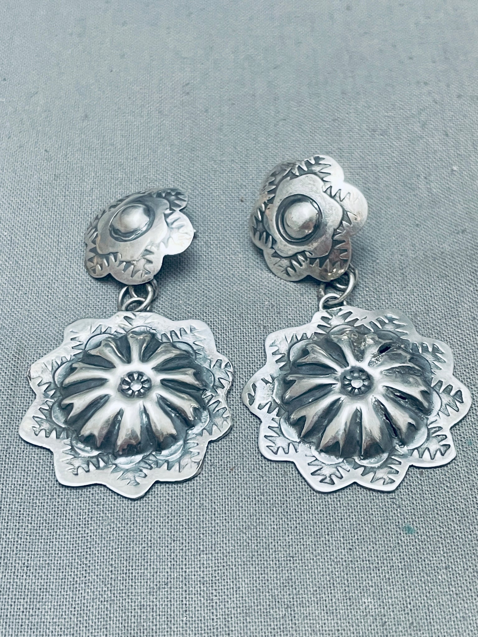 Yazzie Hand Tooled Vintage Native American Navajo Sterling Silver Earrings