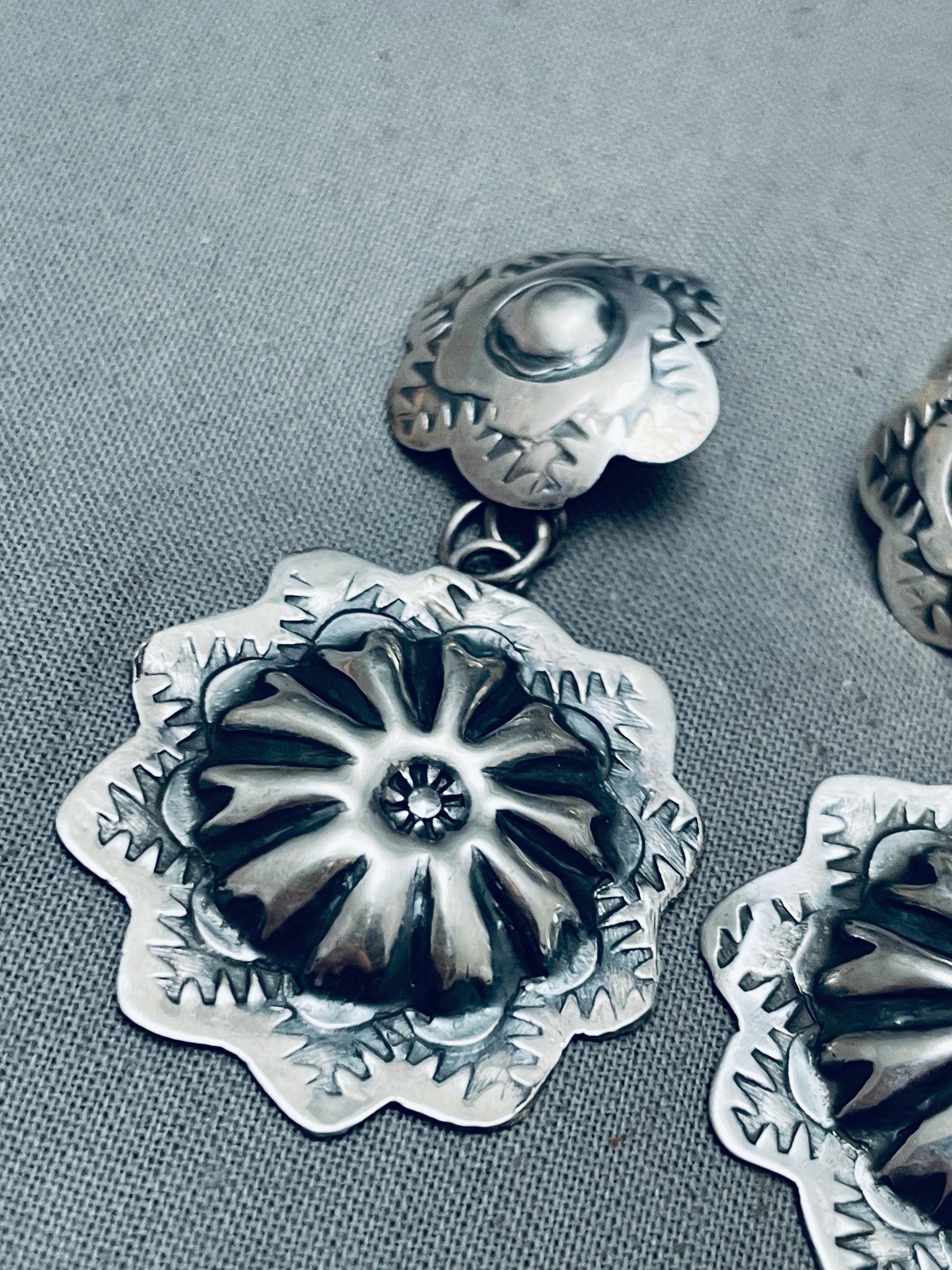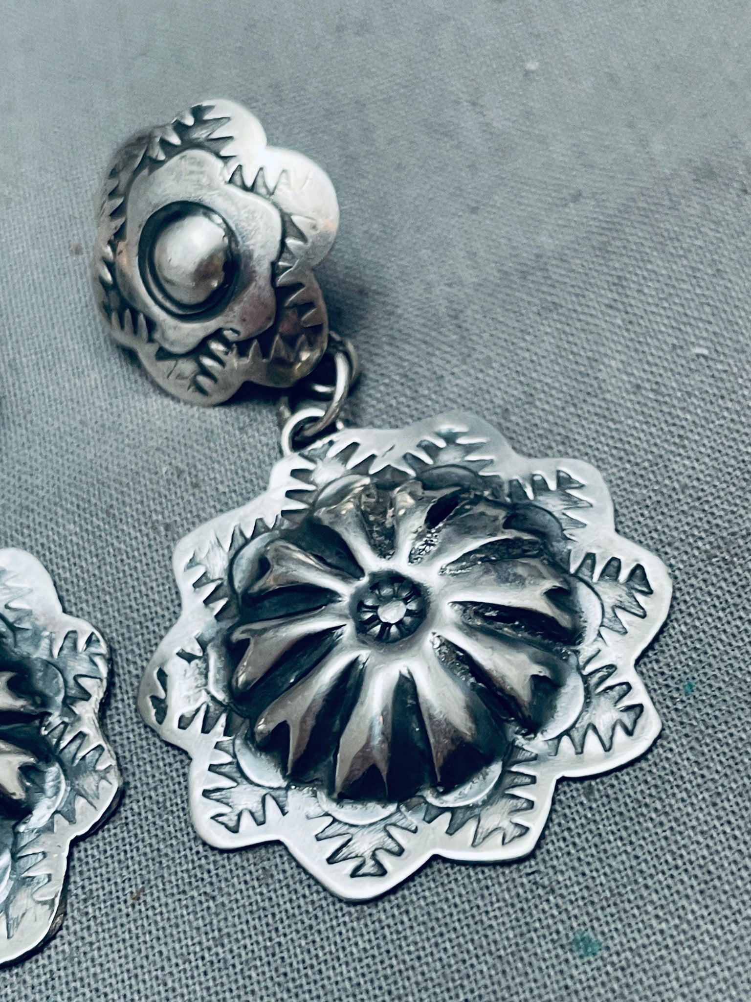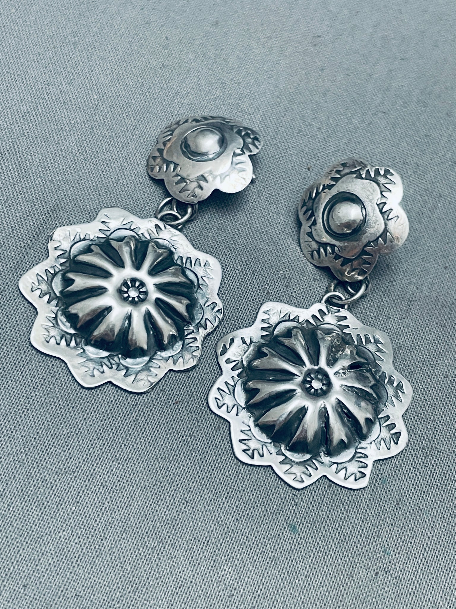 Yazzie Hand Tooled Vintage Native American Navajo Sterling Silver Earrings