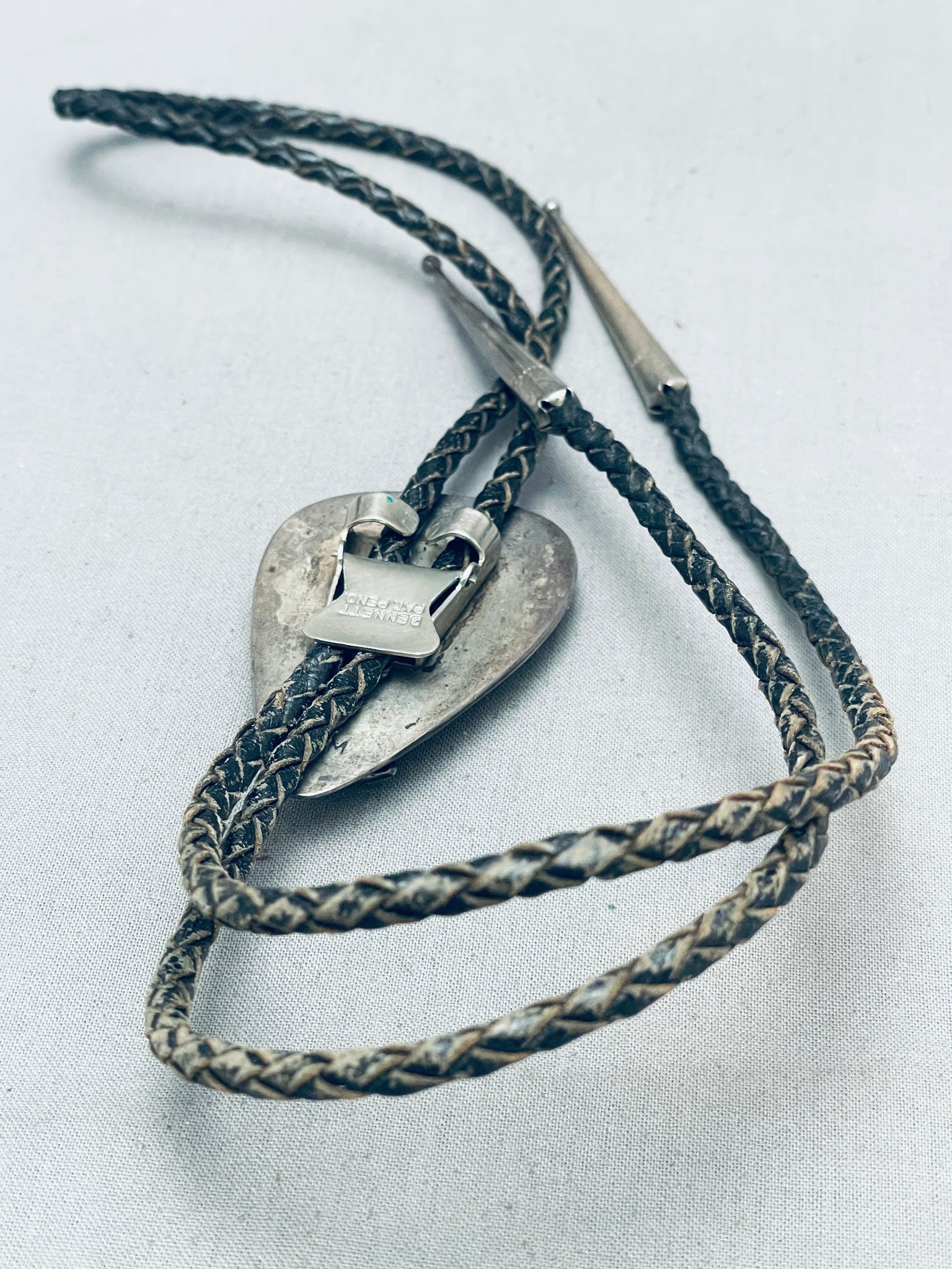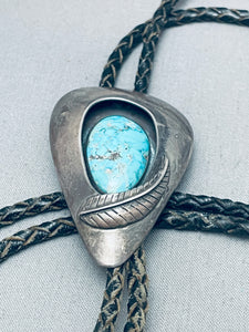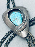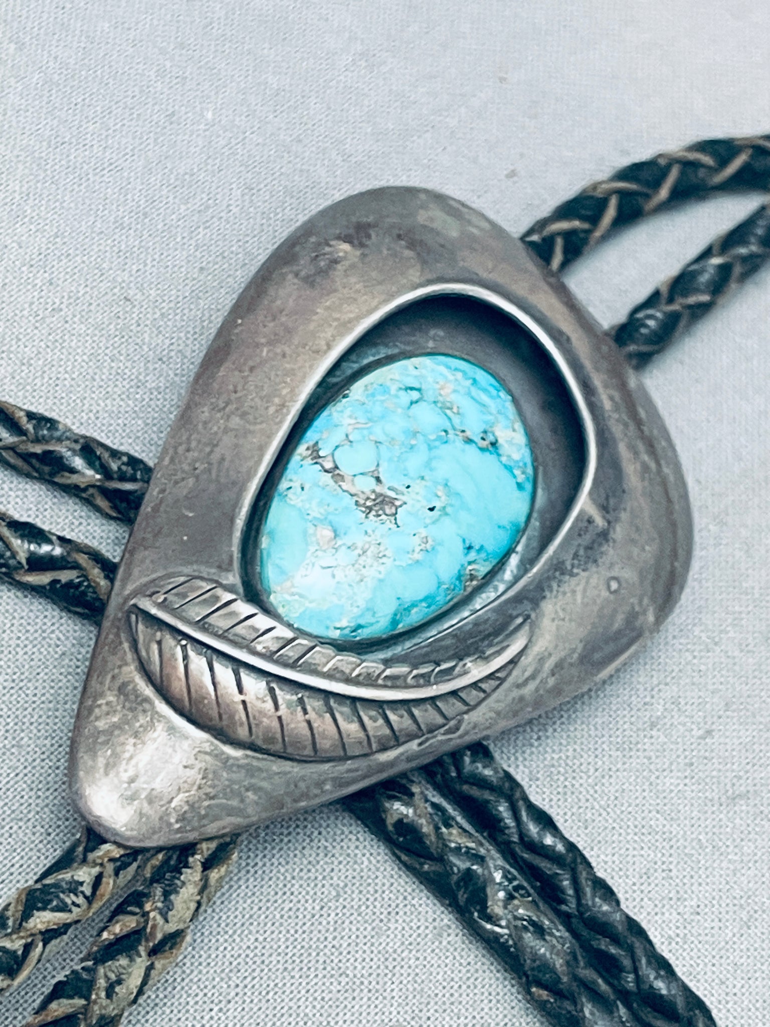Mesmerizing Vintage Native American Navajo Old Kingman Turquoise Sterling Silver Bolo Tie