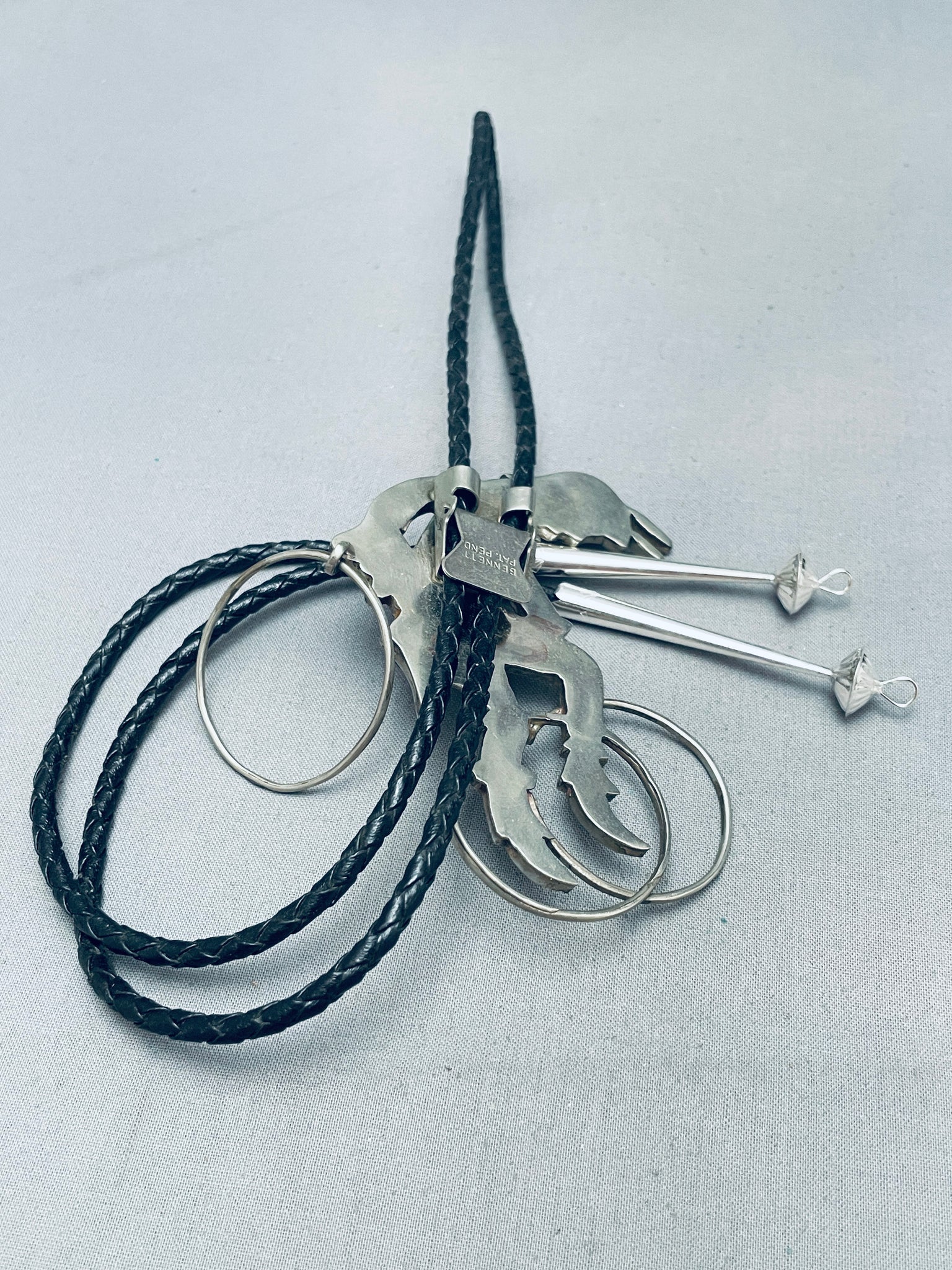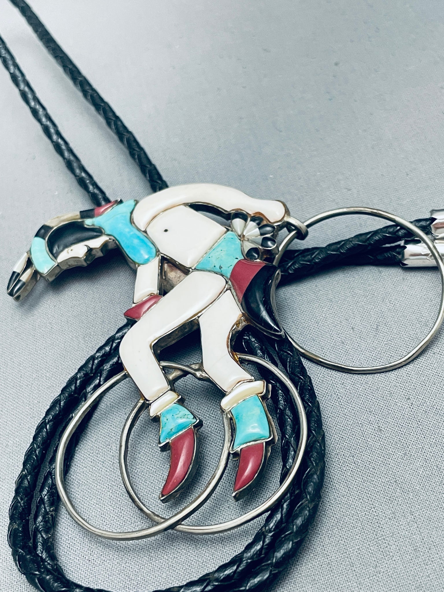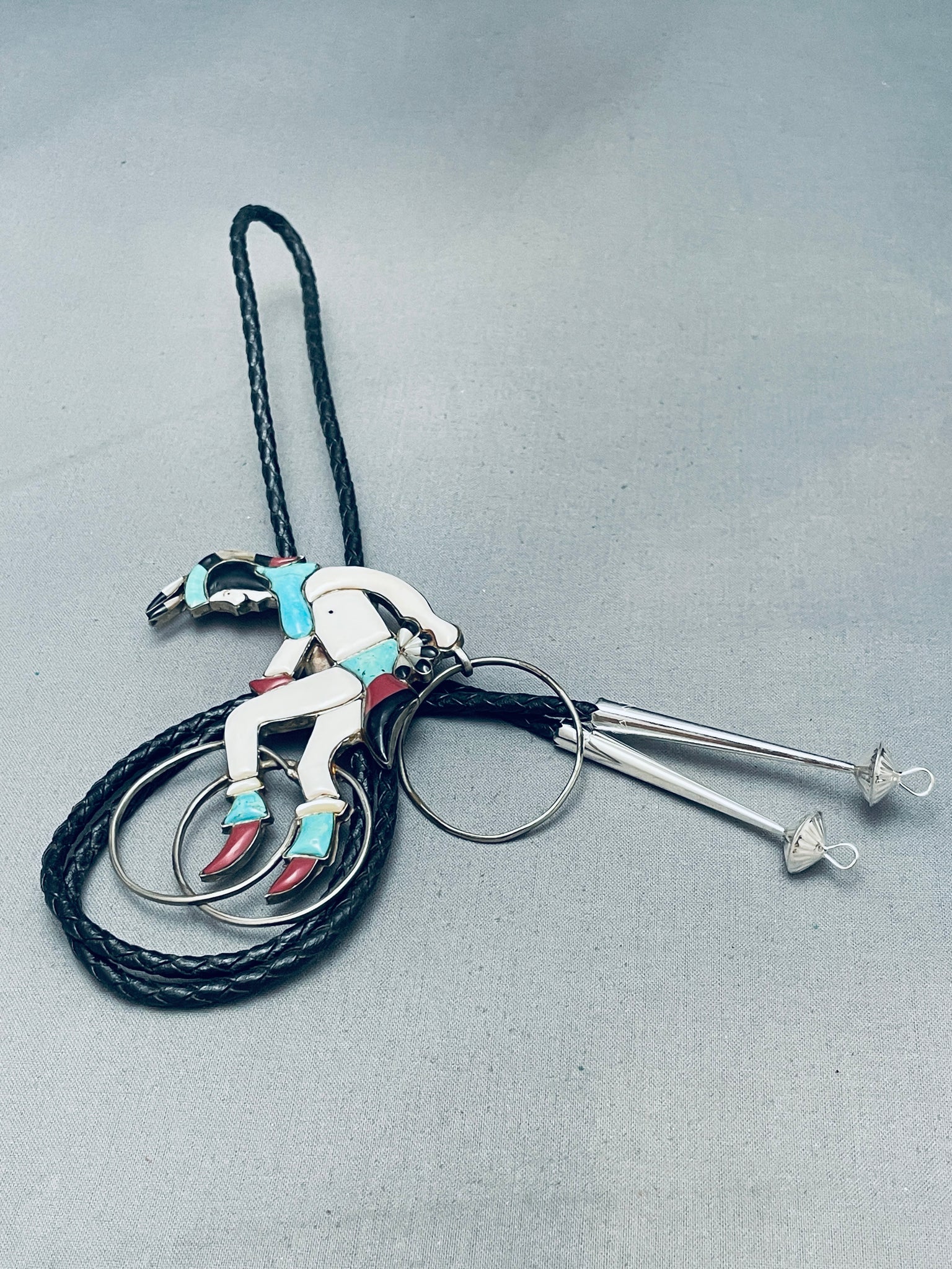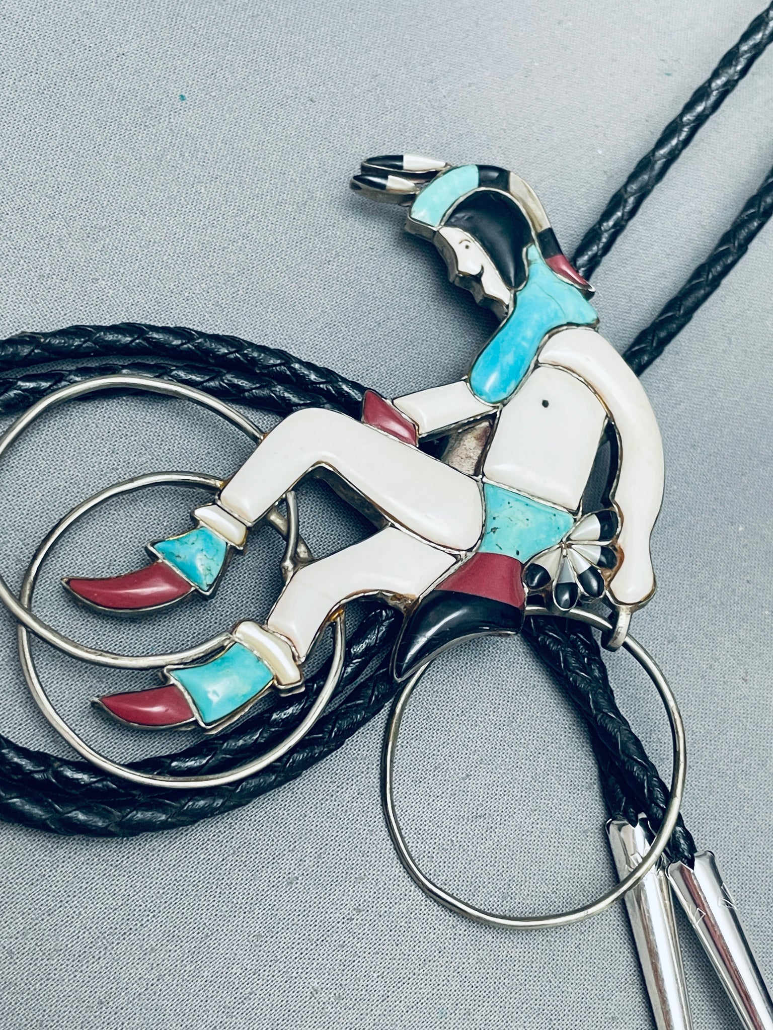 Rare Older Vintage Native American Zuni Dancer Turquoise Sterling Silver Bolo Tie