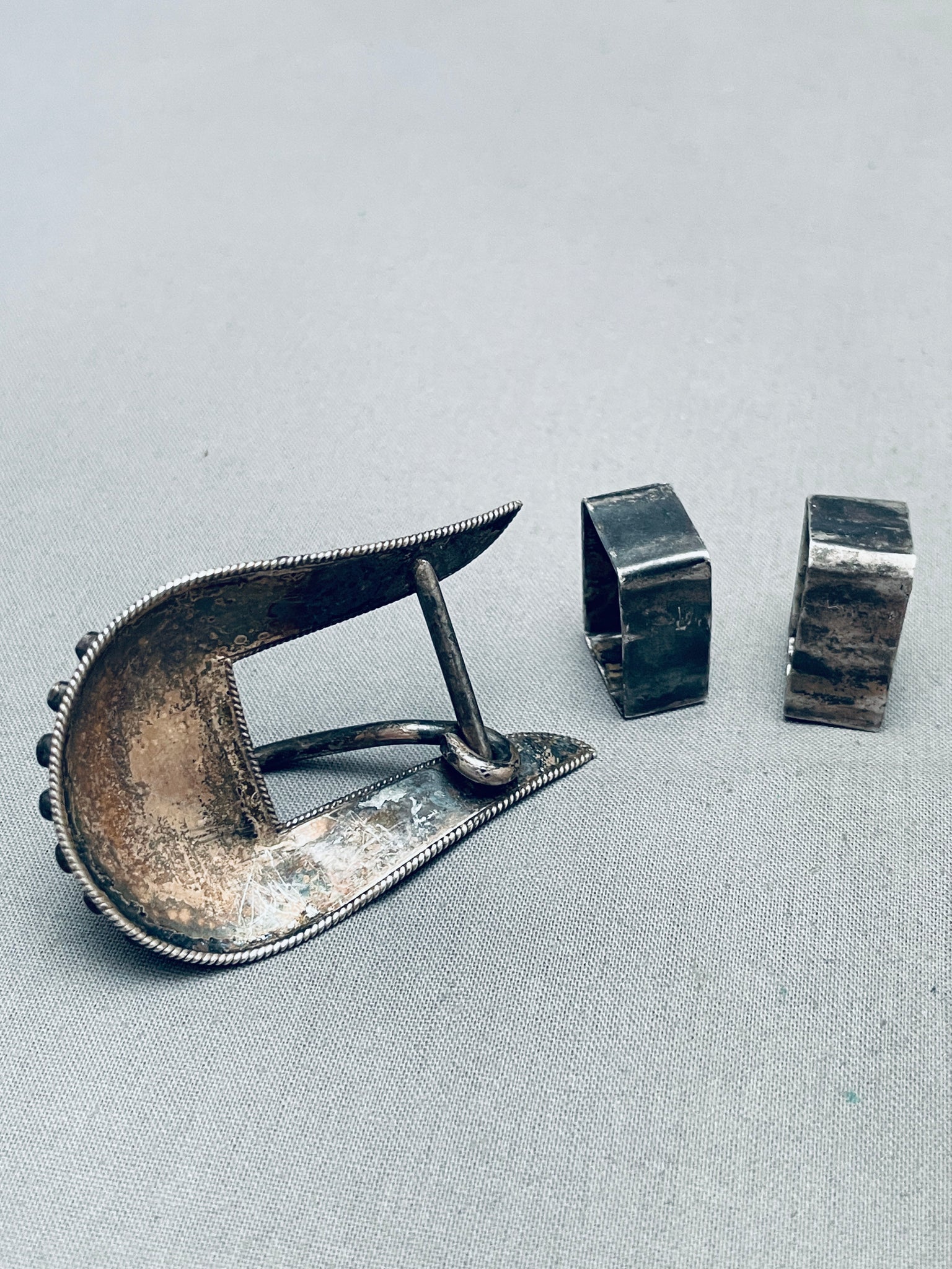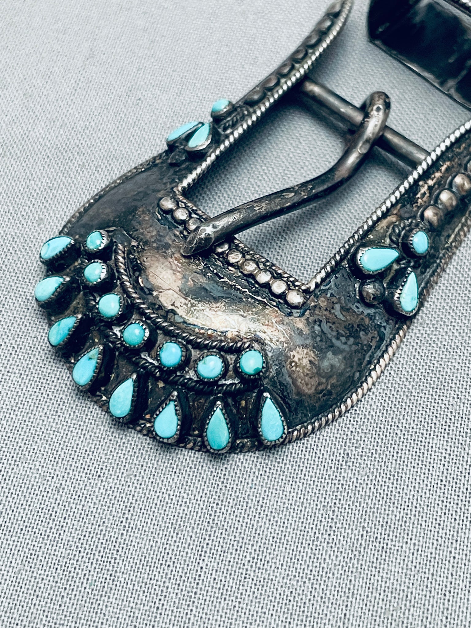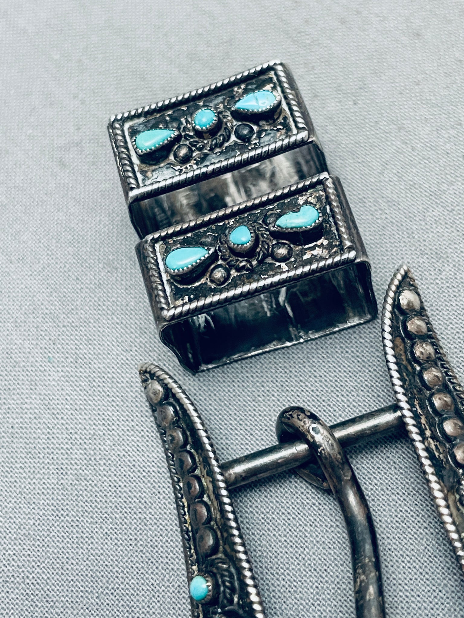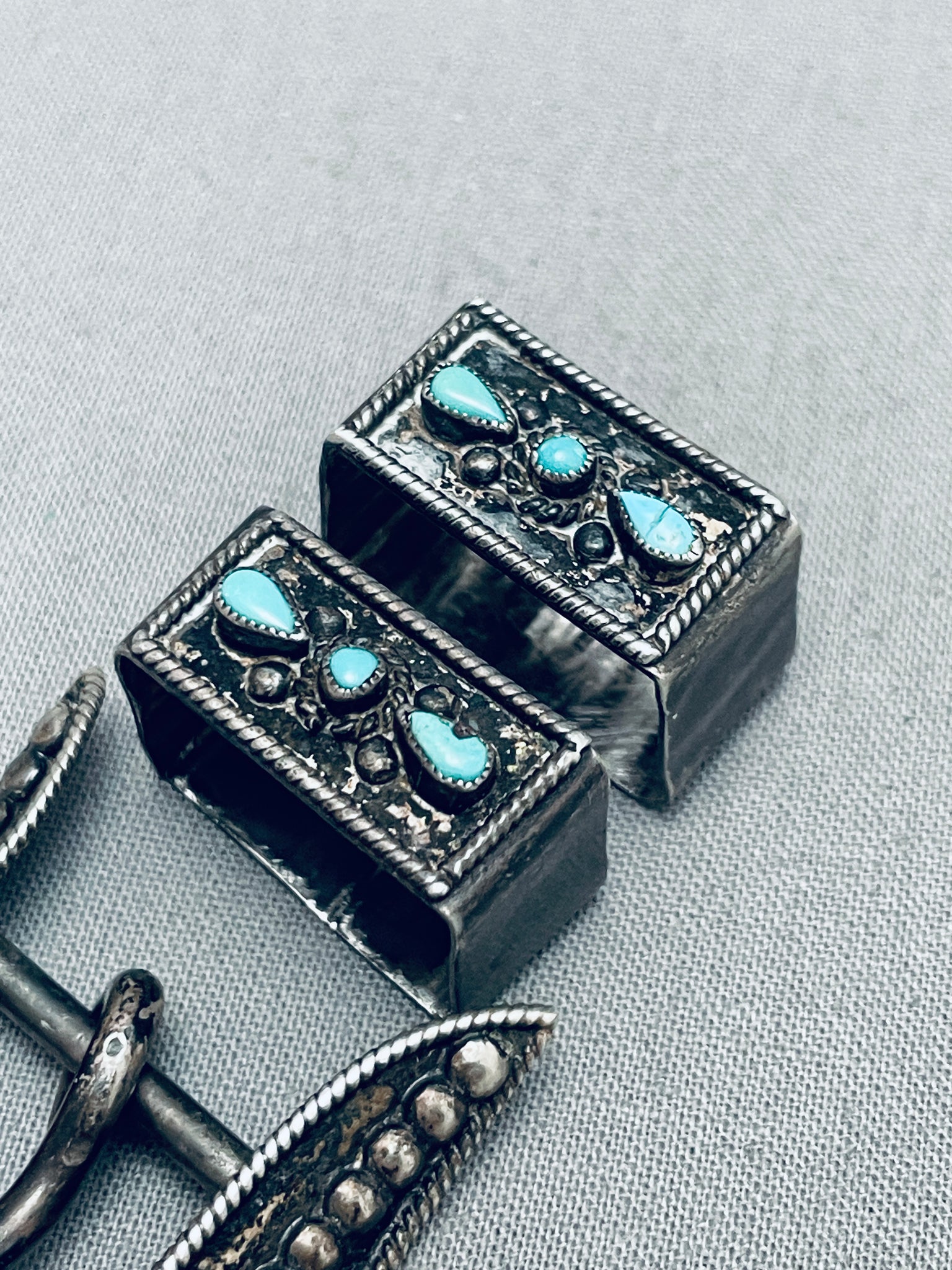 Rare Early Vintage Navajo Turquoise Sterling Silver Ranger Buckle Set Old