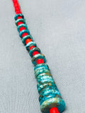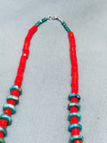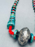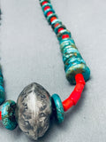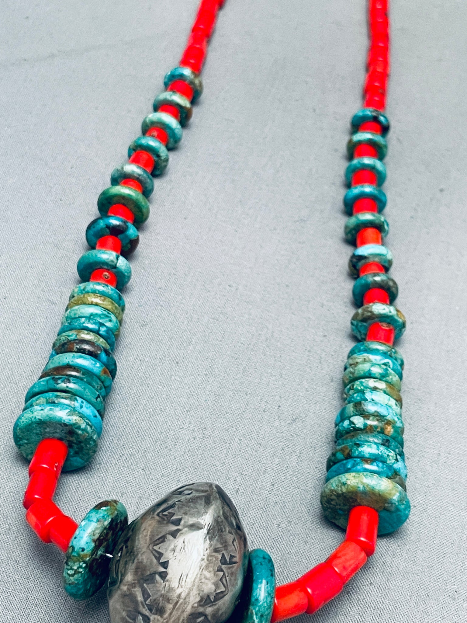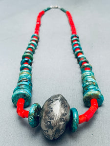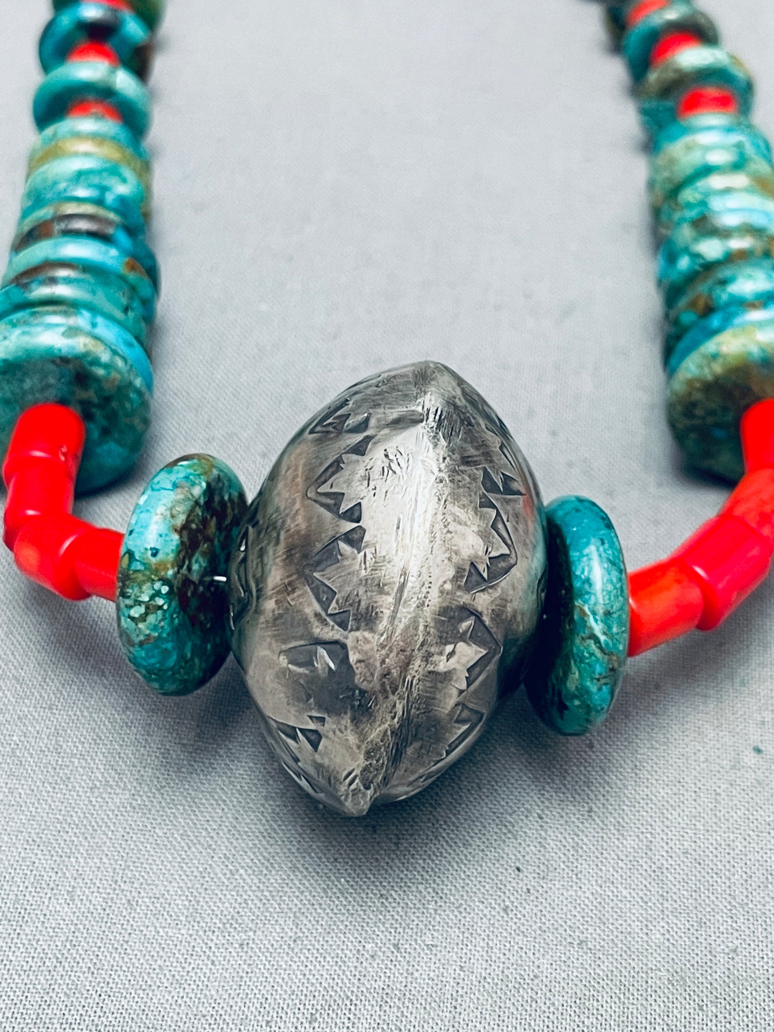 106 Grams Huge Sterling Silver Ball Native American Navajo Turquoise Coral Necklace