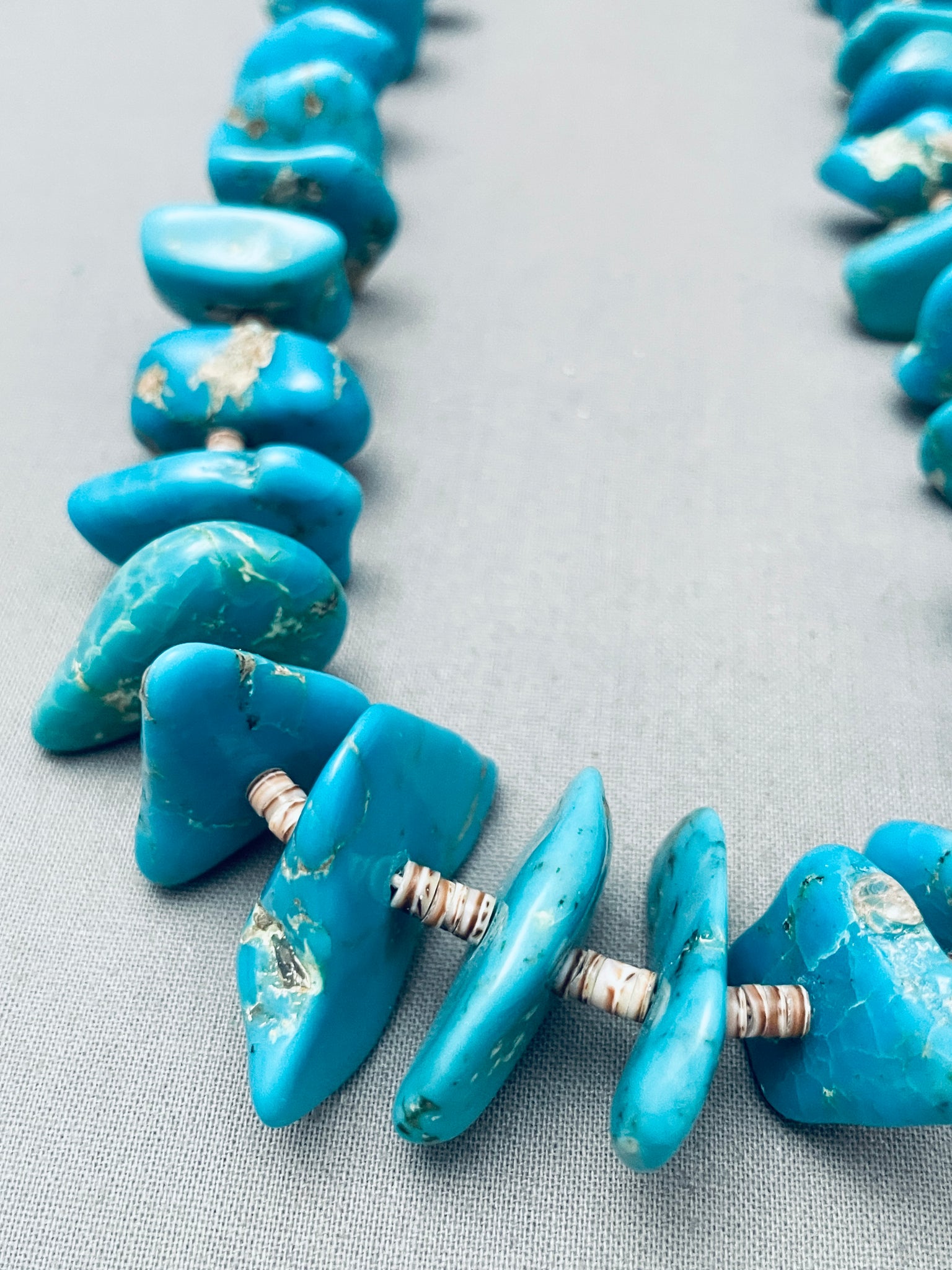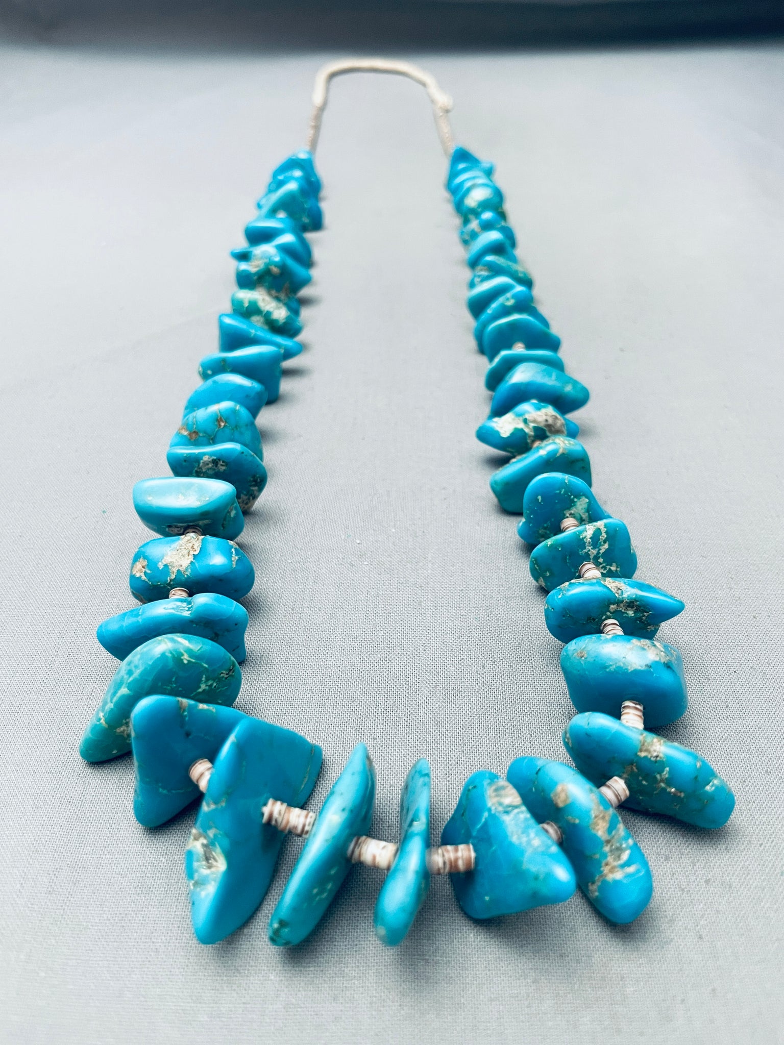 145 Grams Heavy Turquoise Nugget Vintage Native American Navajo Heishi Necklace Old