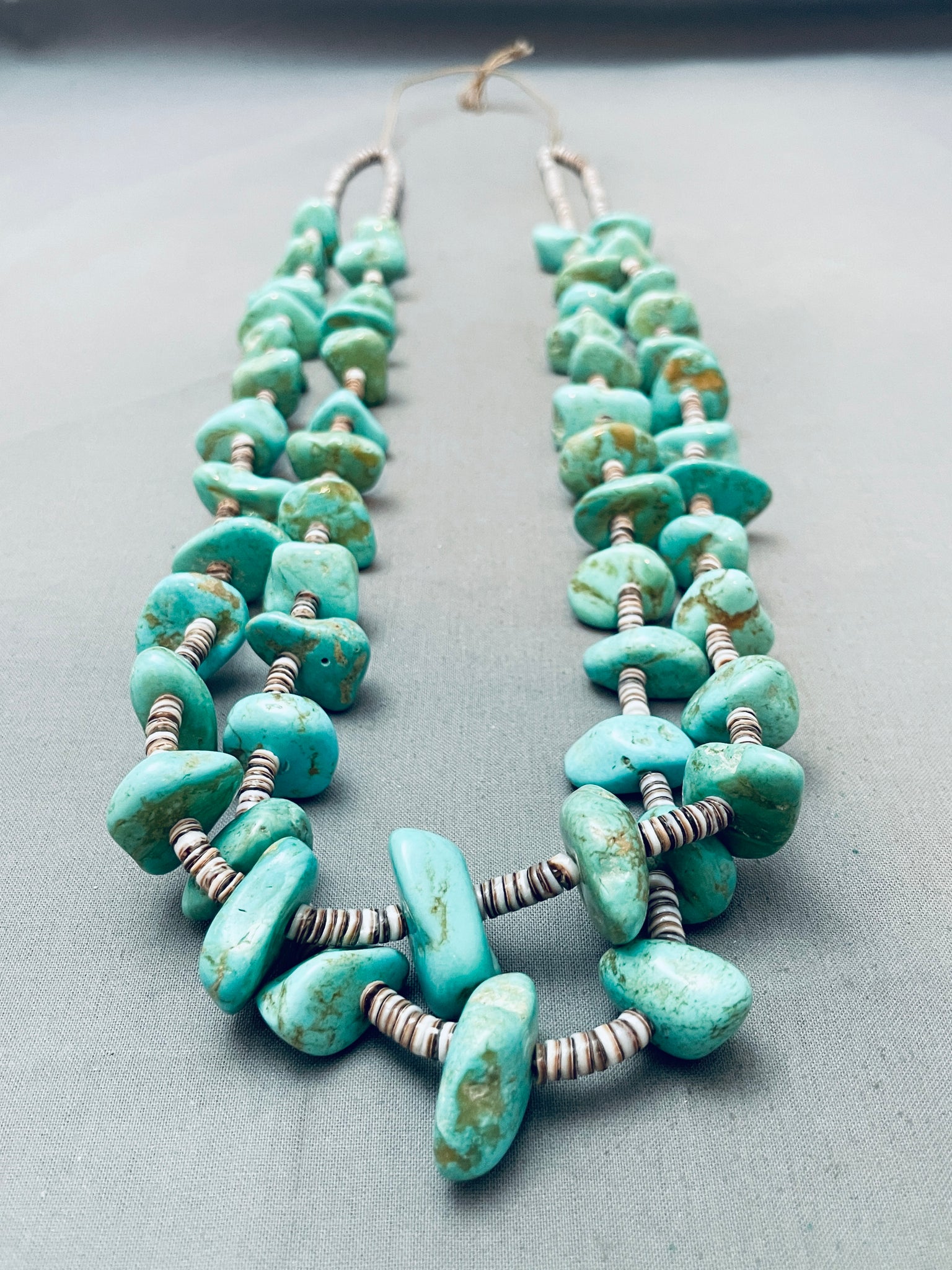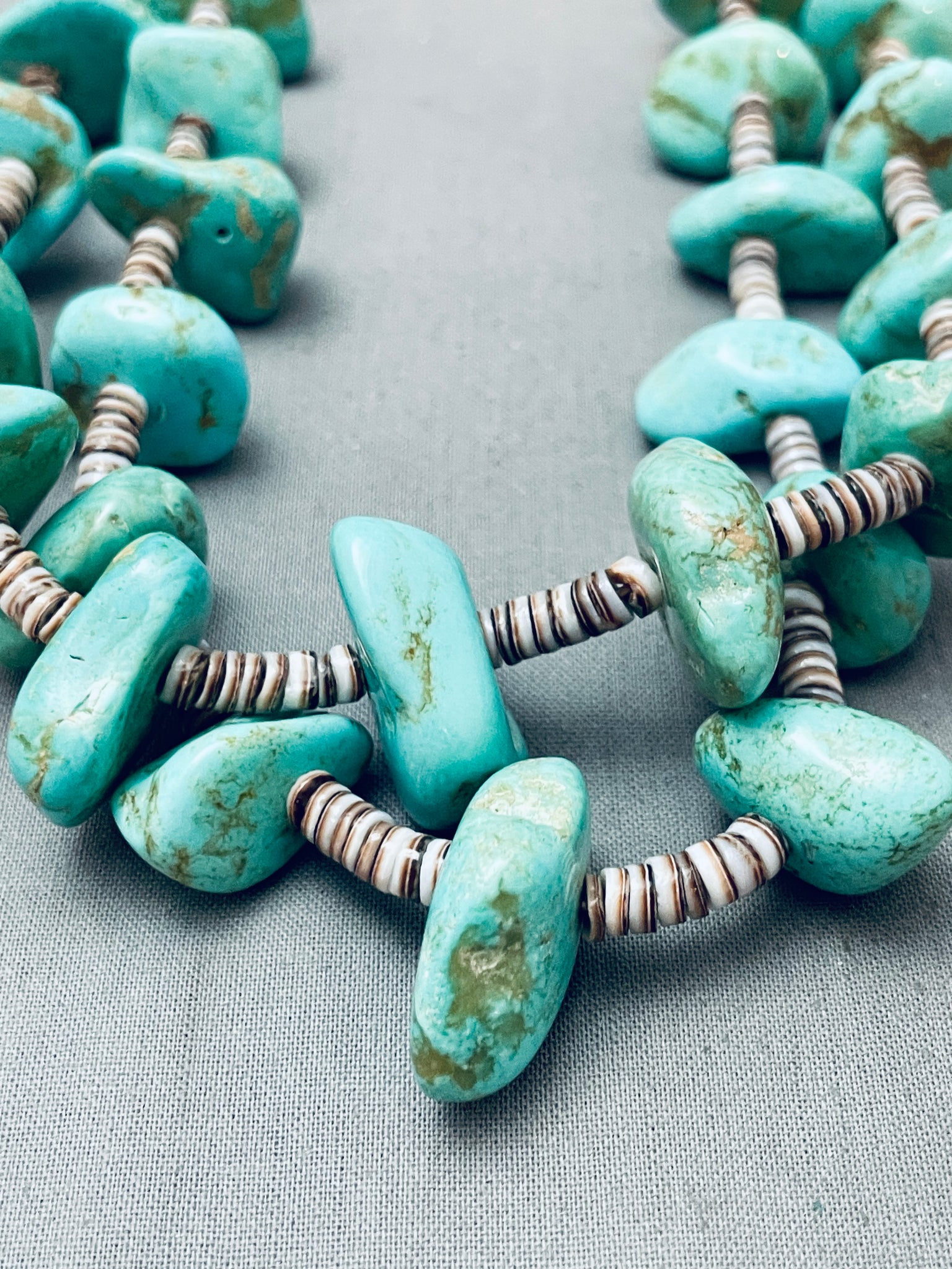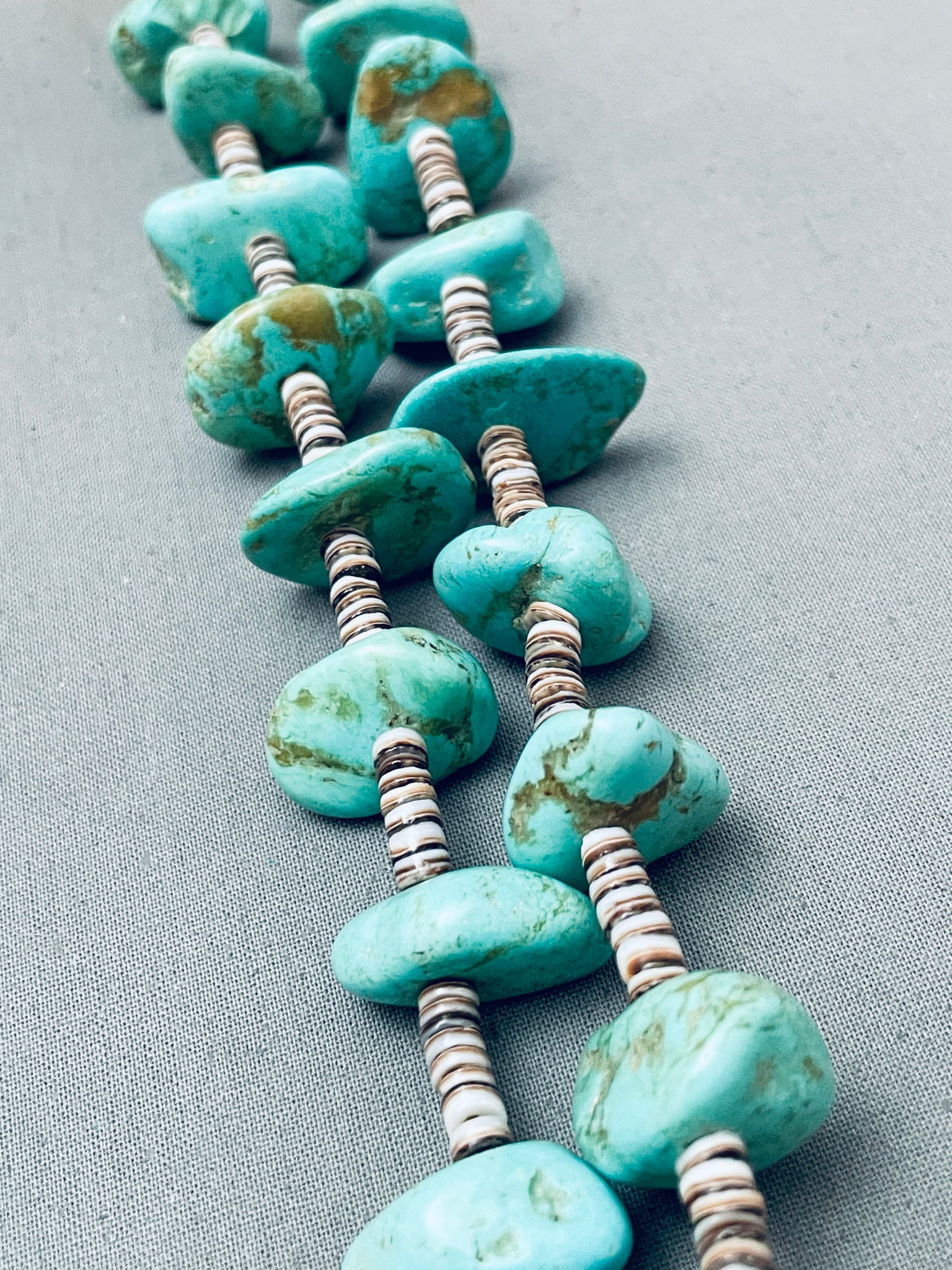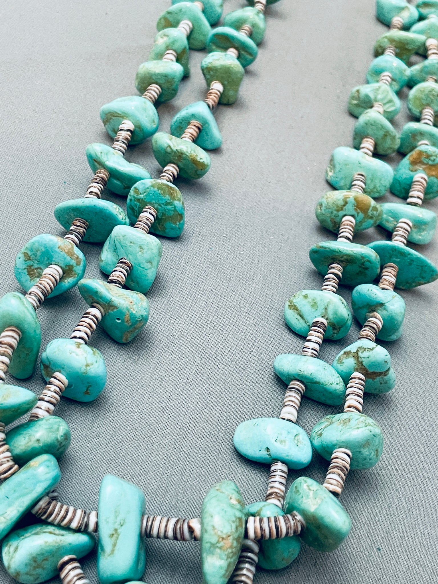 206 Grams Vintage Native American Navajo Green Turquoise Heishi Necklace Old
