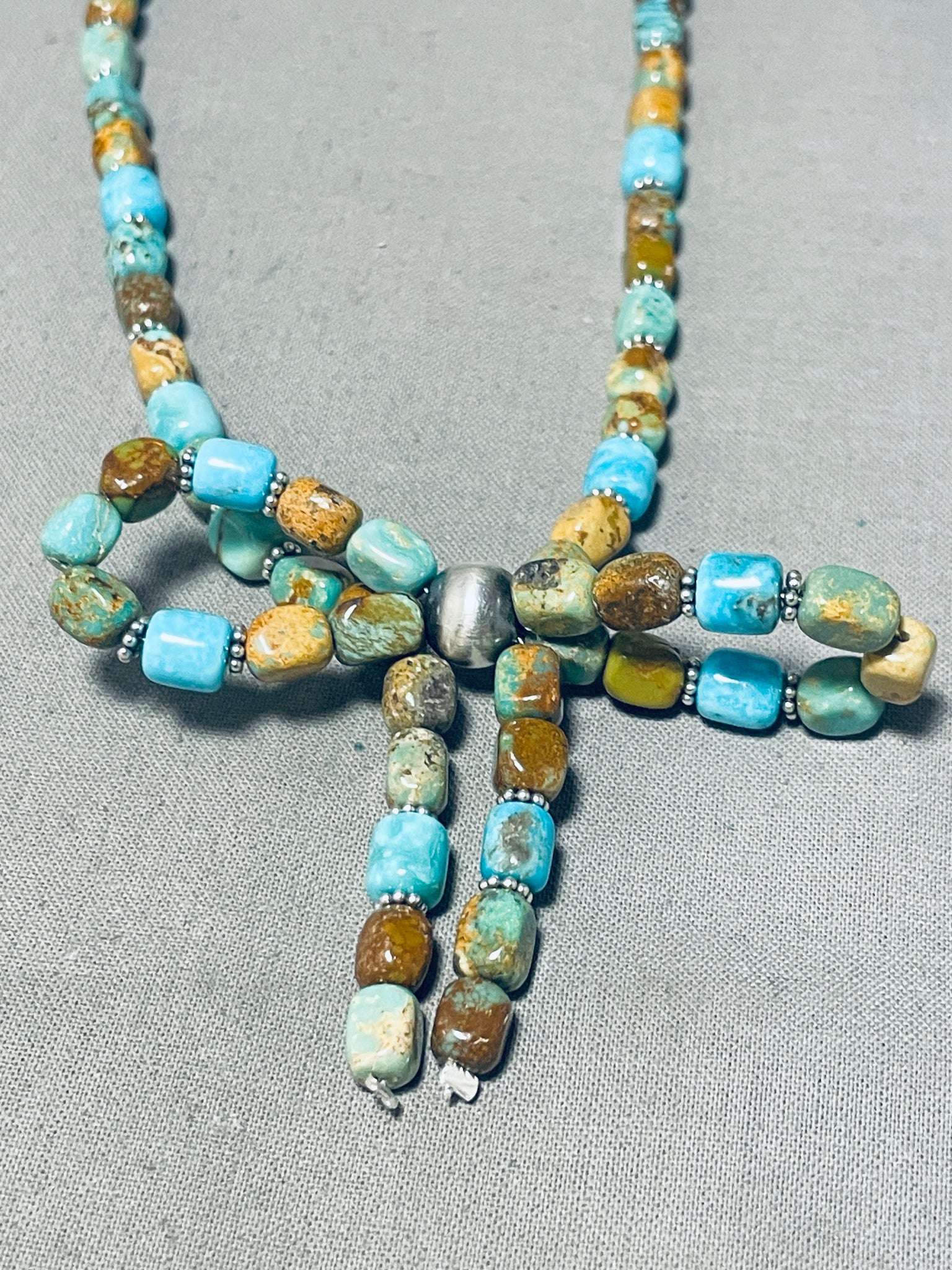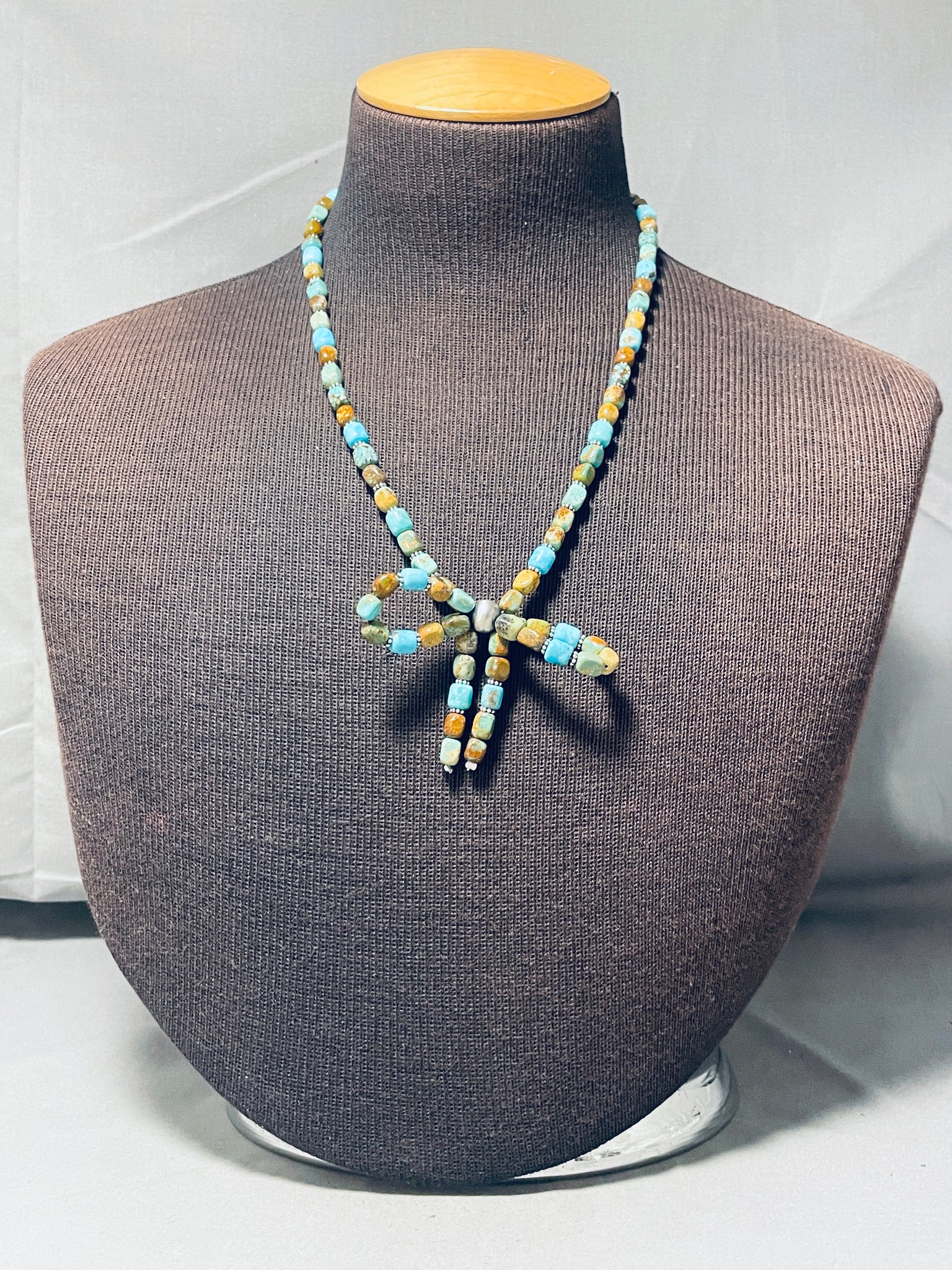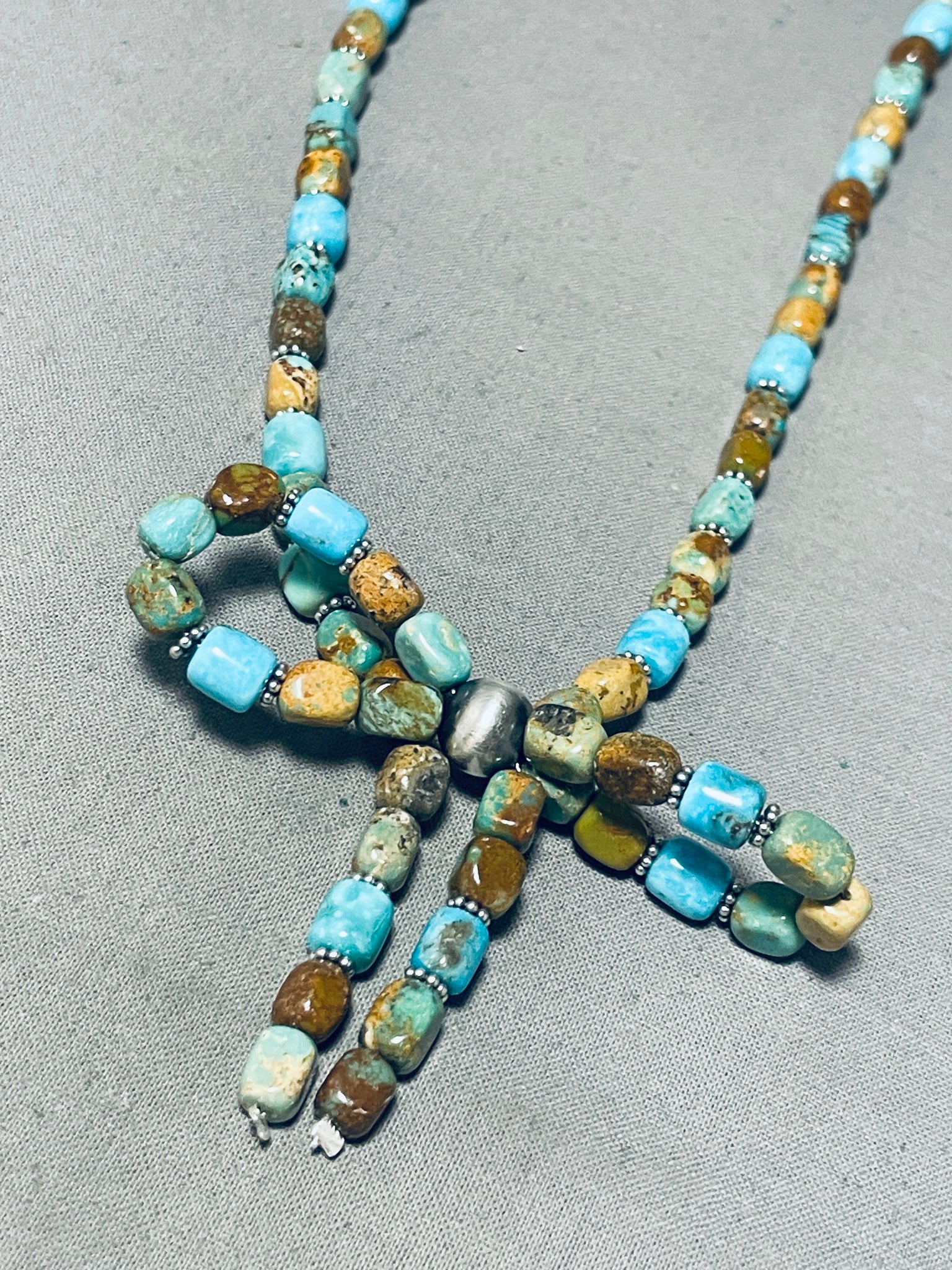 Bow Of Turquoise Native American Navajo Sterling Silver Necklace