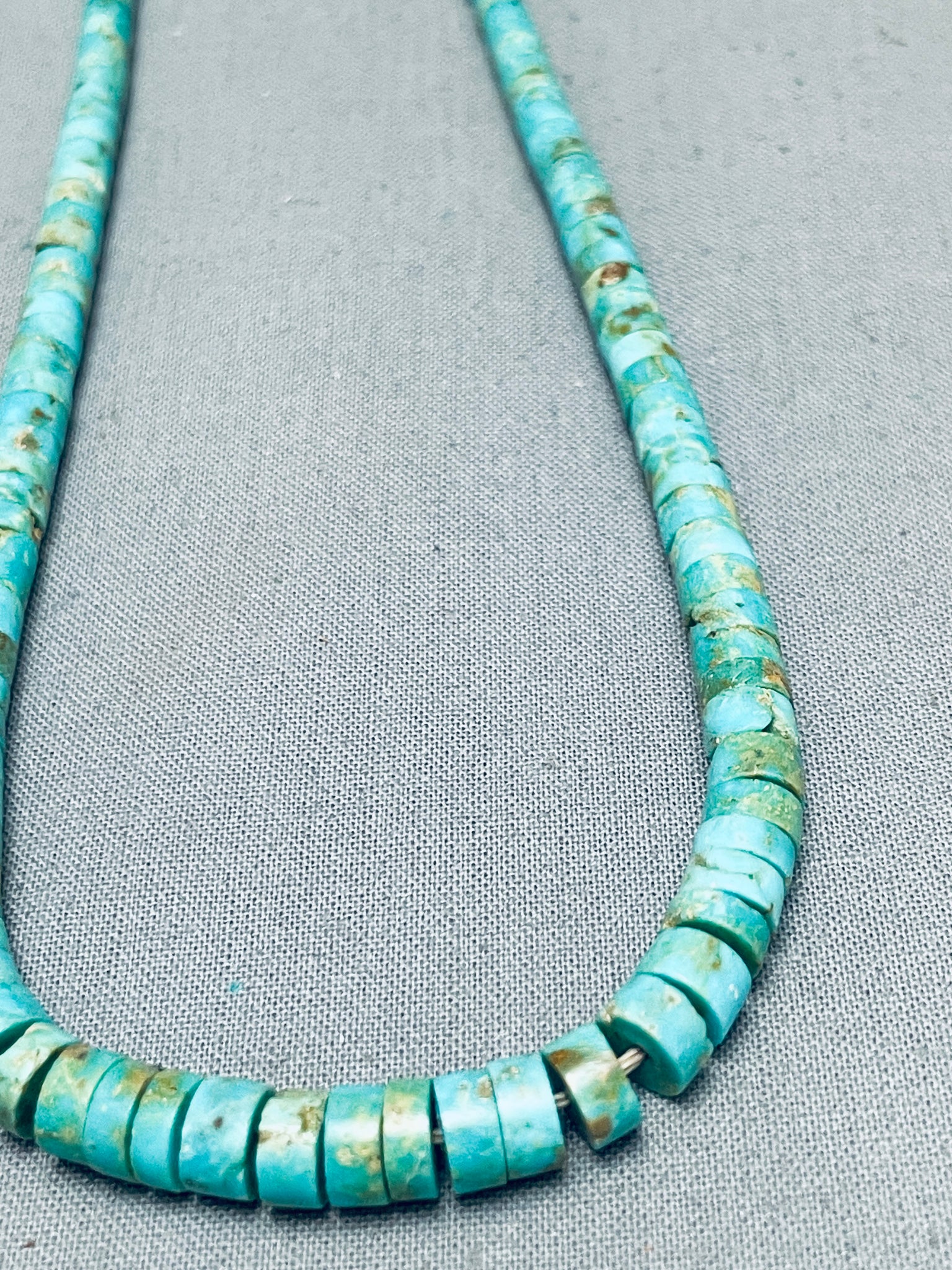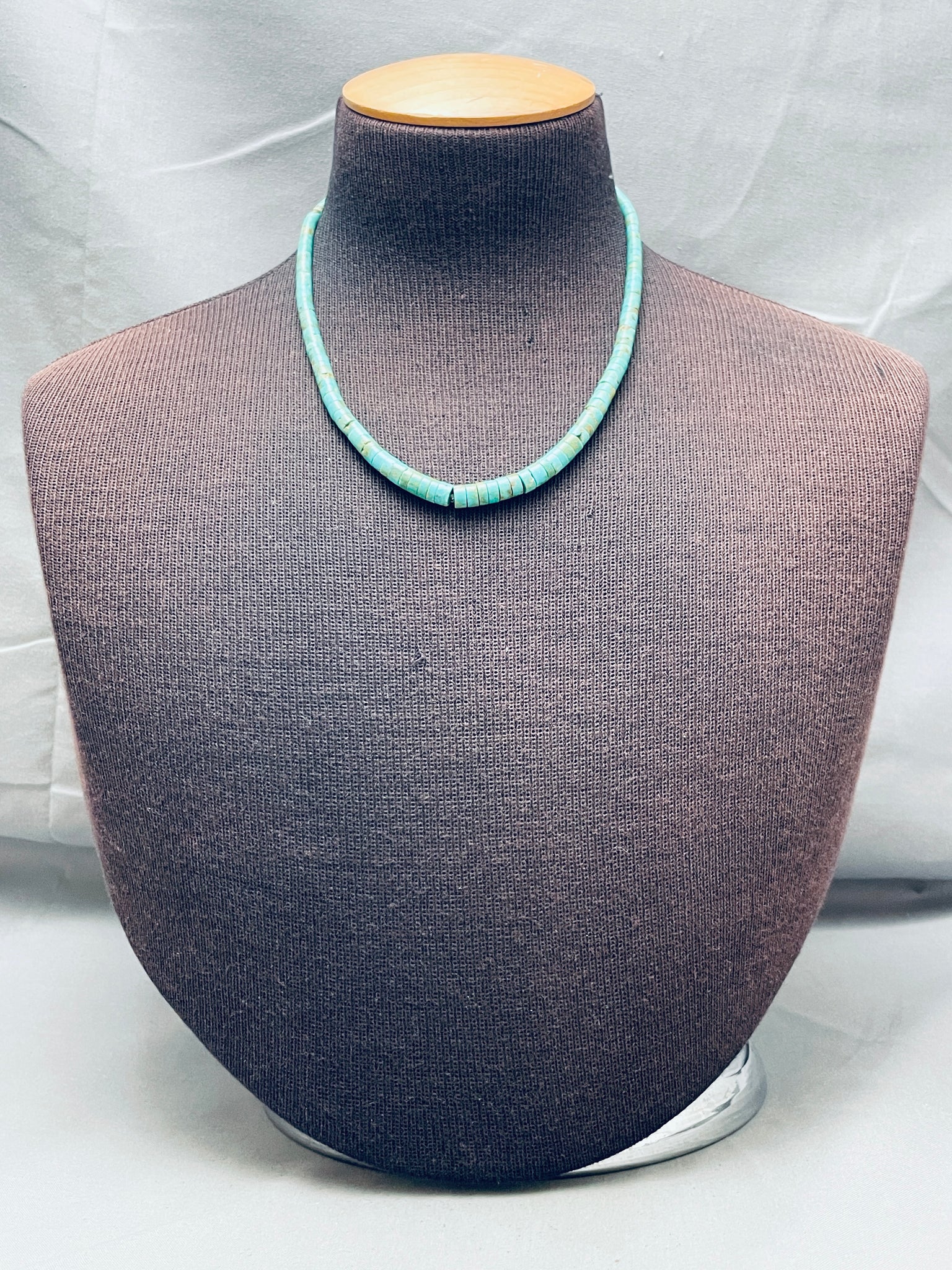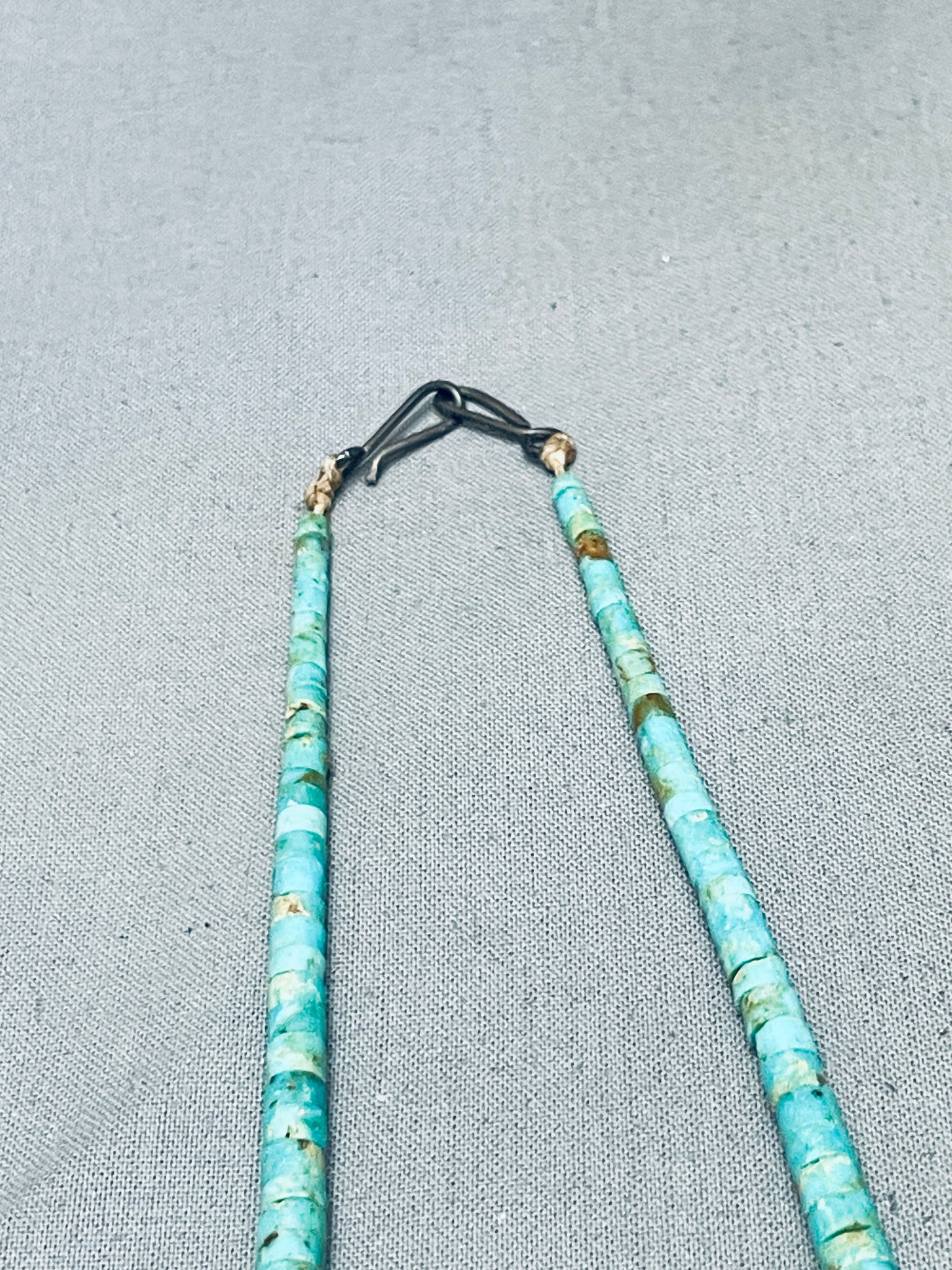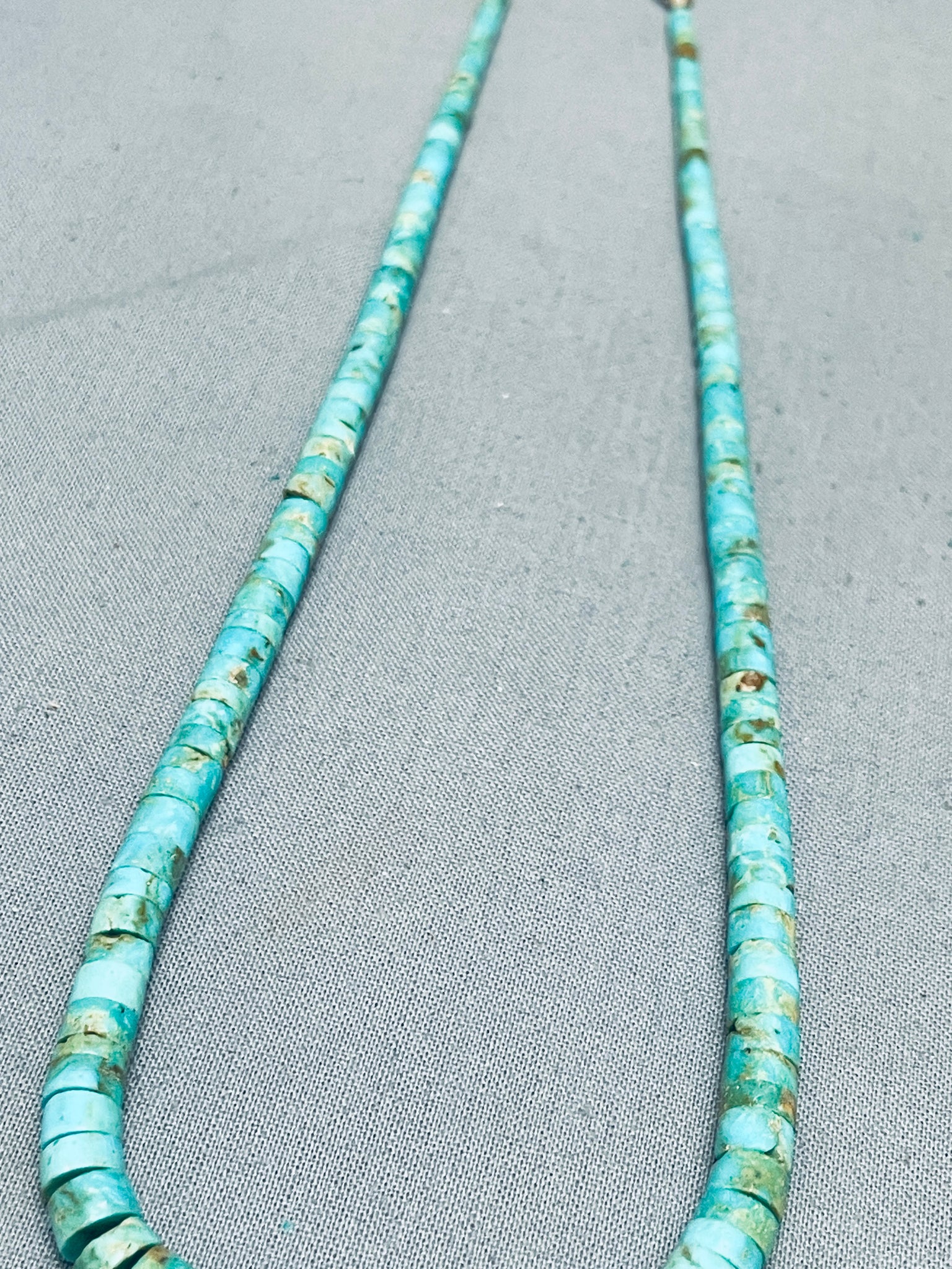 Early 1900;s Vintage Native American Navajo Graduating Turquoise Heishi Sterling Silver Necklace