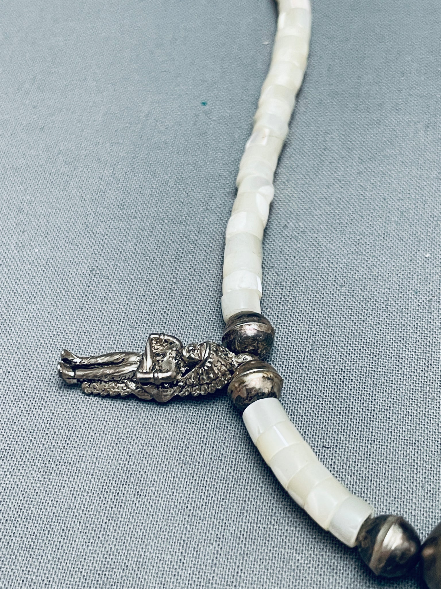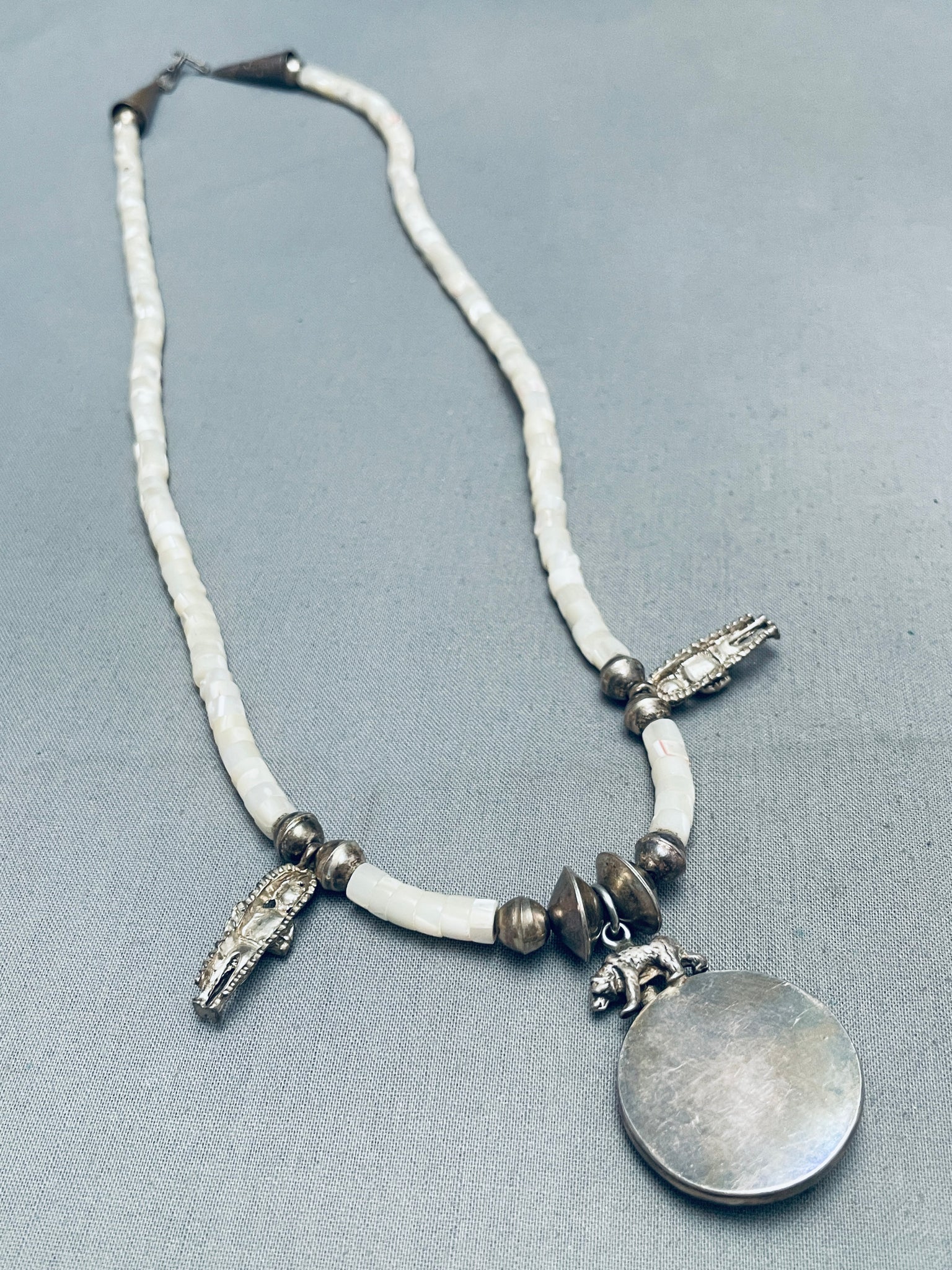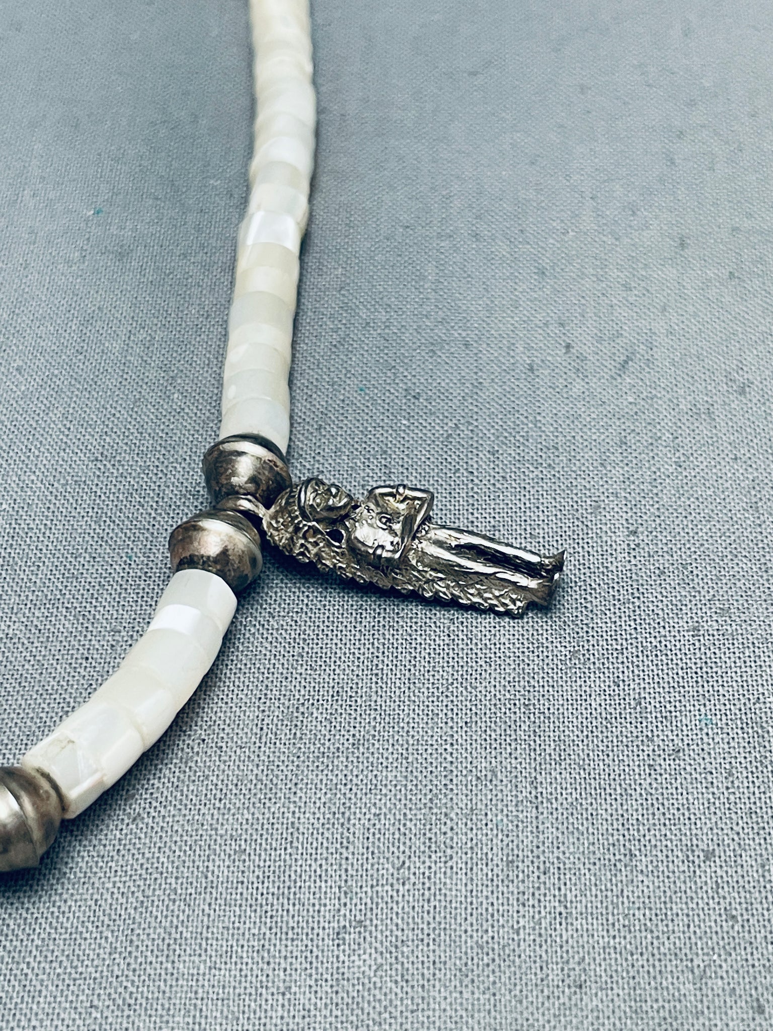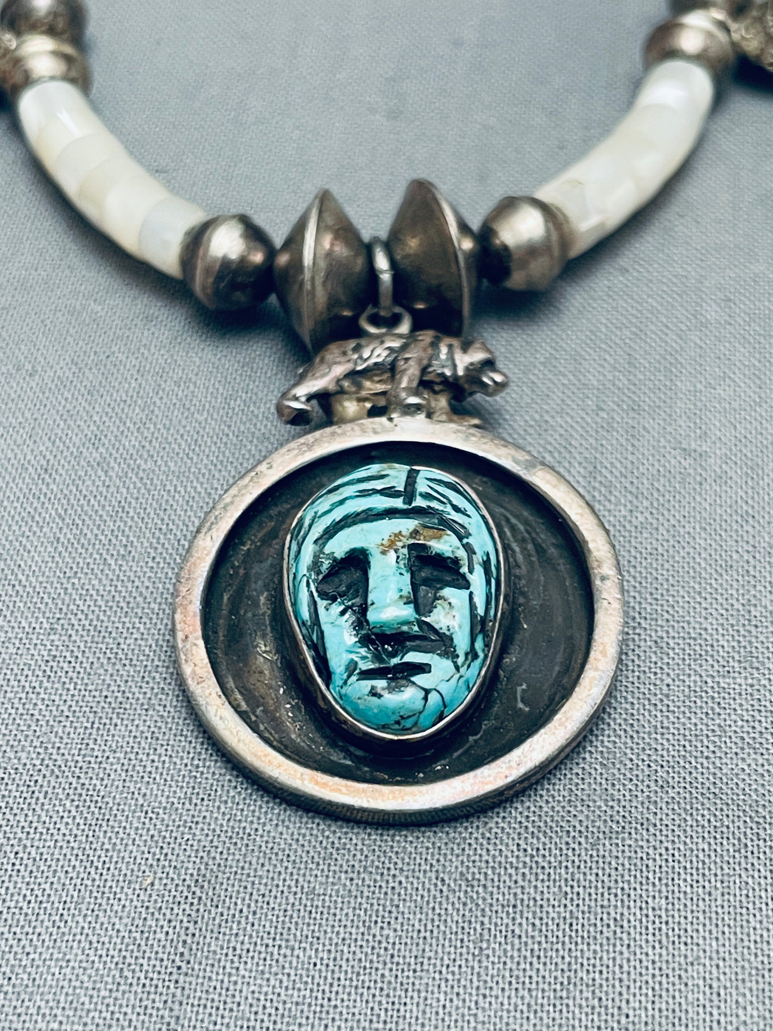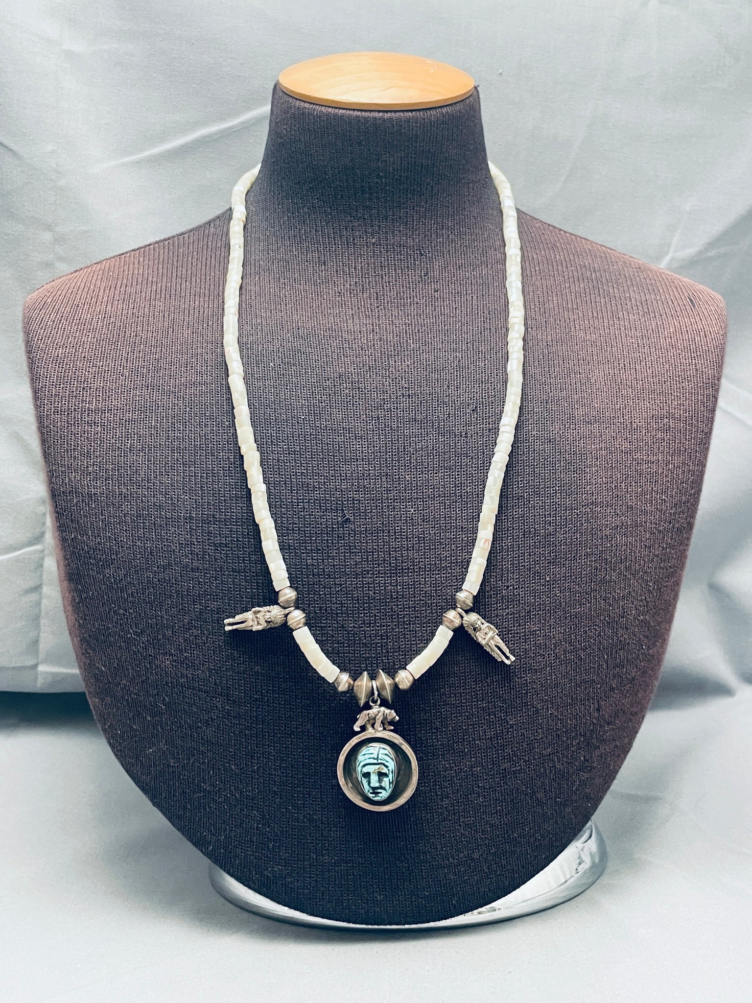 Hand Carved Indian Head Vintage Navajo Sterling Silver Necklace Old