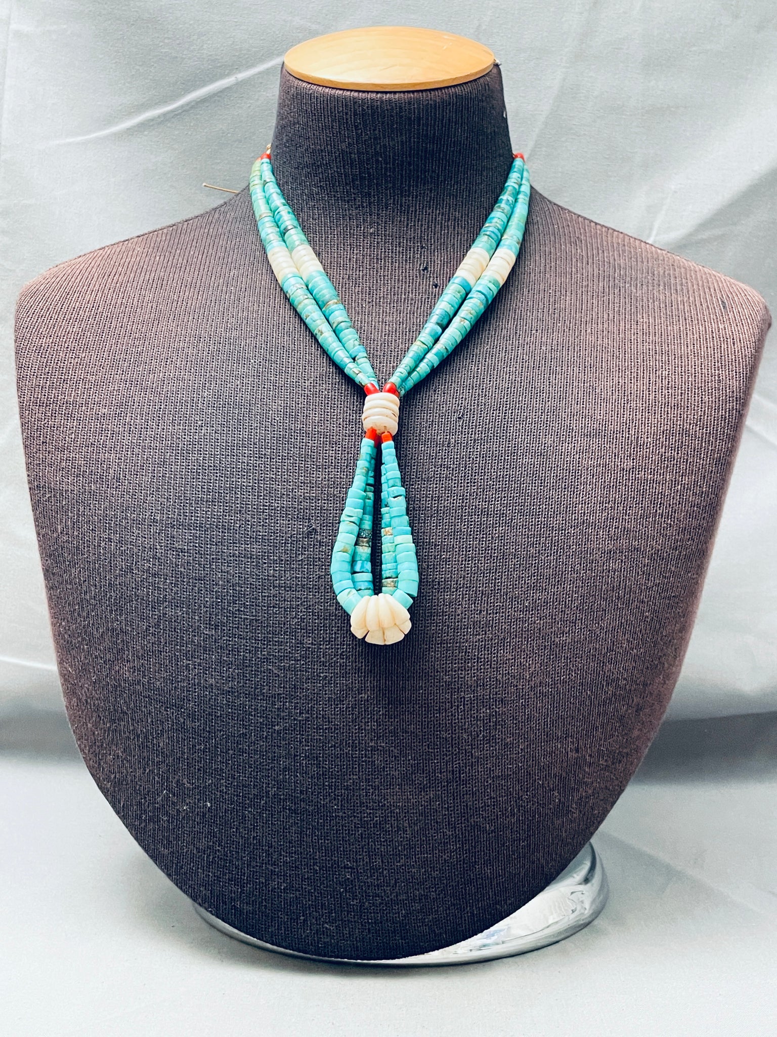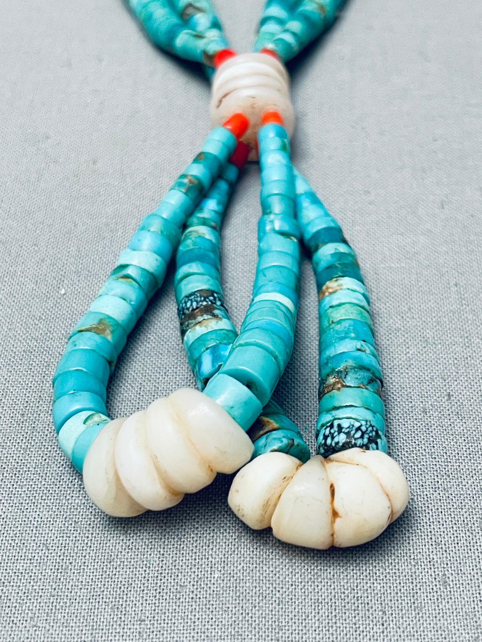 High Quality Vintage Native American Navajo Graduating Turquoise Jacla Necklace Old