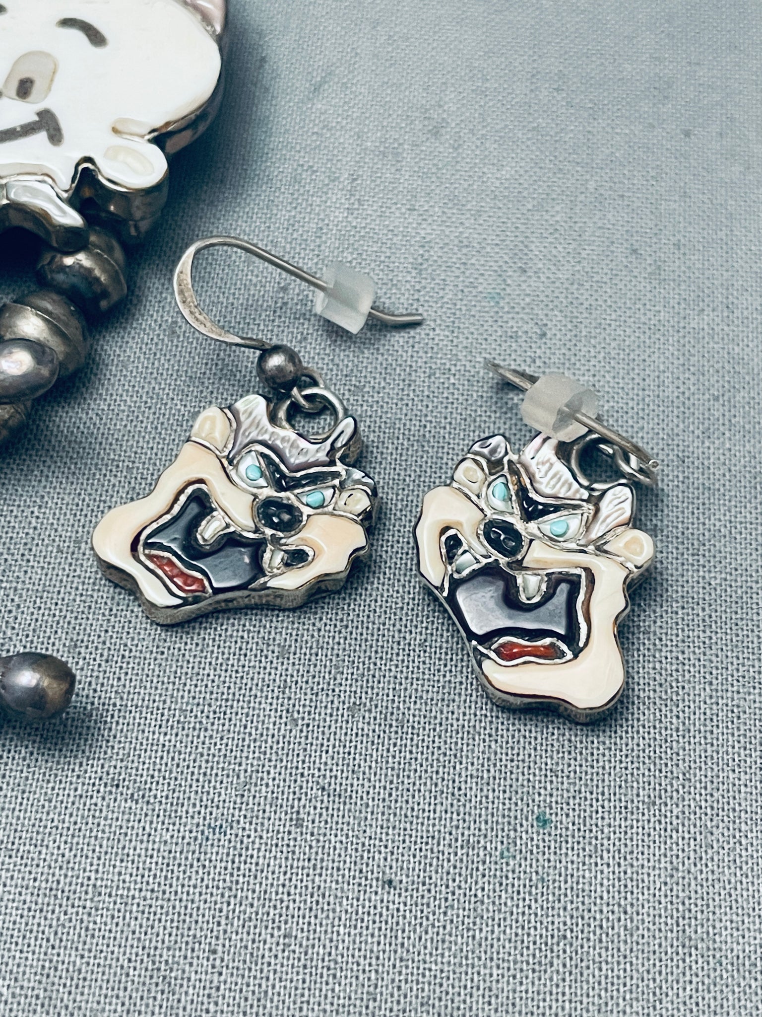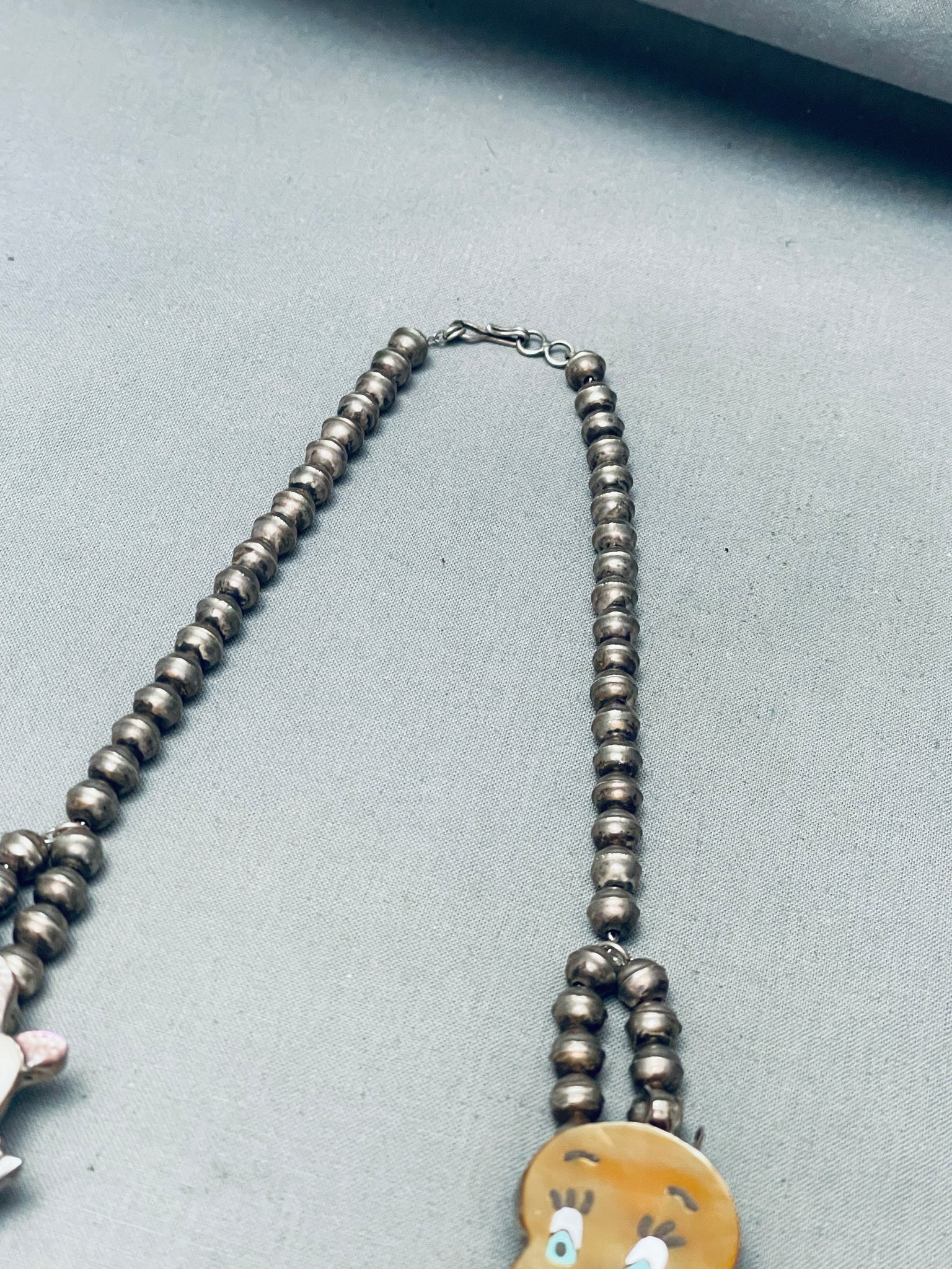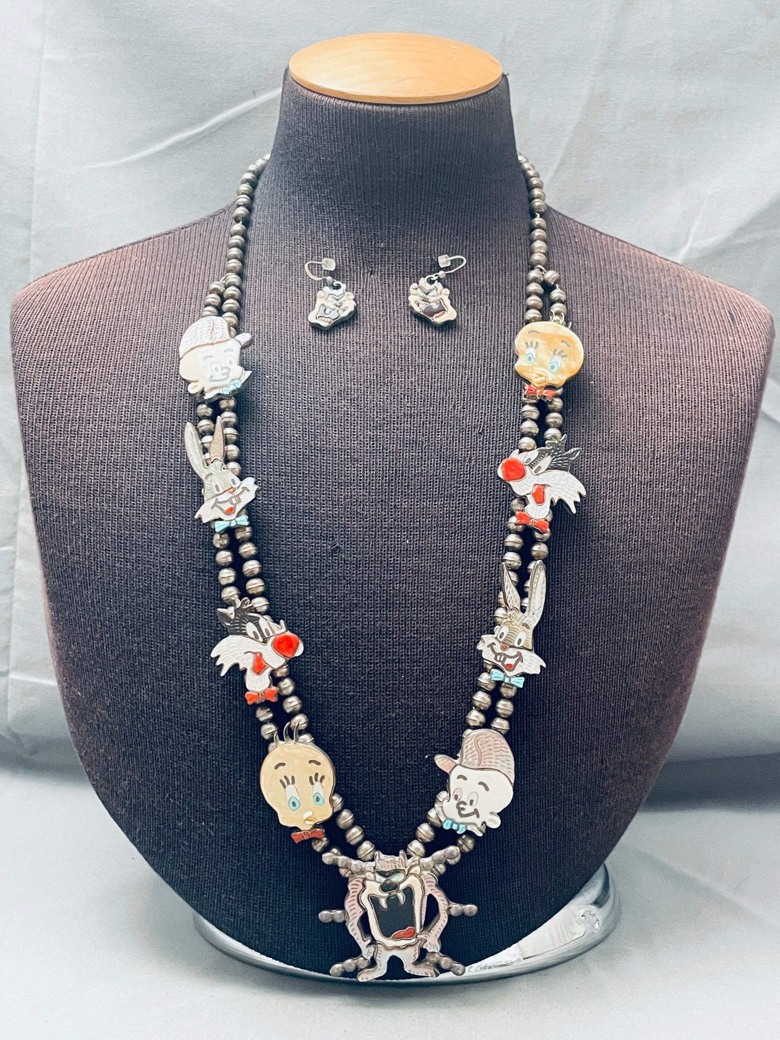 Looney Tunes Old Zuni Turquoise Sterling Silver Inlay Squash Blossom Necklace