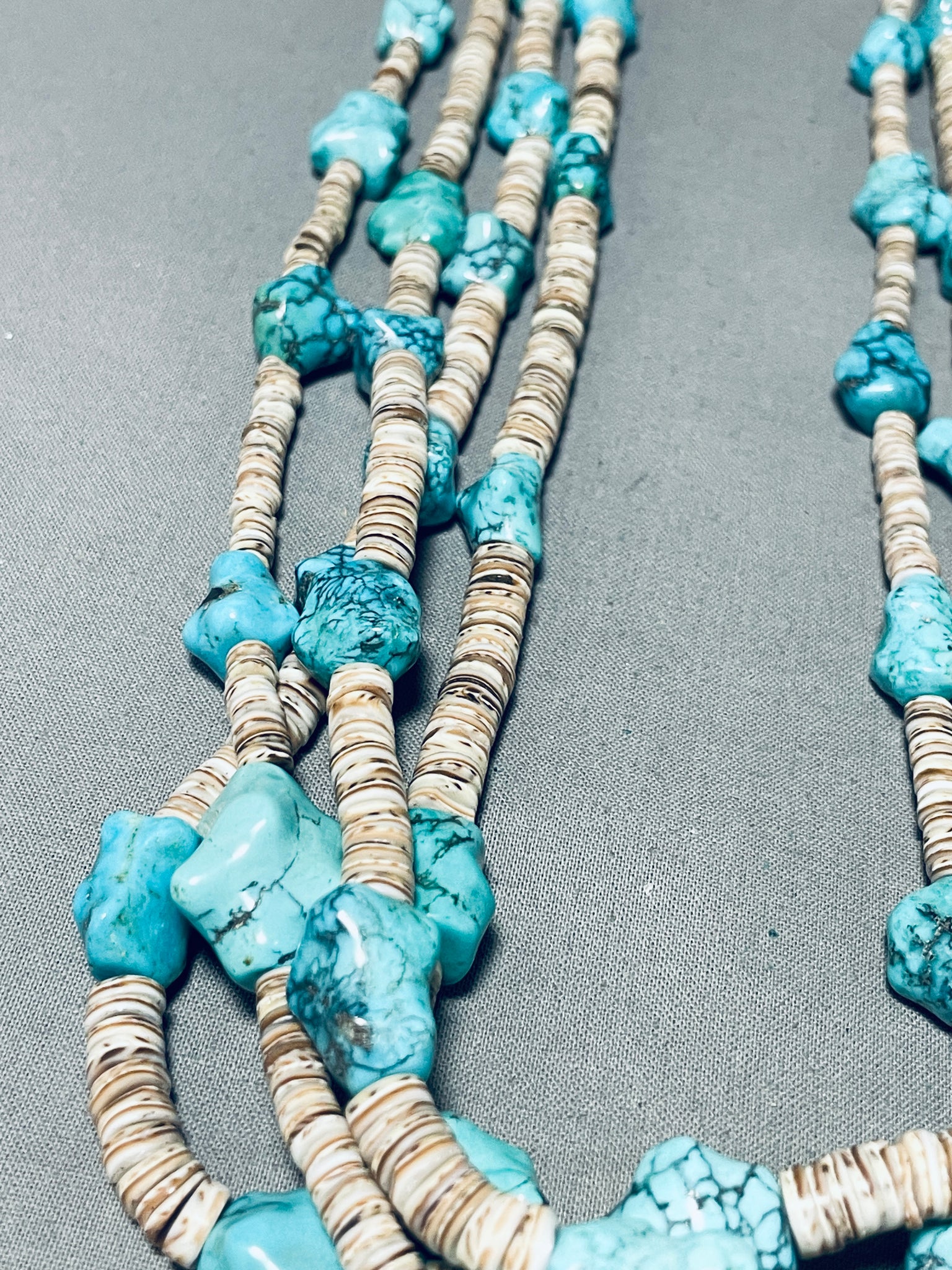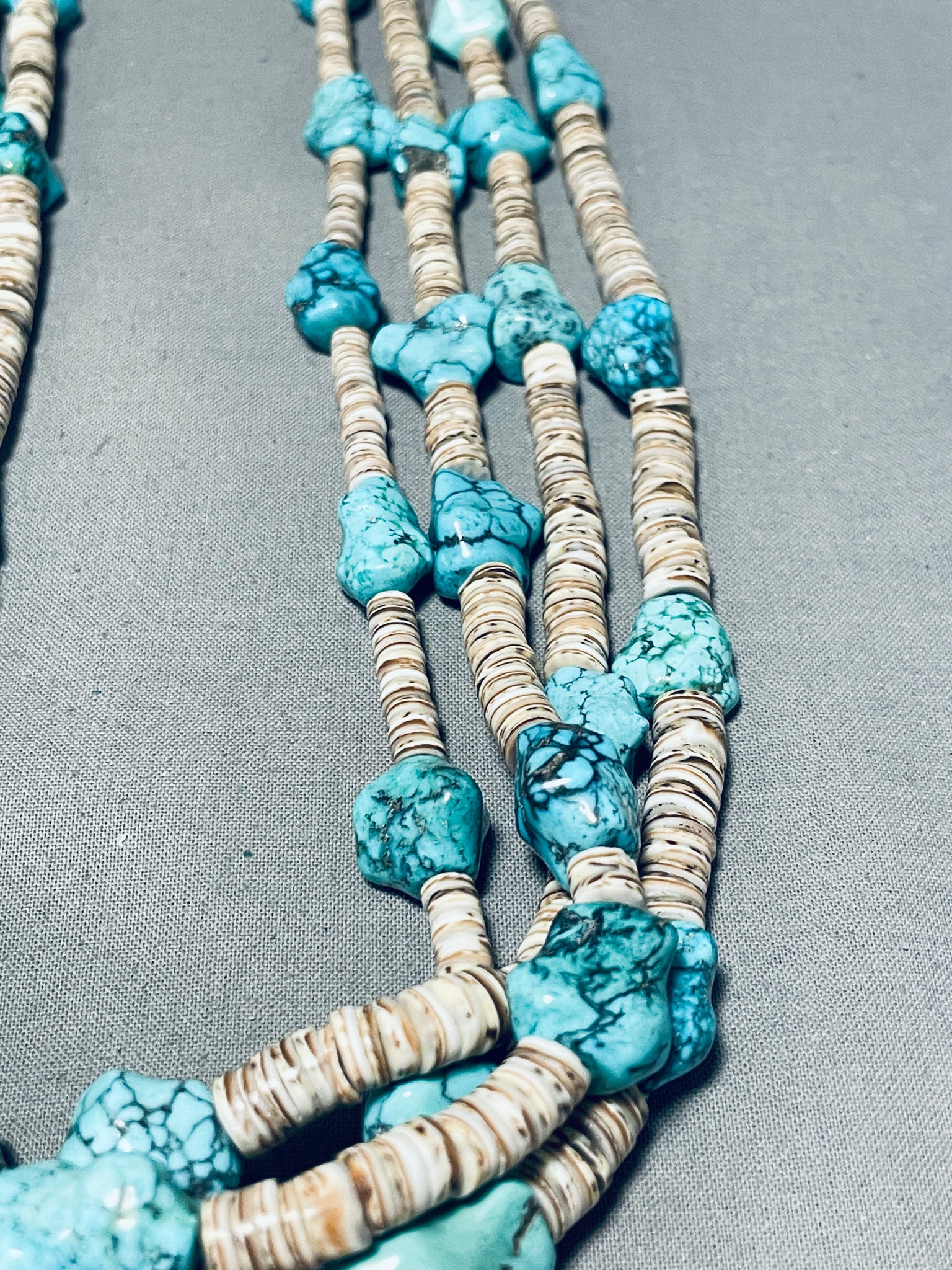 Native American 200+ Gram Vintage Santo Domingo Spiderweb Turquoise Shell Necklace