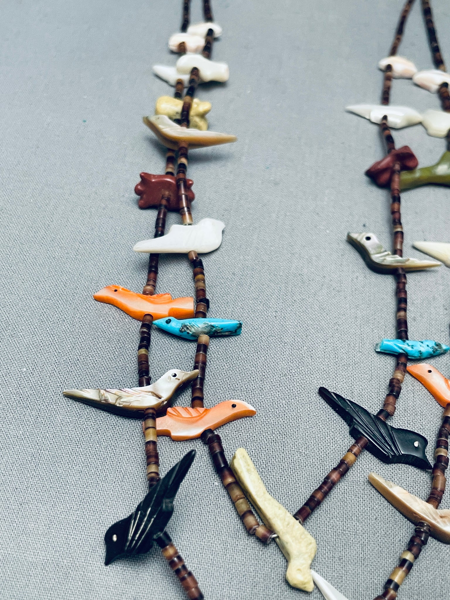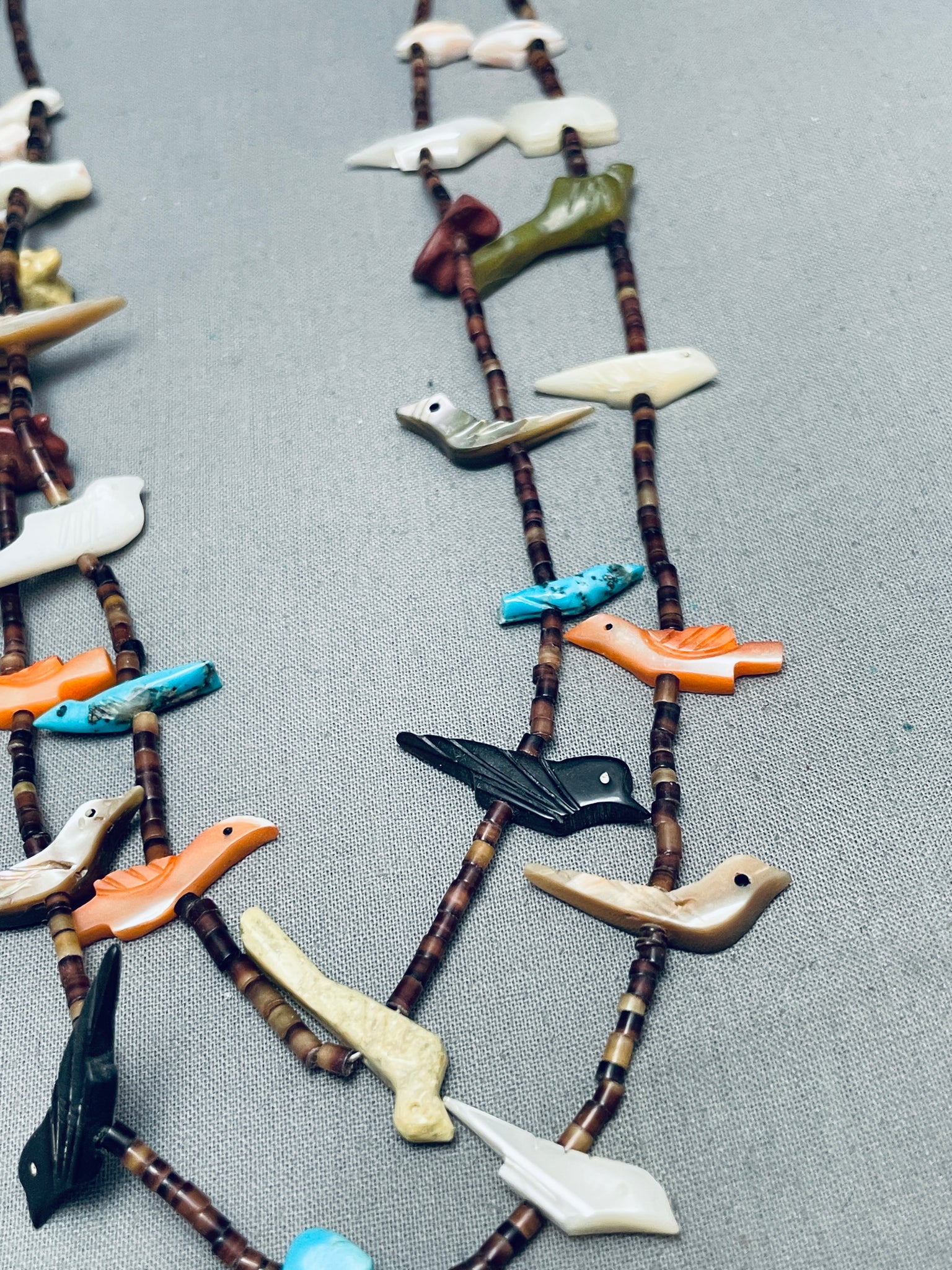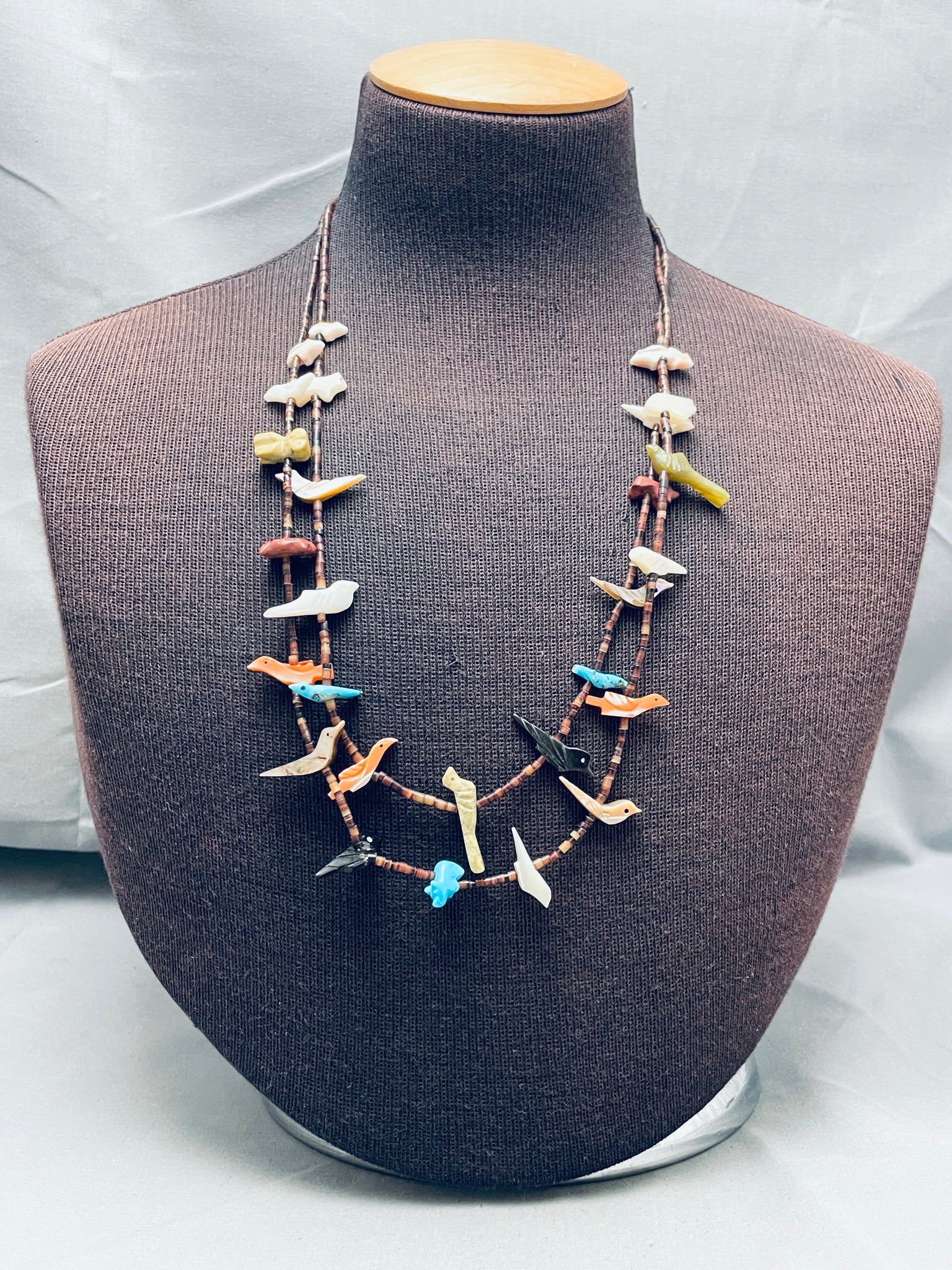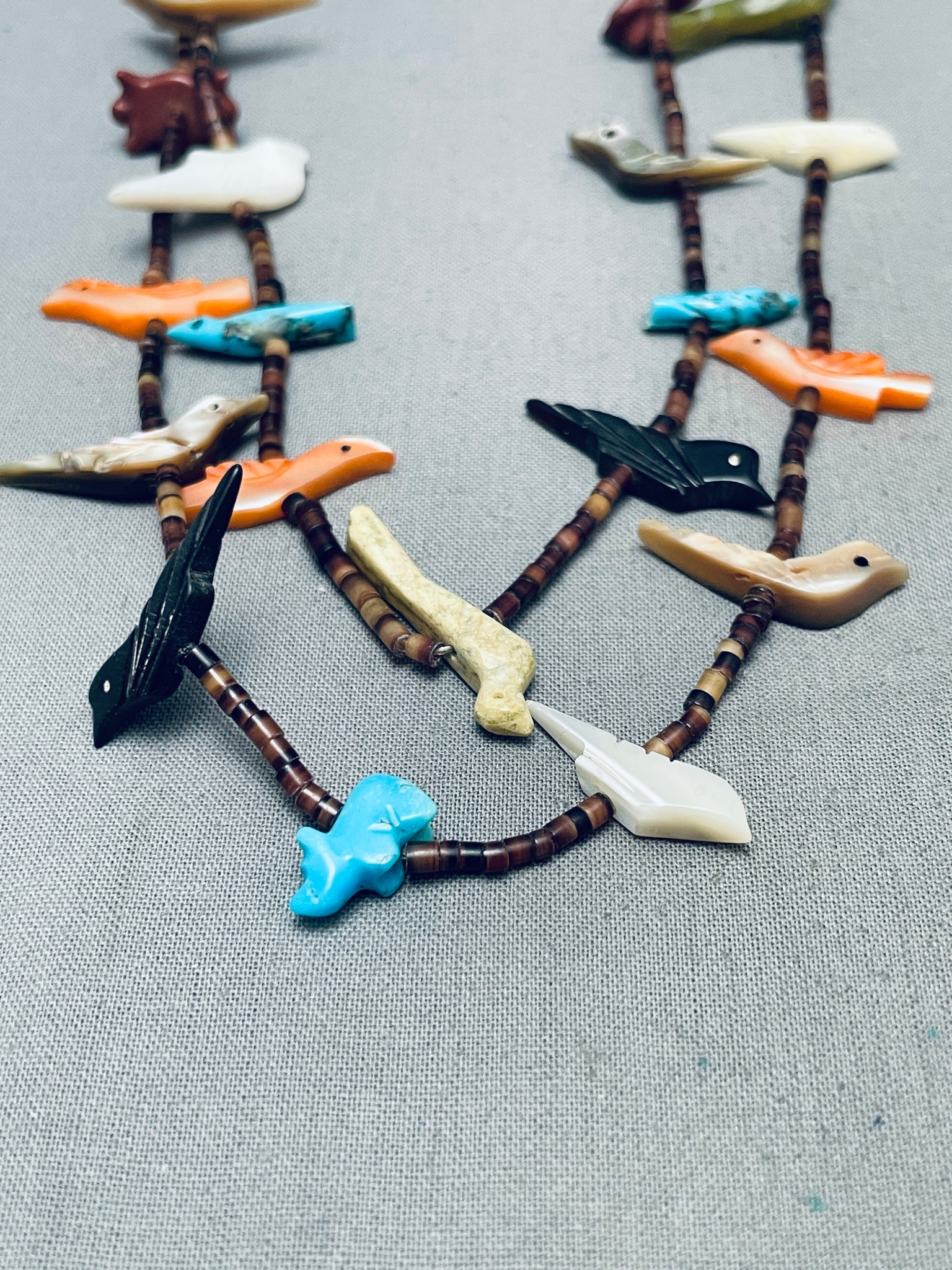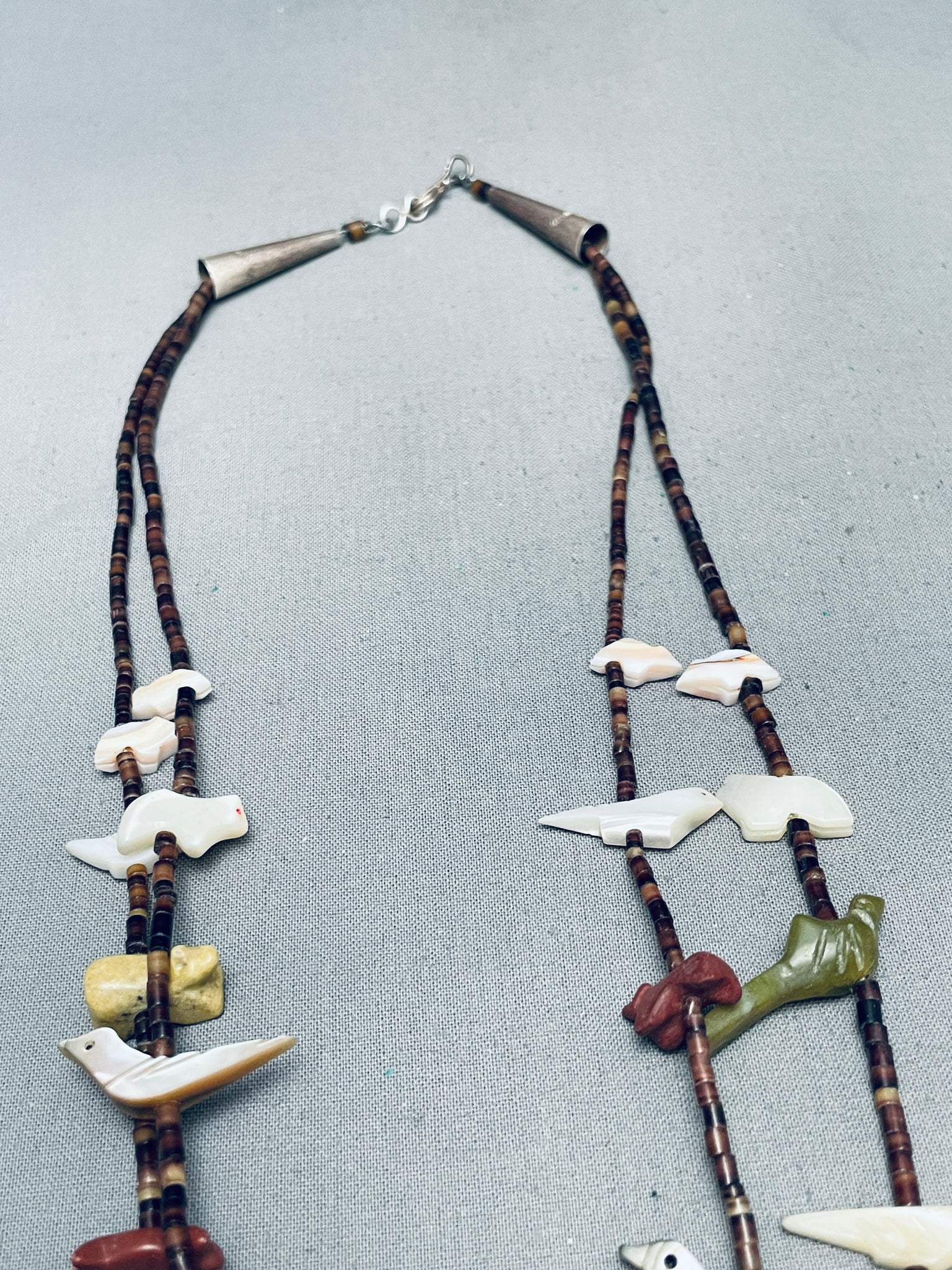 Native American Early Vintage Kewa Santo Domingo Animal Fetish Sterling Silver Necklace