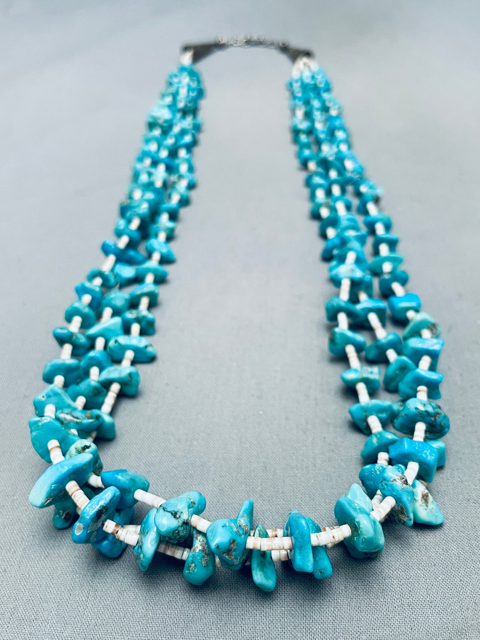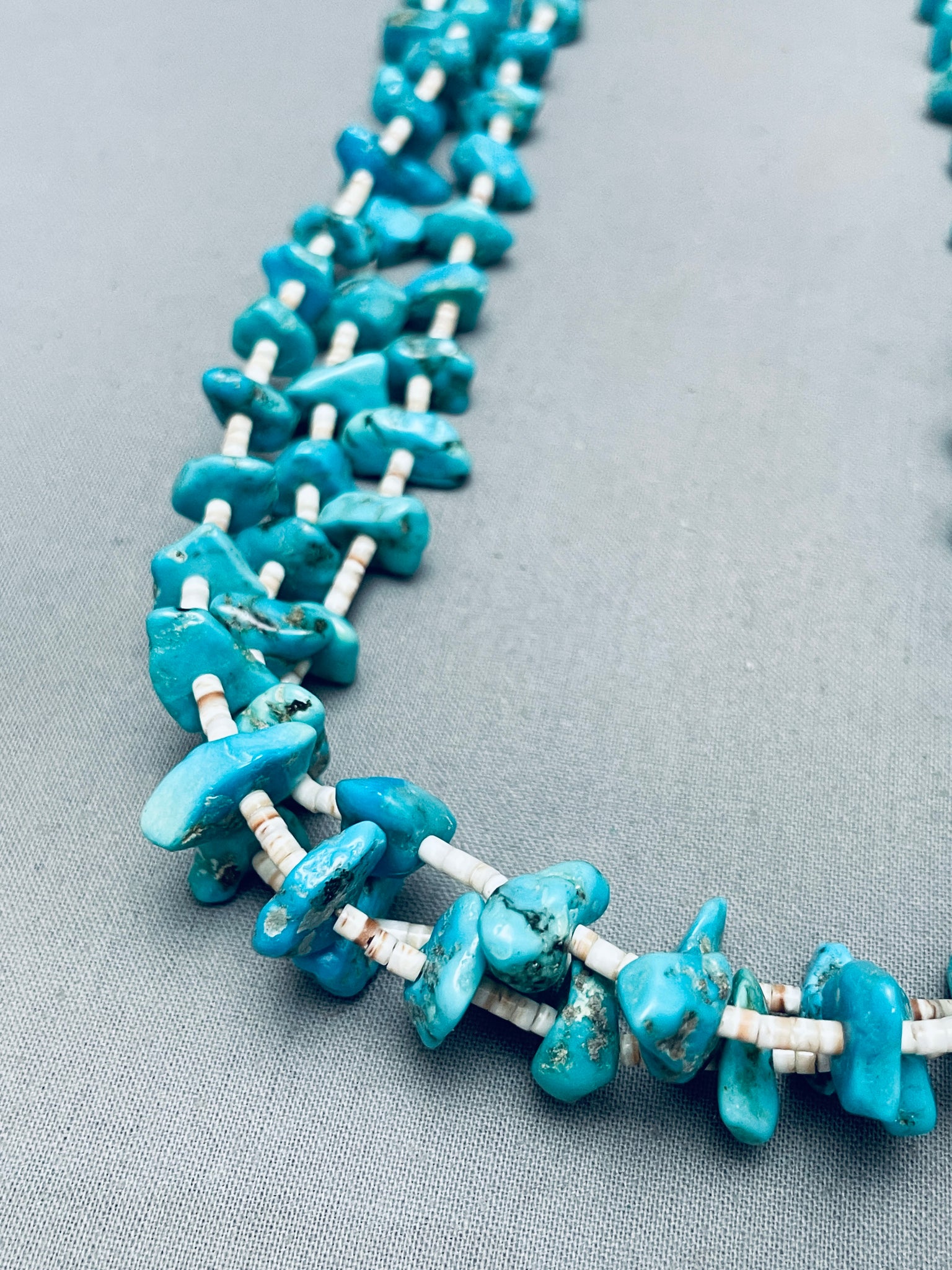 Nuggets Of Old Turquoise Vintage Native American Navajo Heishi Necklace