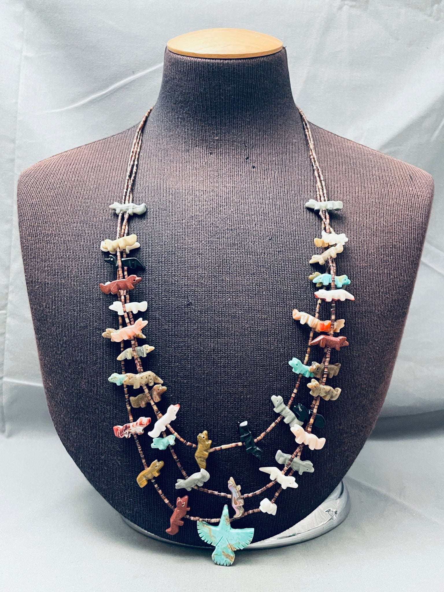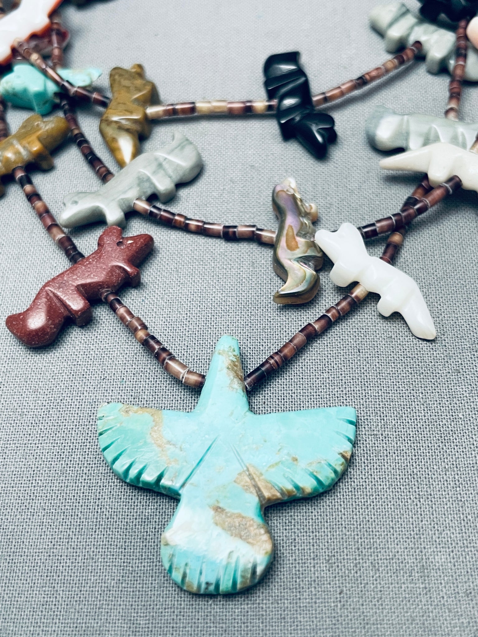One Of Best Vintage Native American Zuni Turquoise Bird Animal Fetish Sterling Silver Necklace
