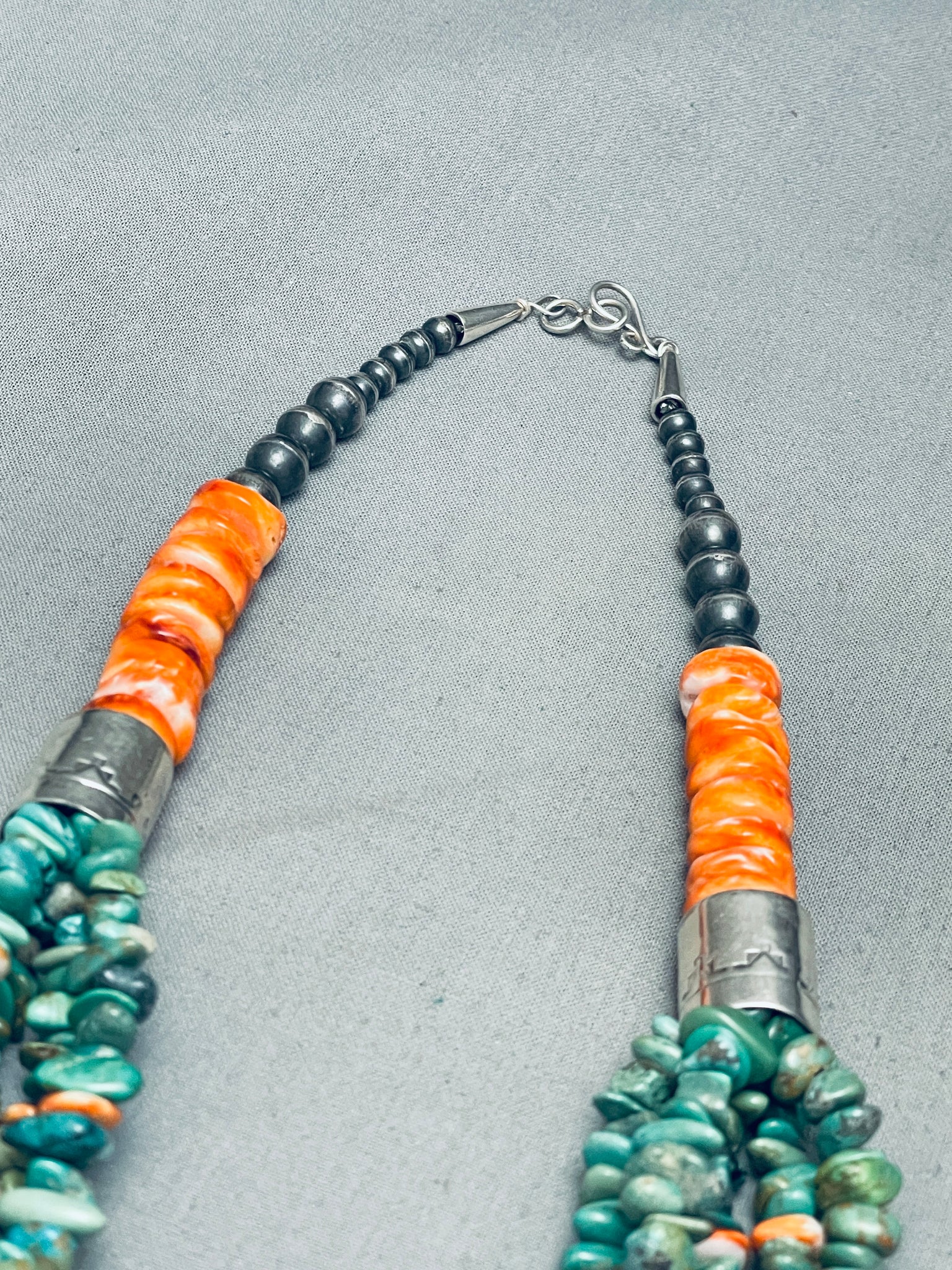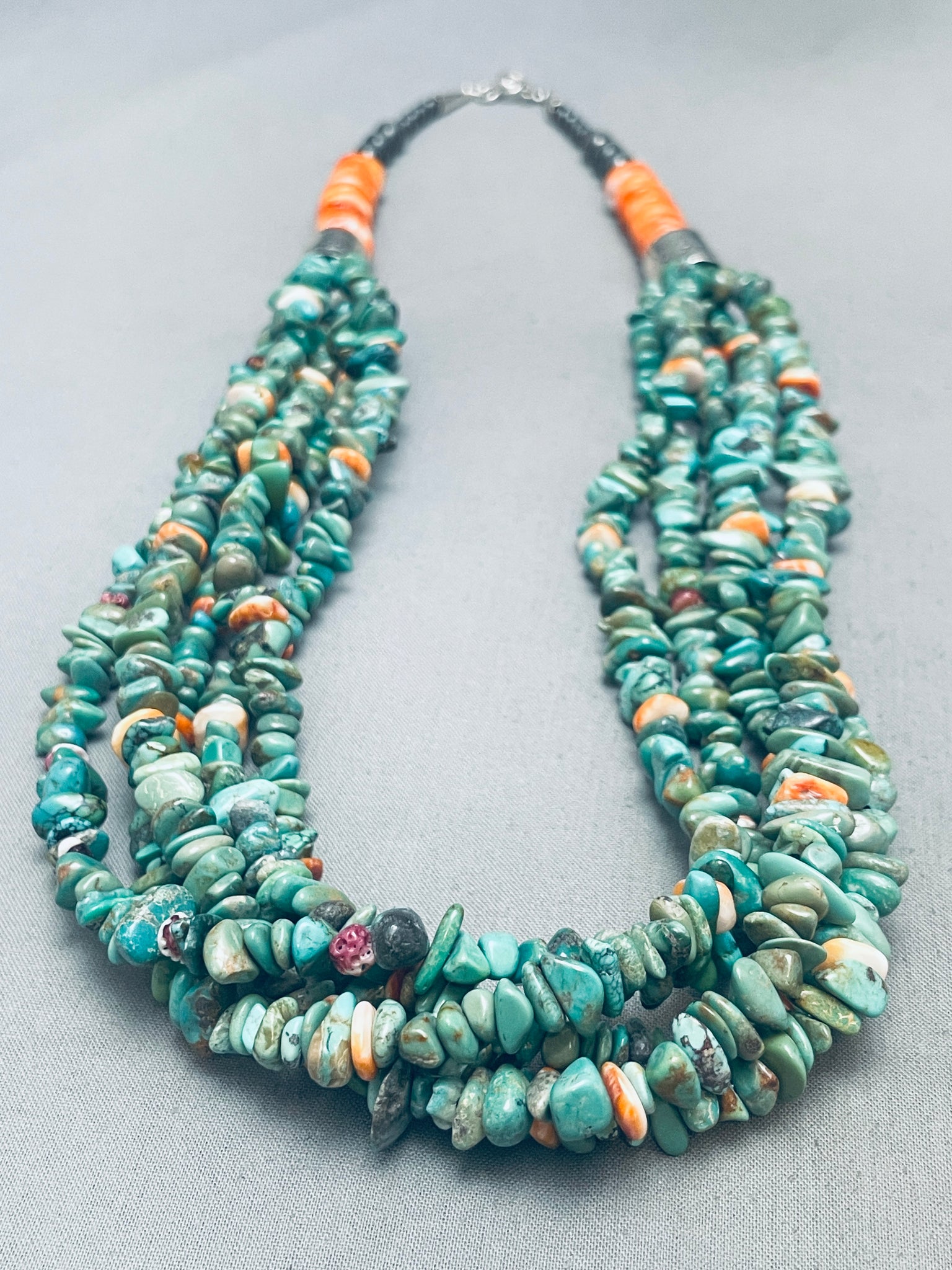 Rare Santo Domingo Green Turquoise Sterling Silver Tube Shell Necklace