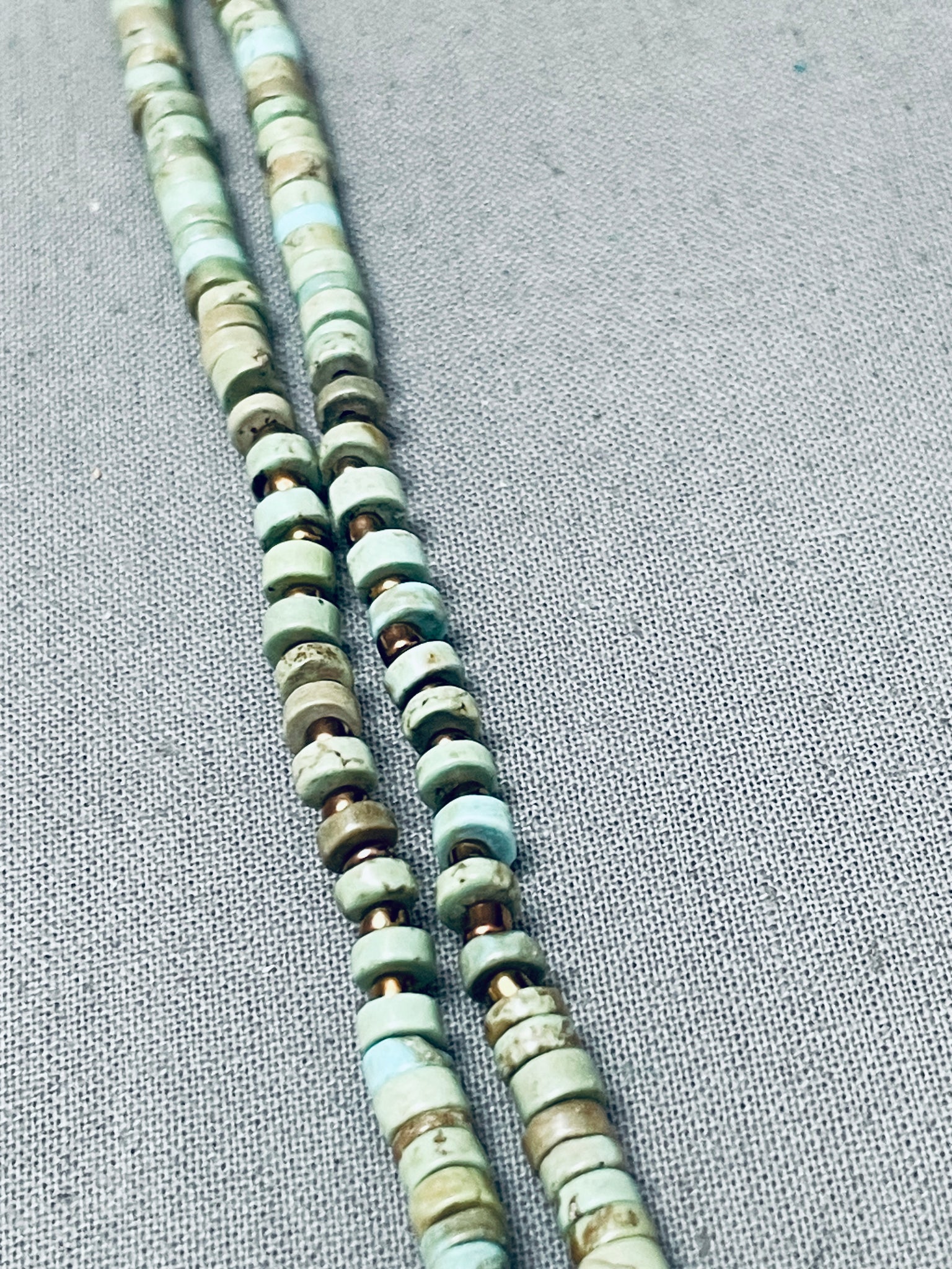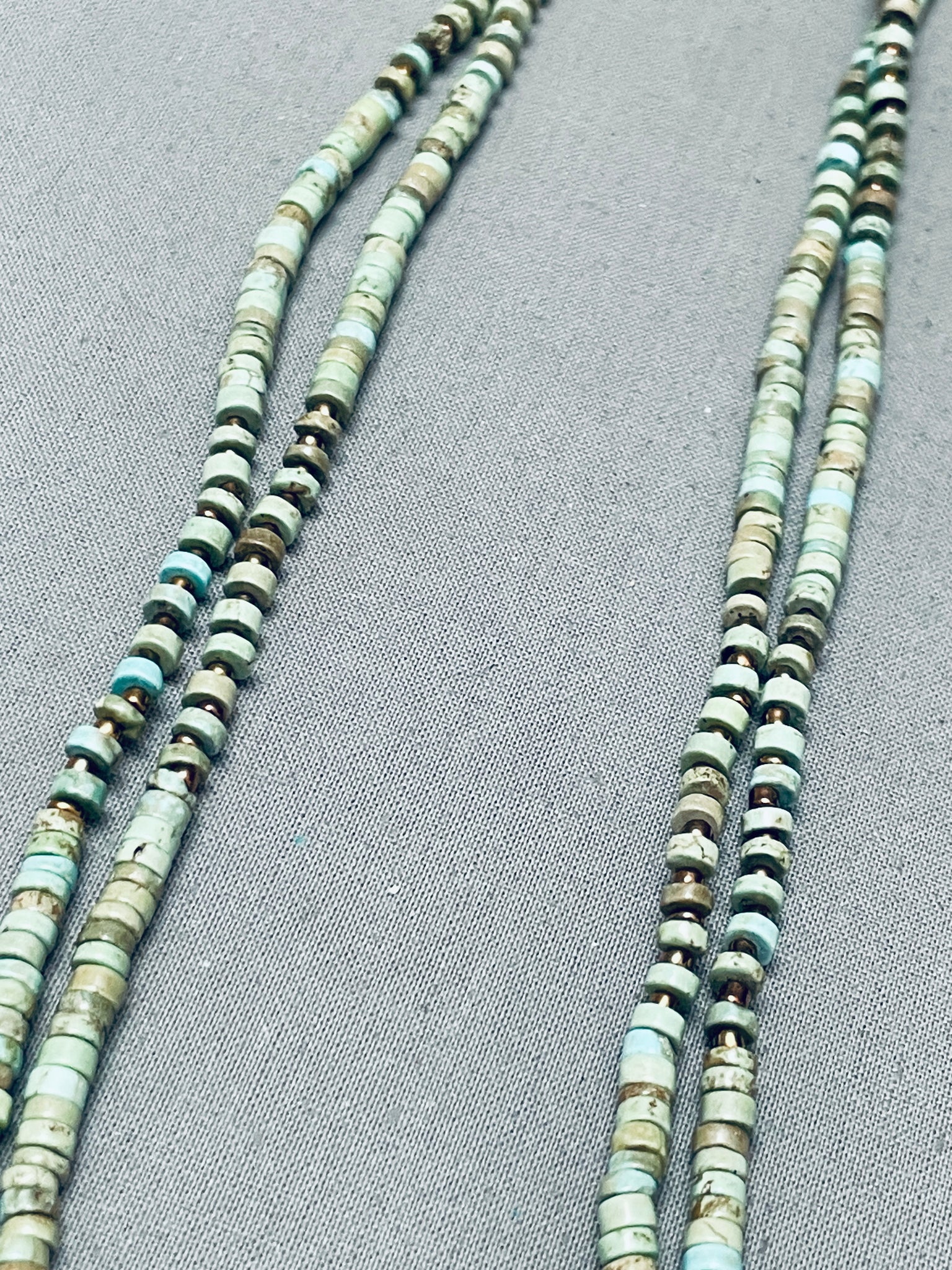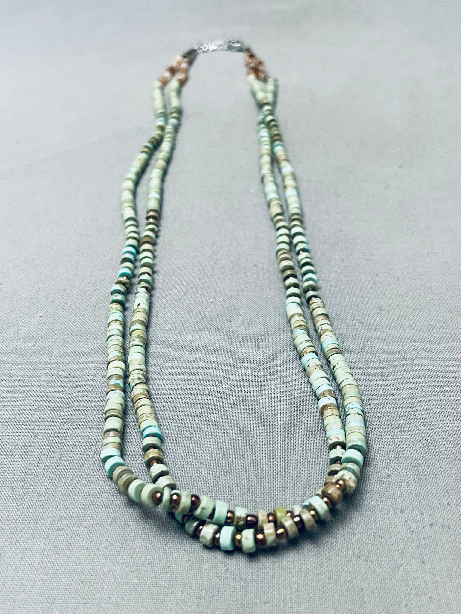 Stunning Native American Navajo Green Turquoise Heishi Sterling Silver Necklace