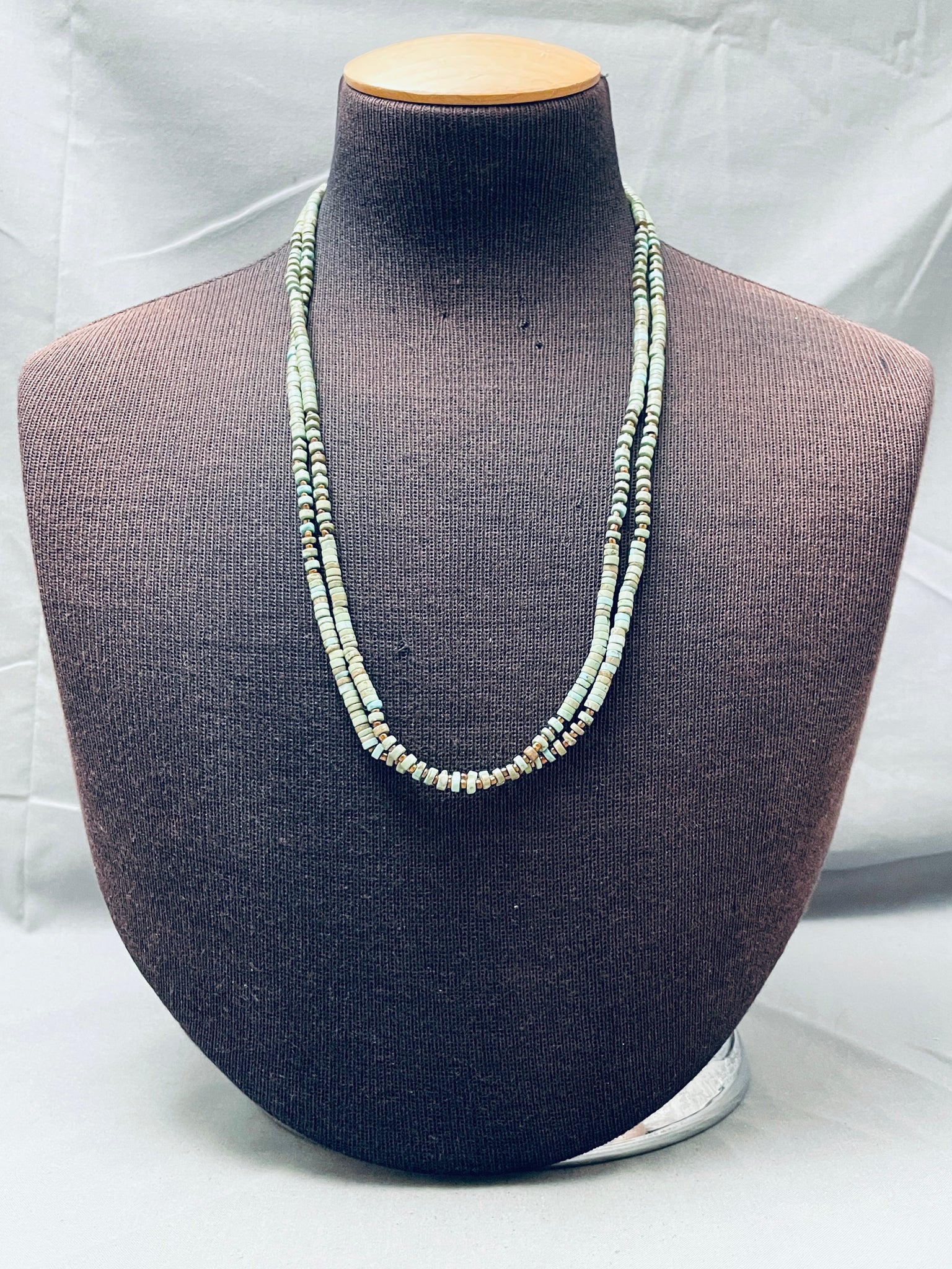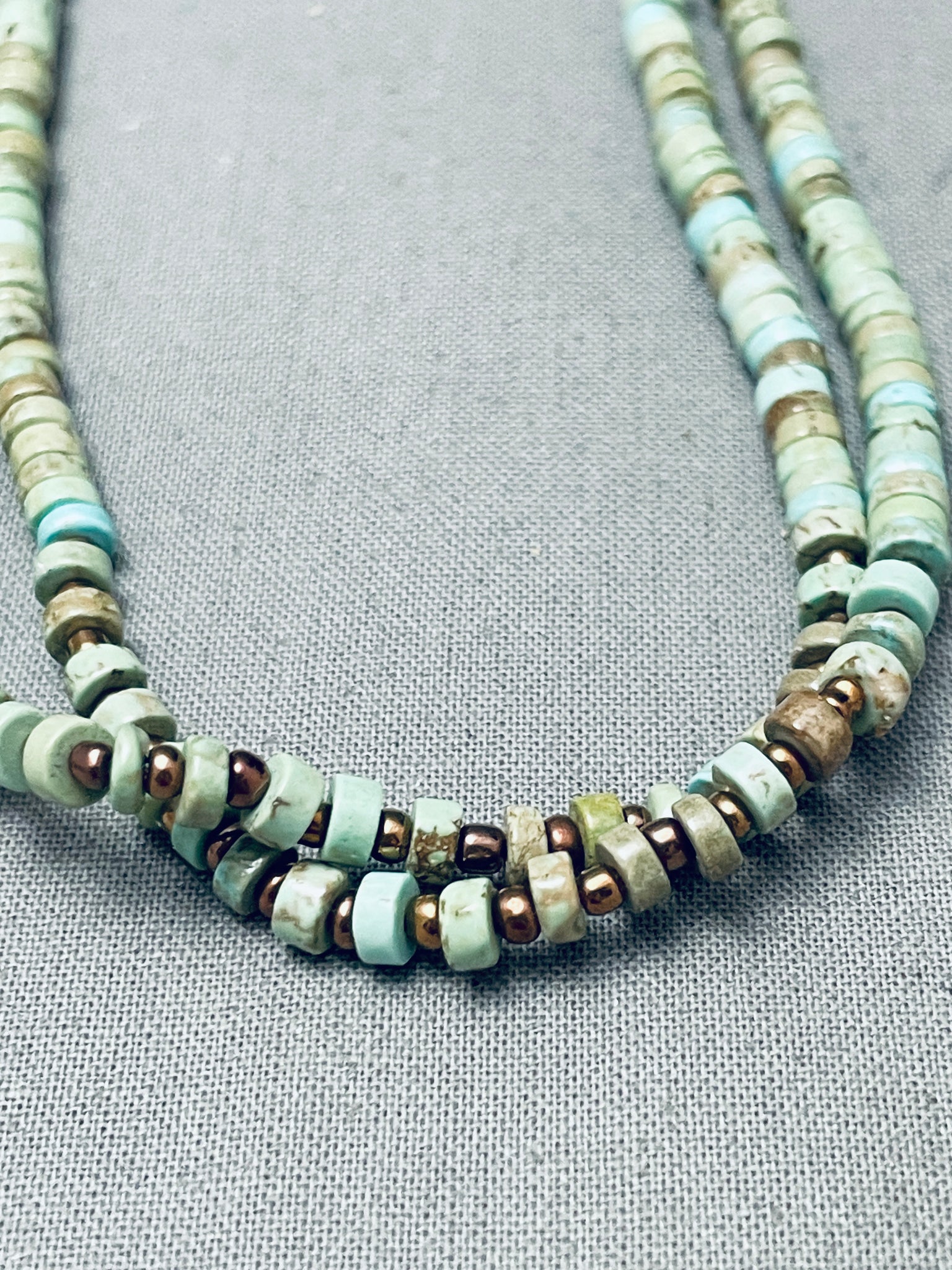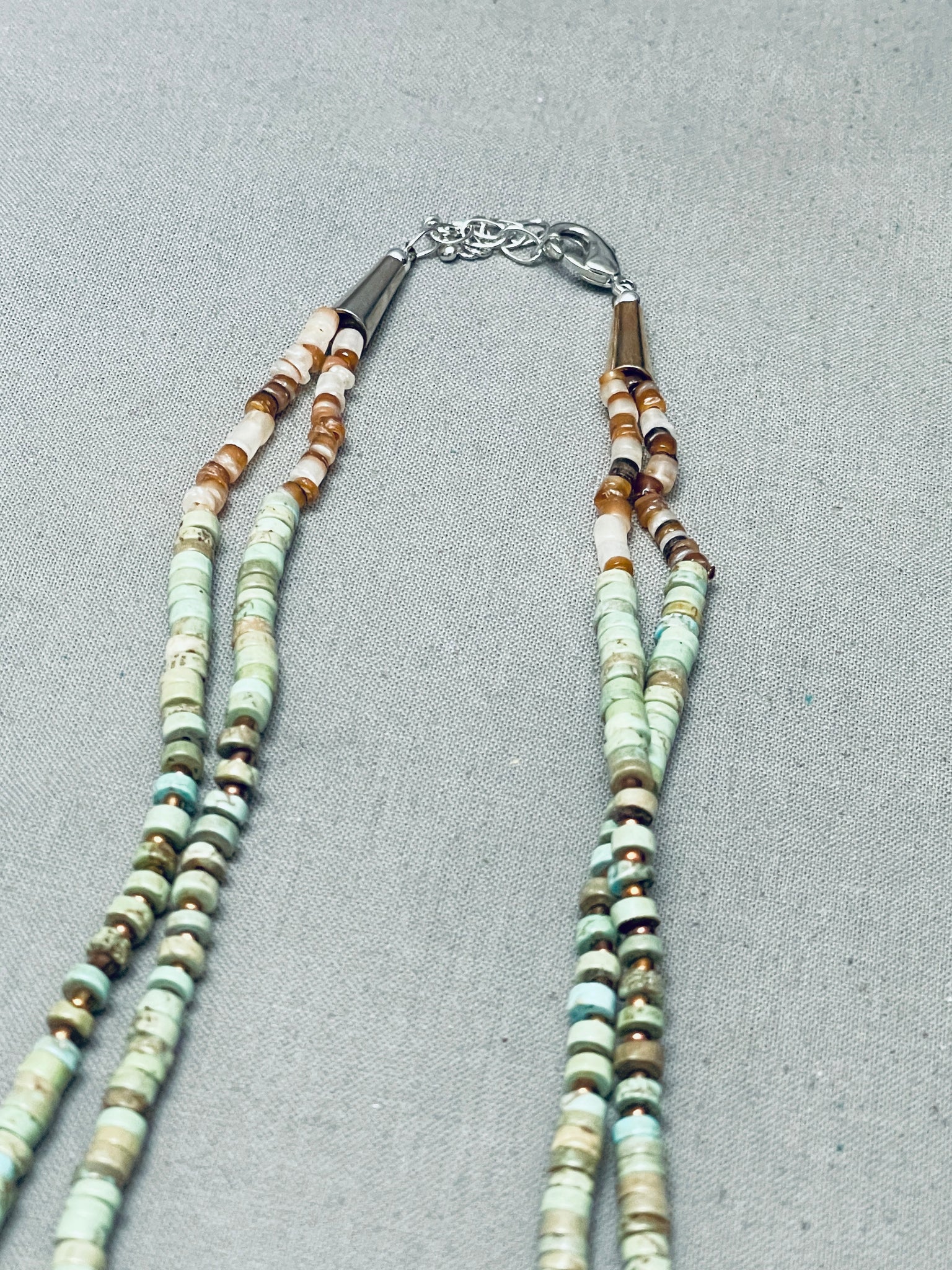 Stunning Native American Navajo Green Turquoise Heishi Sterling Silver Necklace