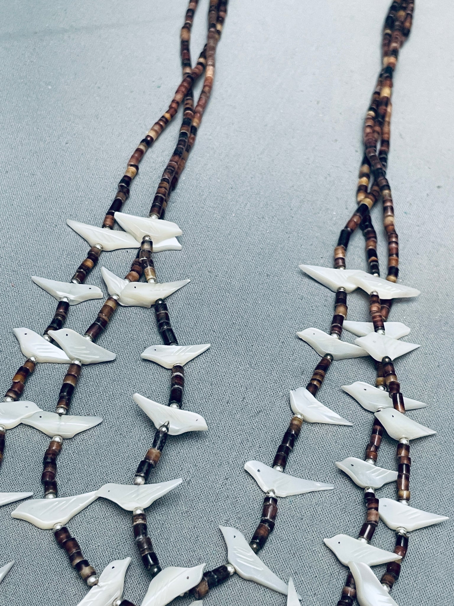White Doves Vintage Santo Domingo Heishi Sterling Silver Necklace