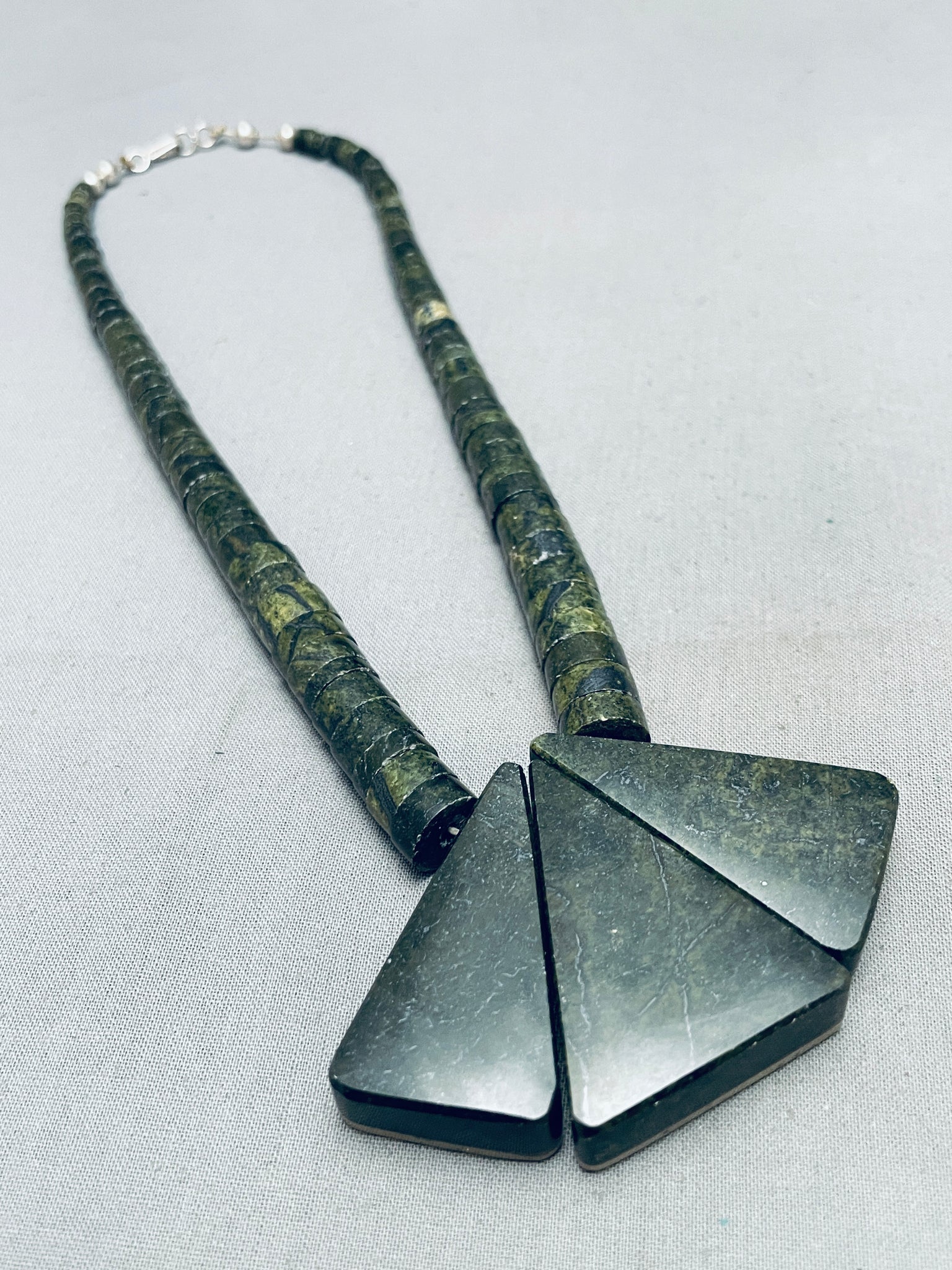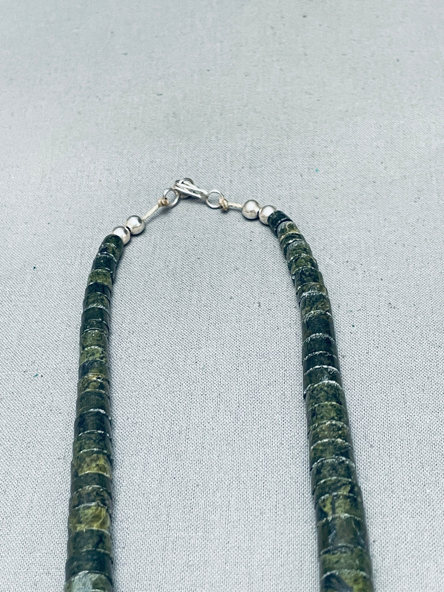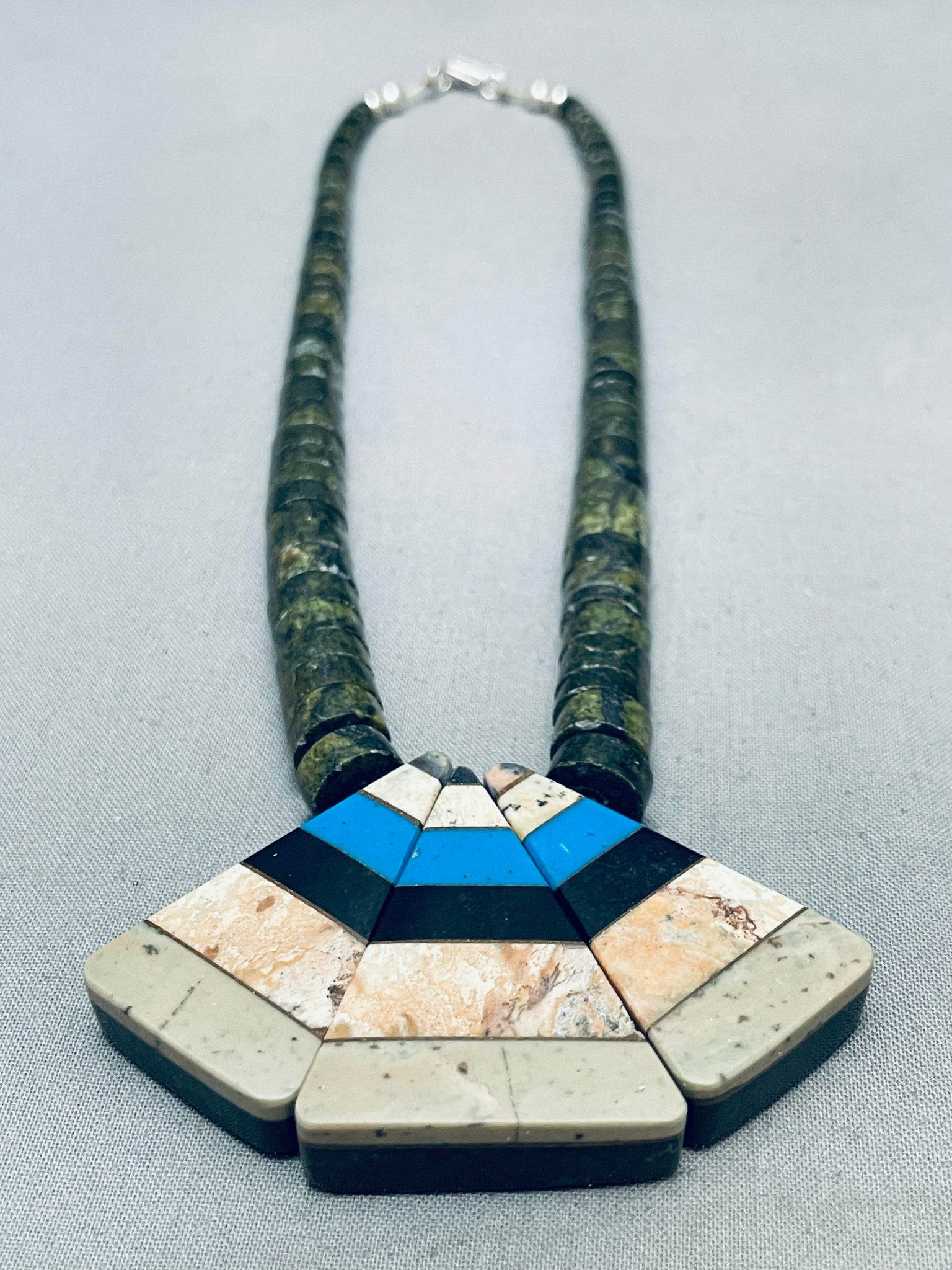 Native American Intricate Vintage Santo Domingo Inlay Pendant Sterling Silver Necklace