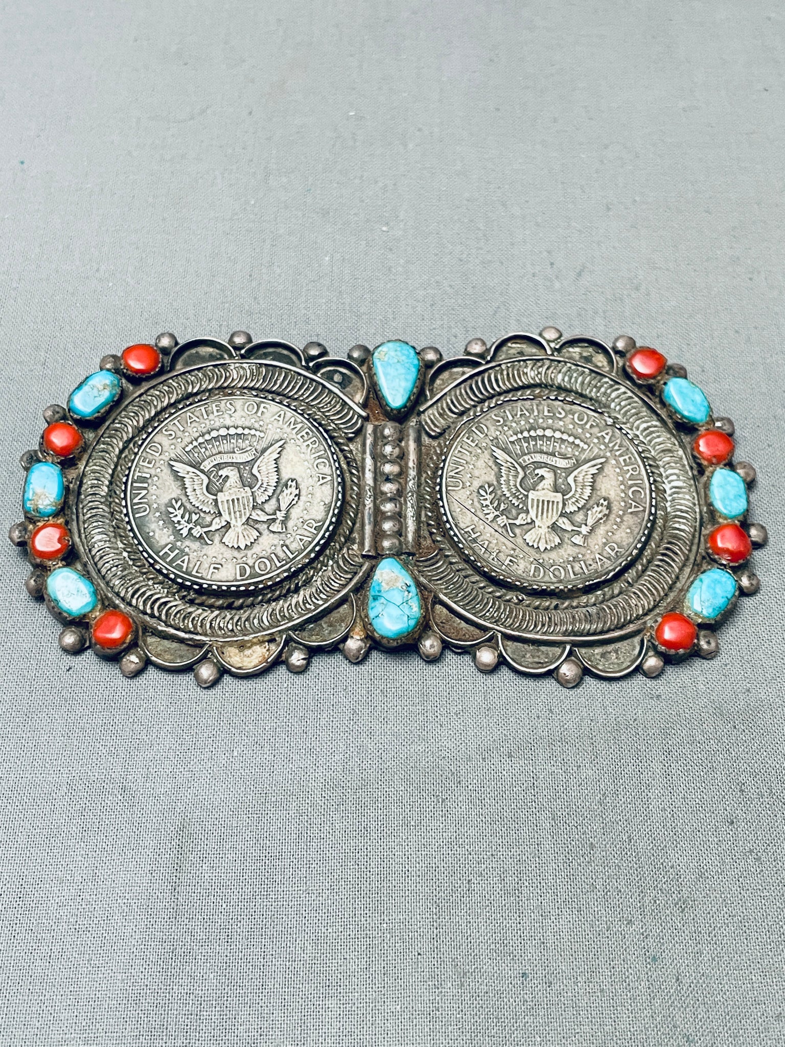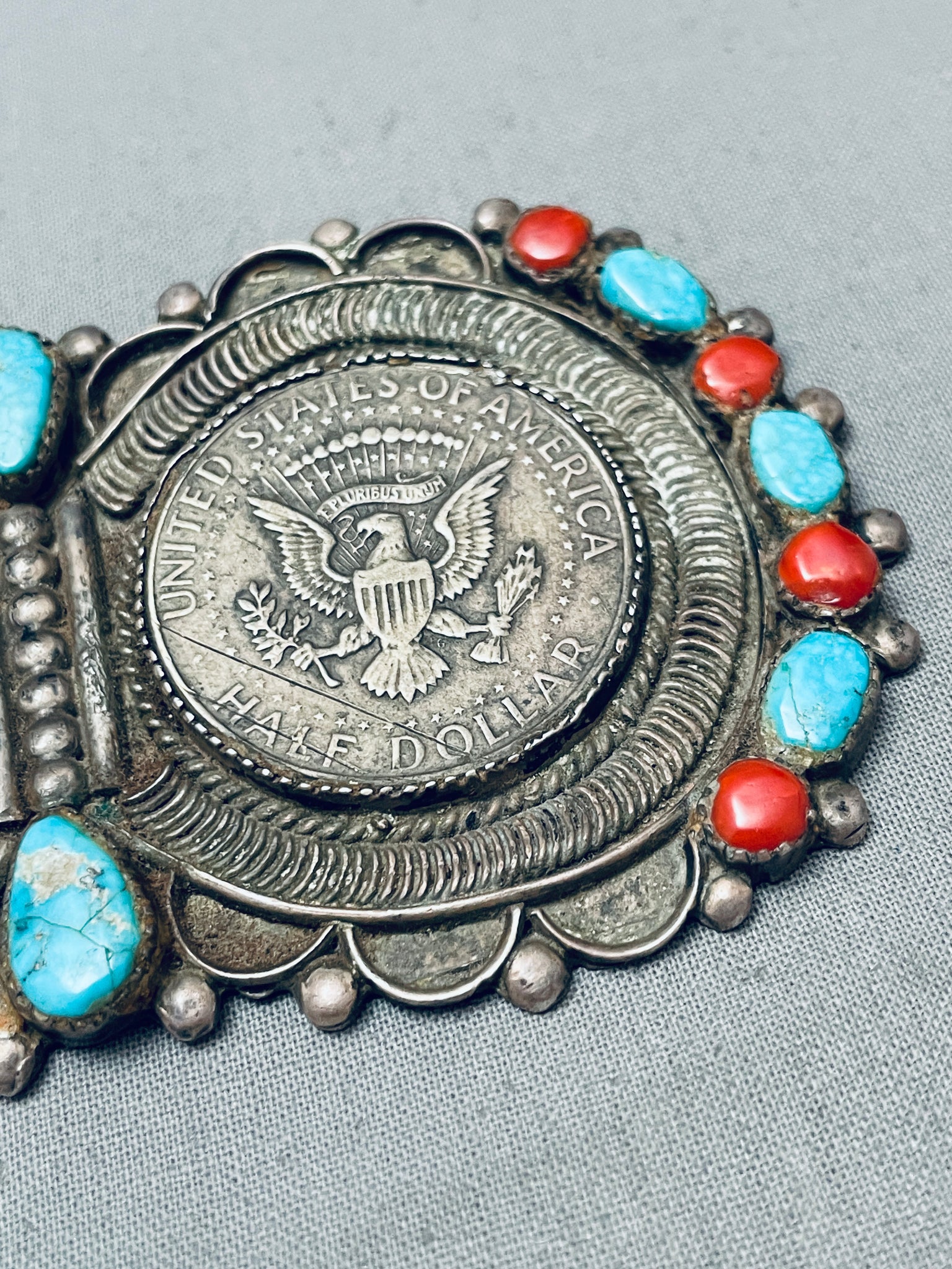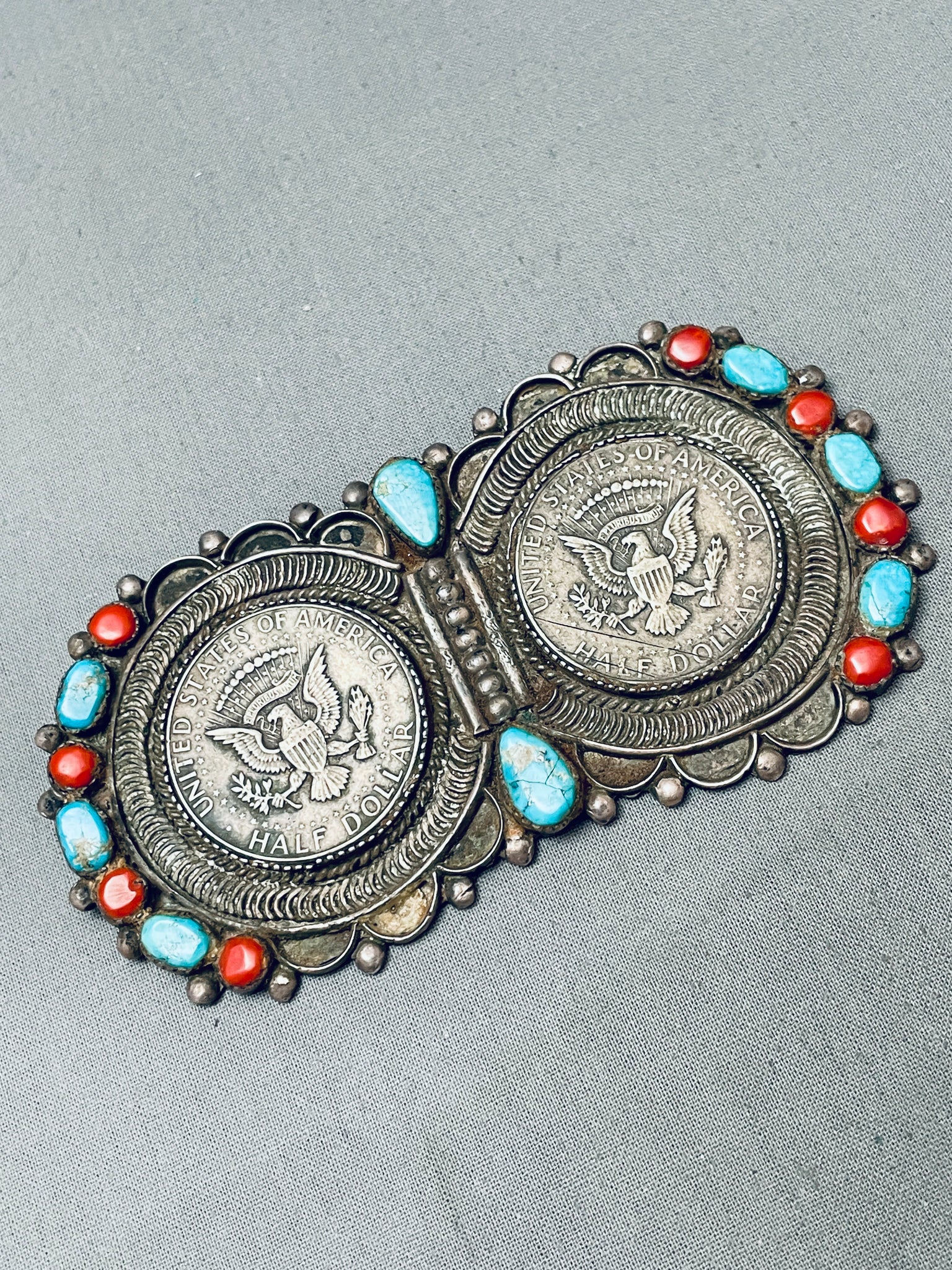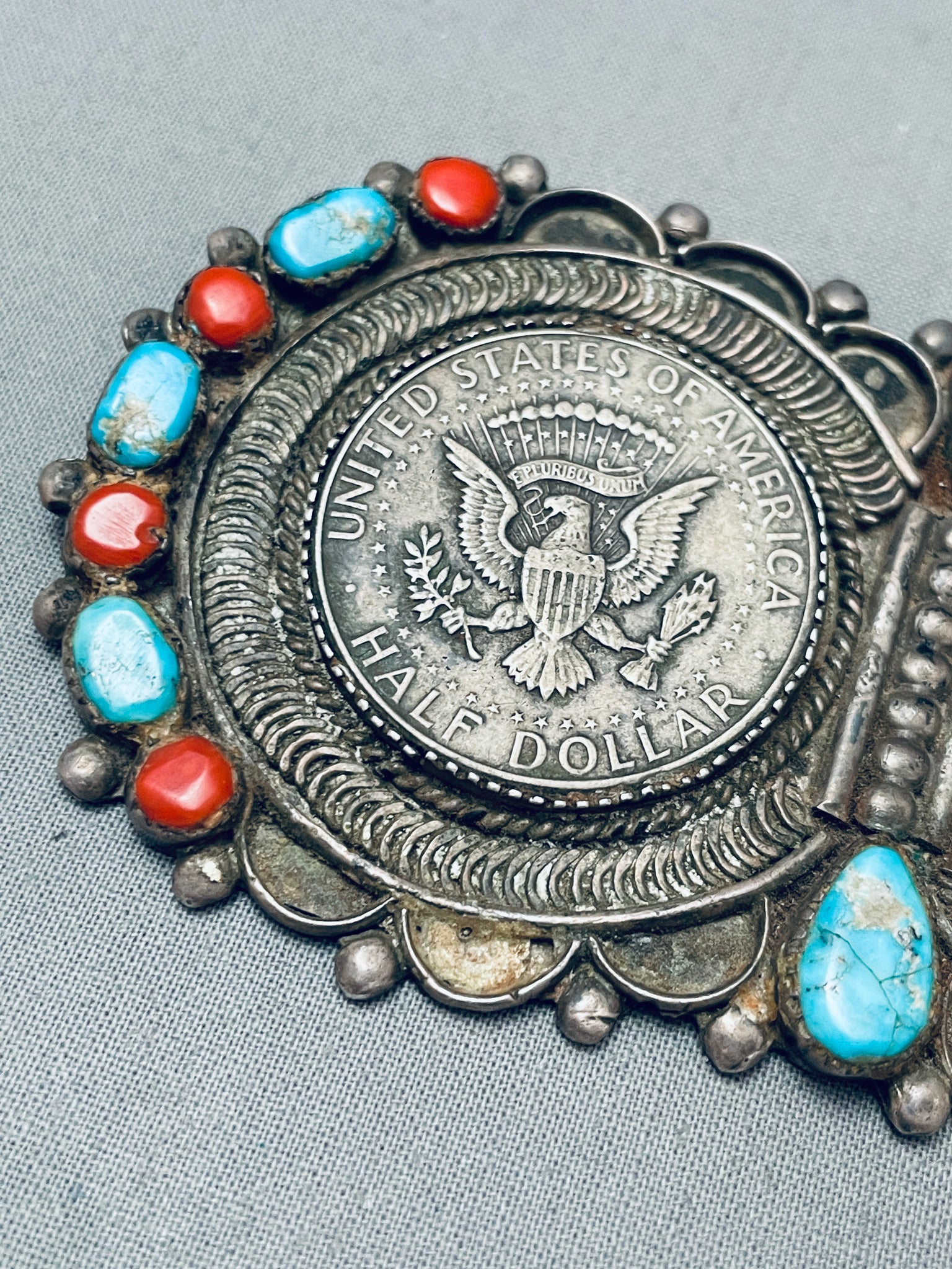Huge 4 Inch Long 80 Grams Vintage Native American Navajo Turquoise Sterling Silver Pin