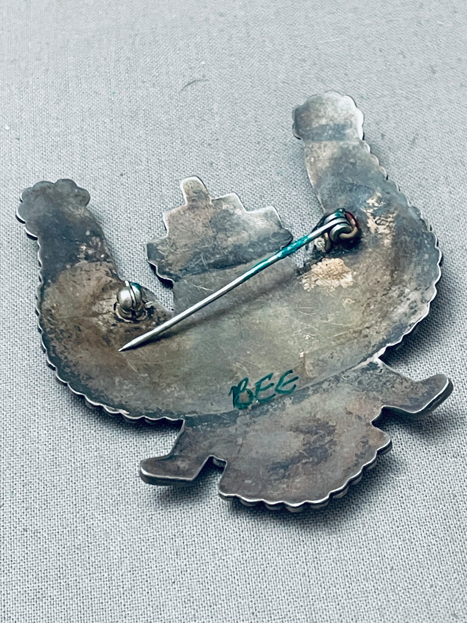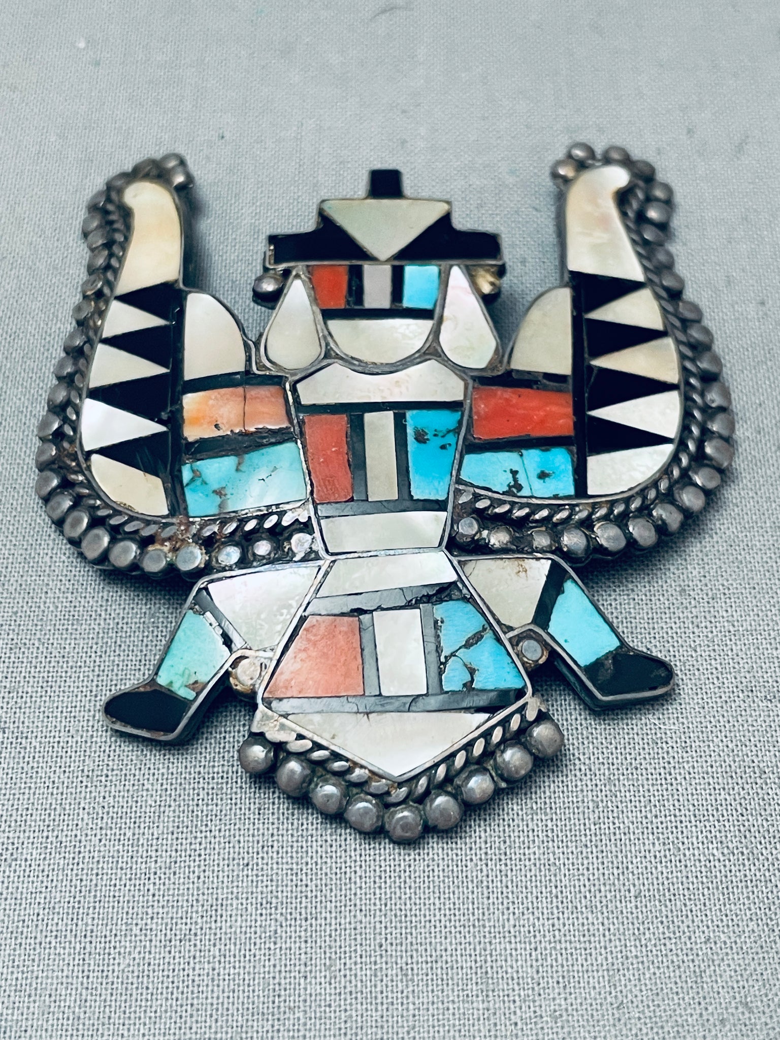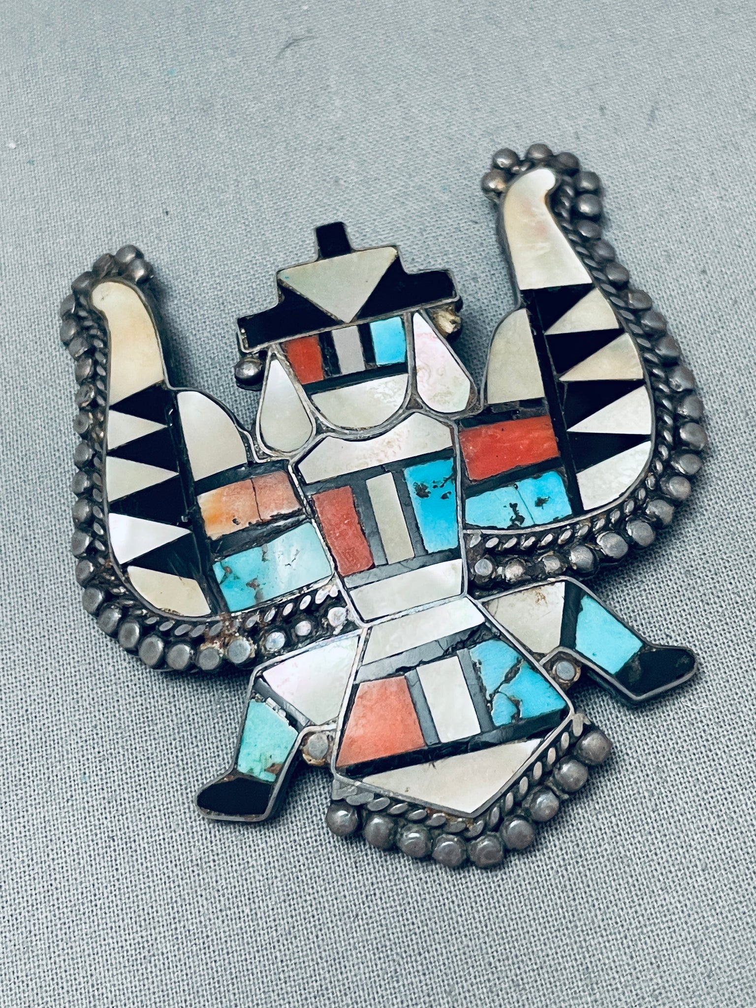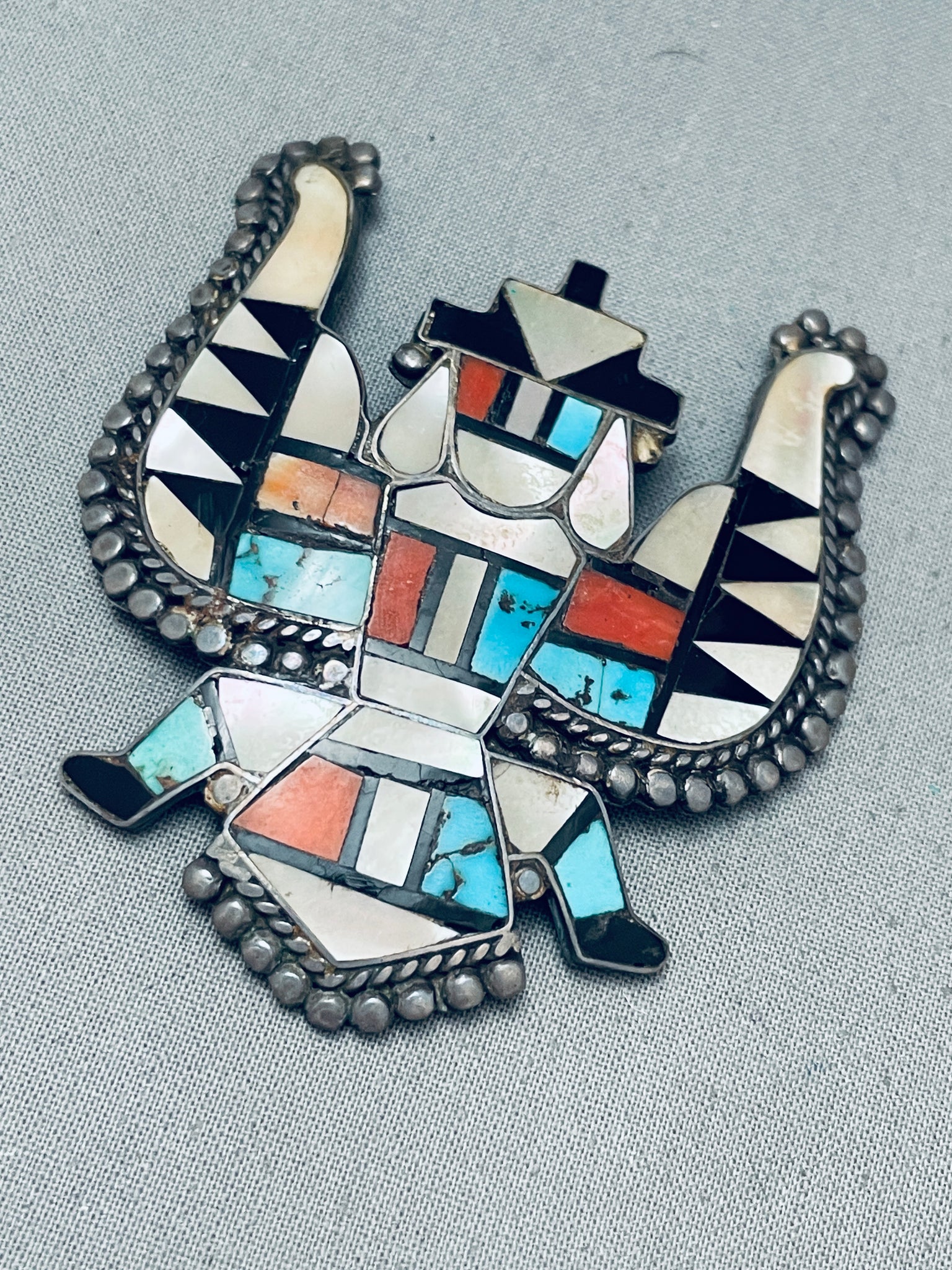 One Of The Highest Quality Vintage Native American Zuni Inlay Sterling Silver Pin Turquoise