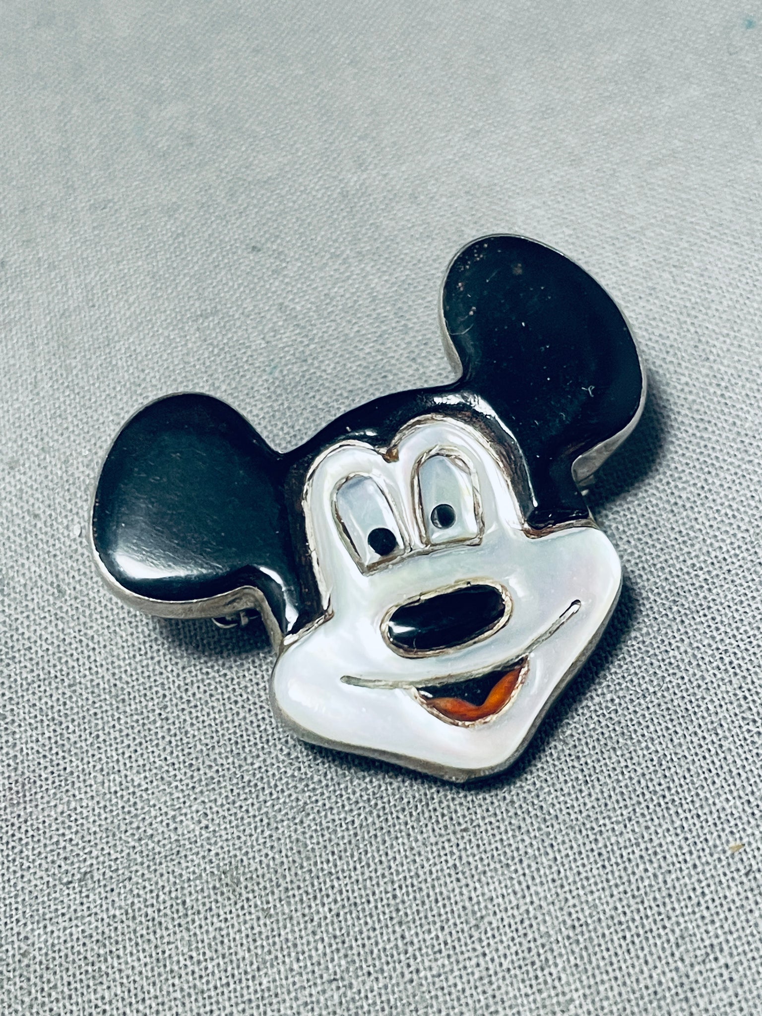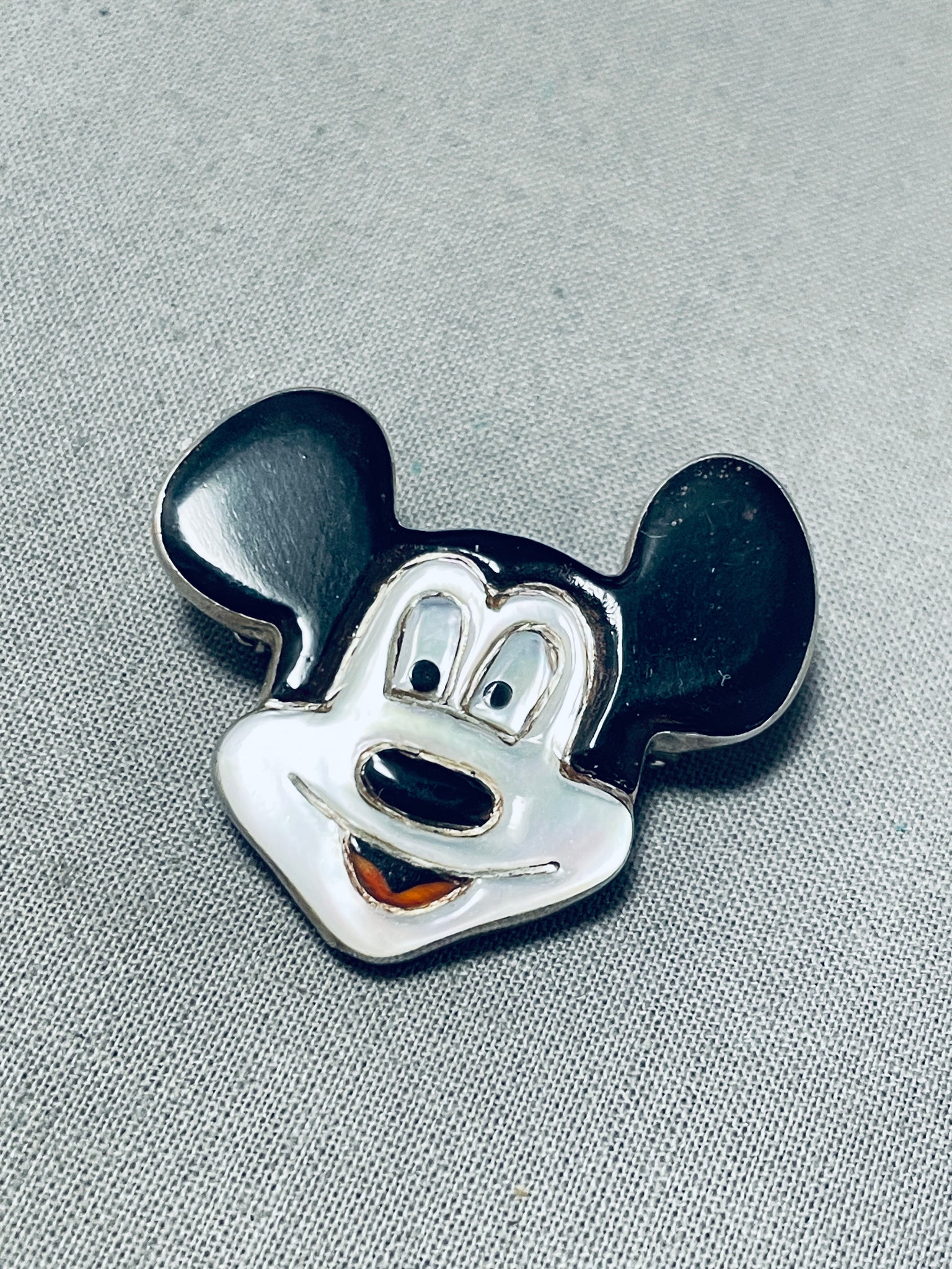 Whimsical Vintage Native American Zuni Inlay Mickey Mouse Sterling Silver Pin