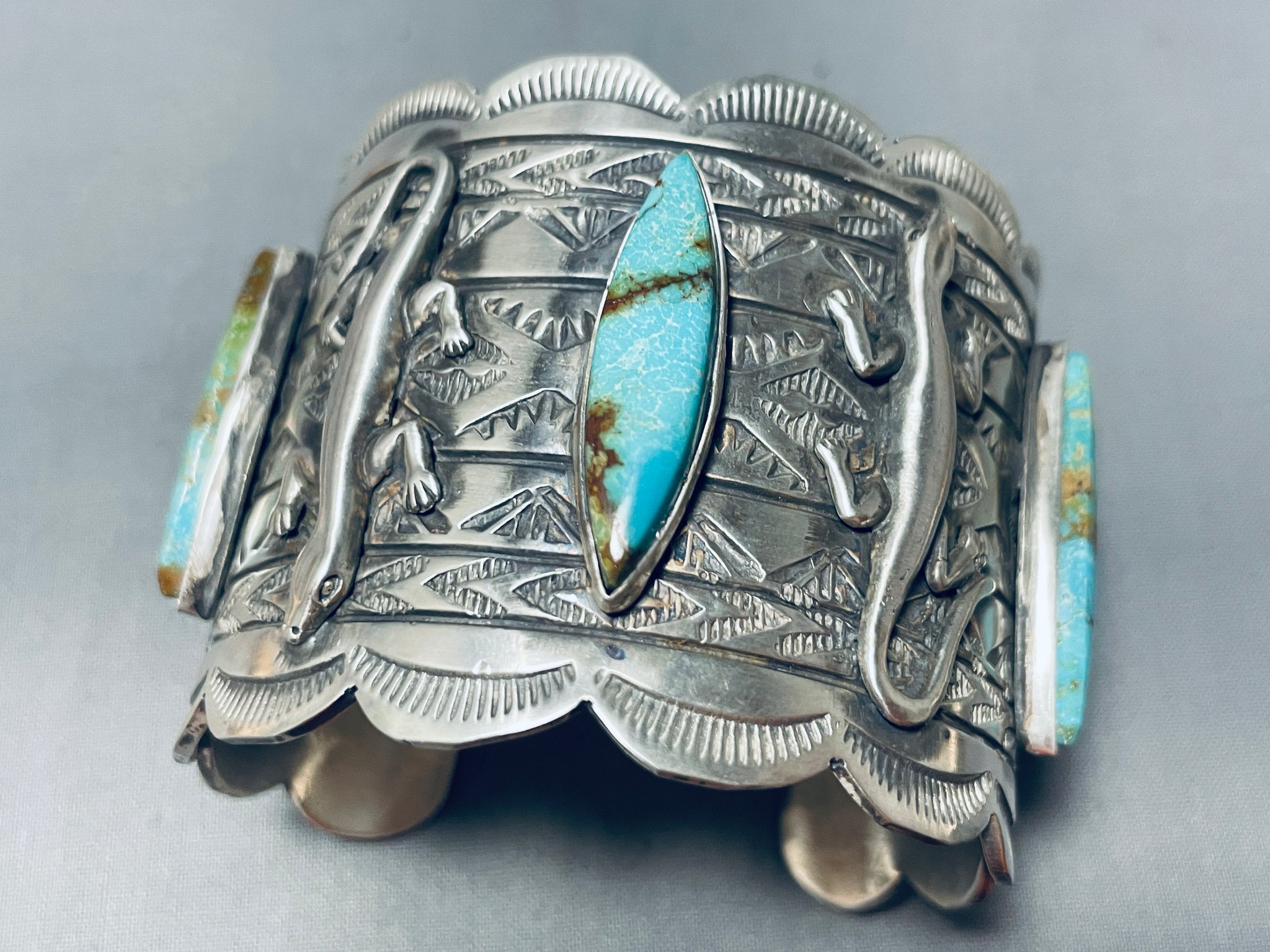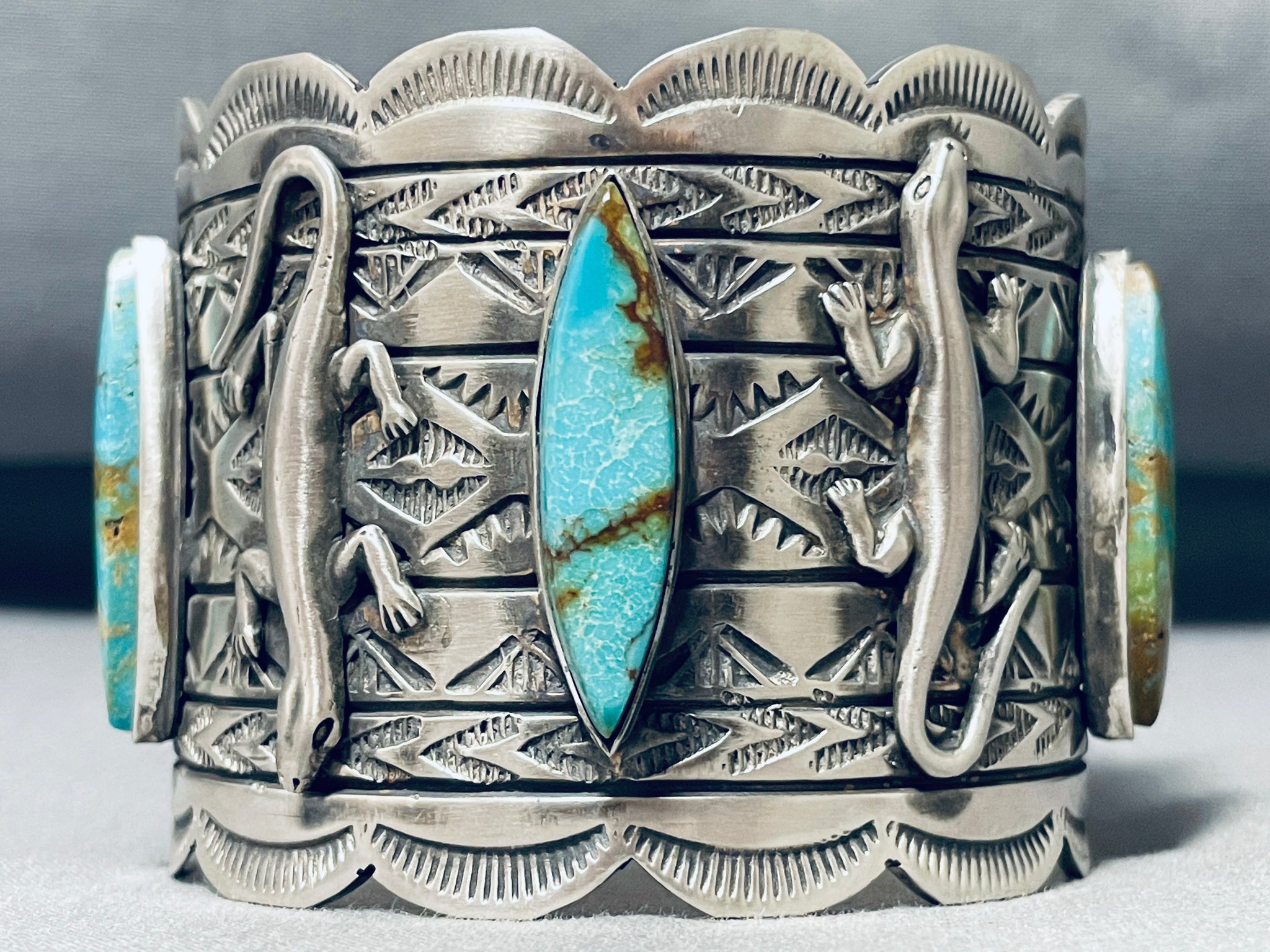 100+ Gram Native American Navajo Royston Turquoise Sterling Silver Gecko Bracelet